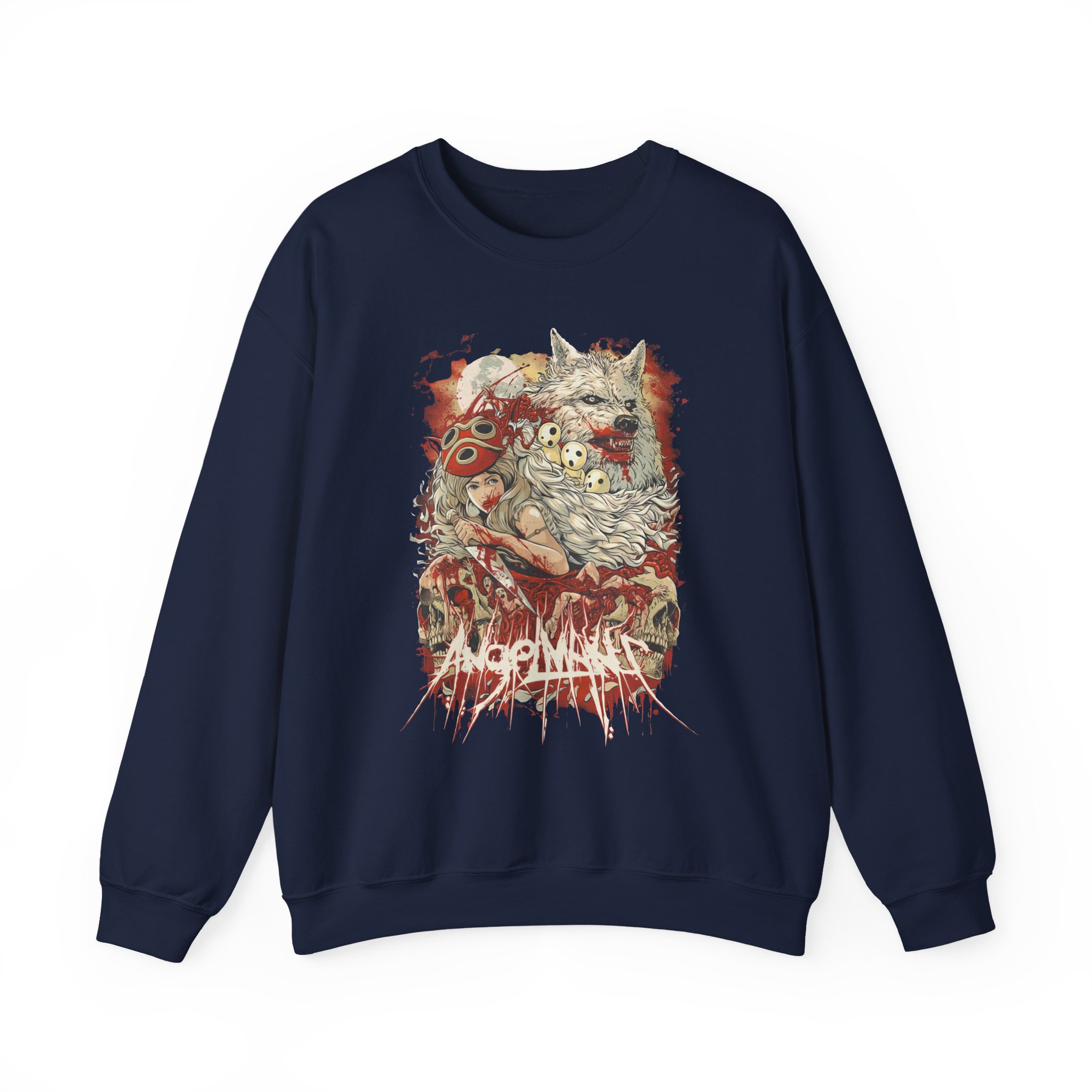 Ideal for any situation, a Angelmaker Mononoke unisex heavy blend crewneck sweatshirt is pure comfort. These garments are made from polyester and cotton. This combination helps designs come out looking fresh and beautiful. The collar is ribbed knit, so it retains its shape even after washing. There are no itchy side seams on these sweaters.