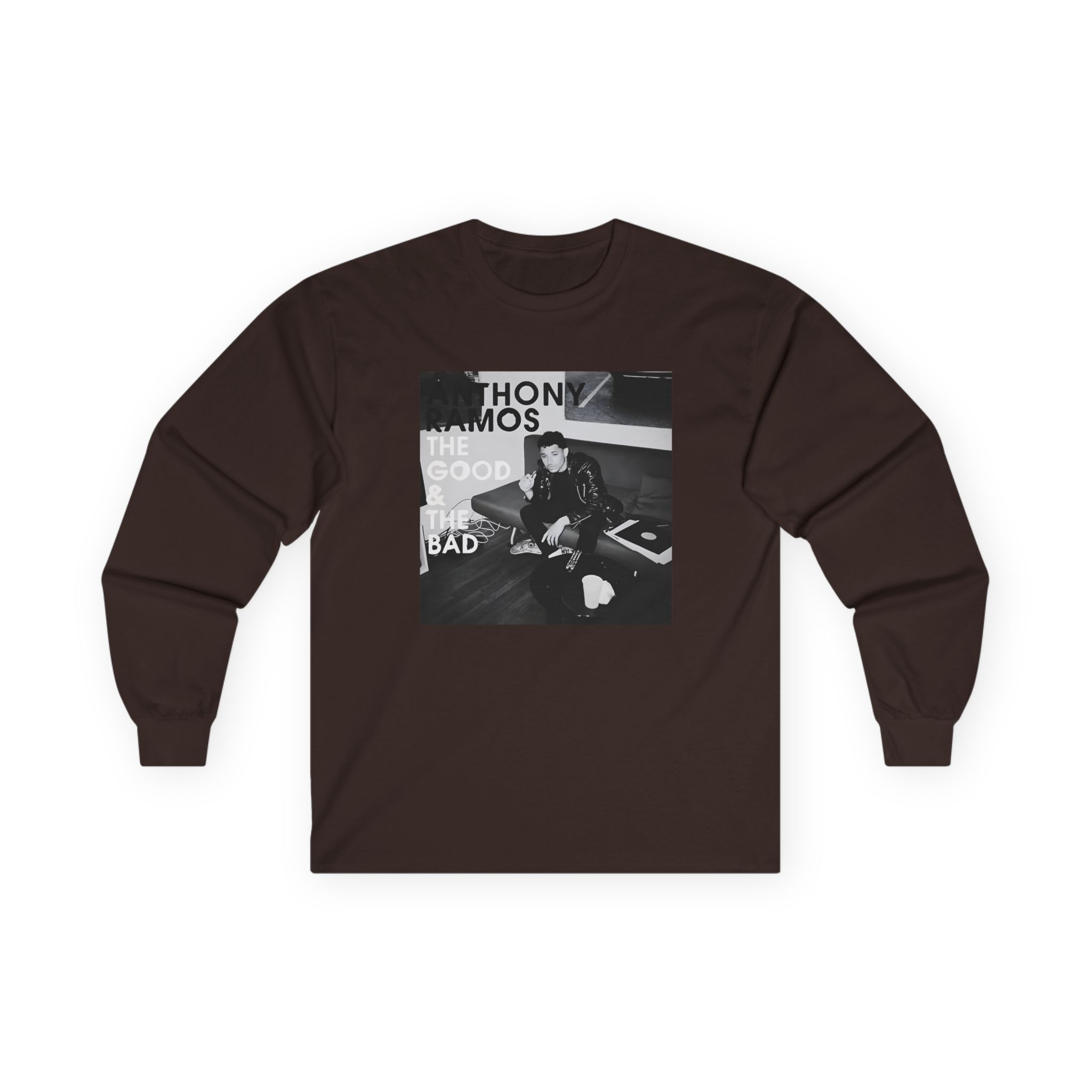 A bit more formal than a standard-issue t-shirt, the Anthony Ramos the Good & the Bad Album ultra cotton long sleeve tee is a clear comfort winner. The sleeves also act as a nice frame. There are no side seams. The shoulders are taped for improved durability. This makes for a good fitting around the shoulders and neck. The cotton used for these shirts is environmentally friendly.