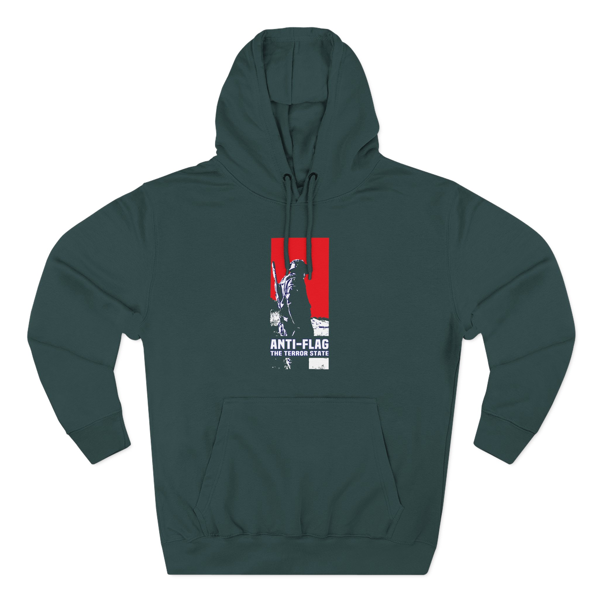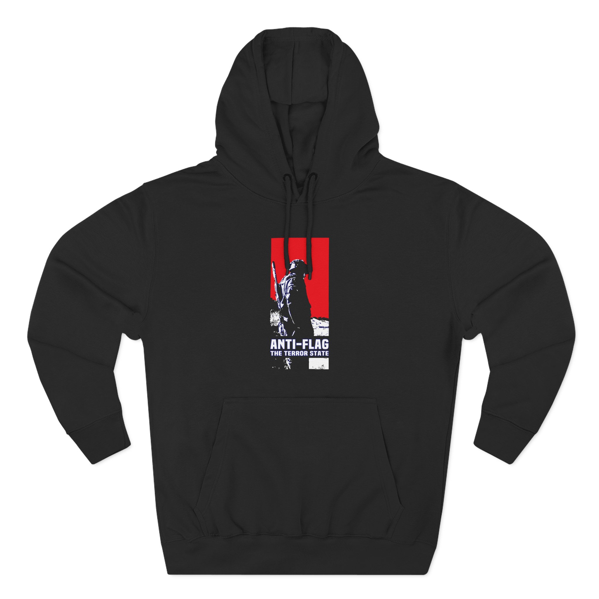 Beat the cold with this Anti Flag Terror State premium pullover hoodie that’s just the right layer of warm and cozy. Made with three-panel fleece lining, this pullover is double stitched for durability and roomy. Pick one in your favorite color to match your style.