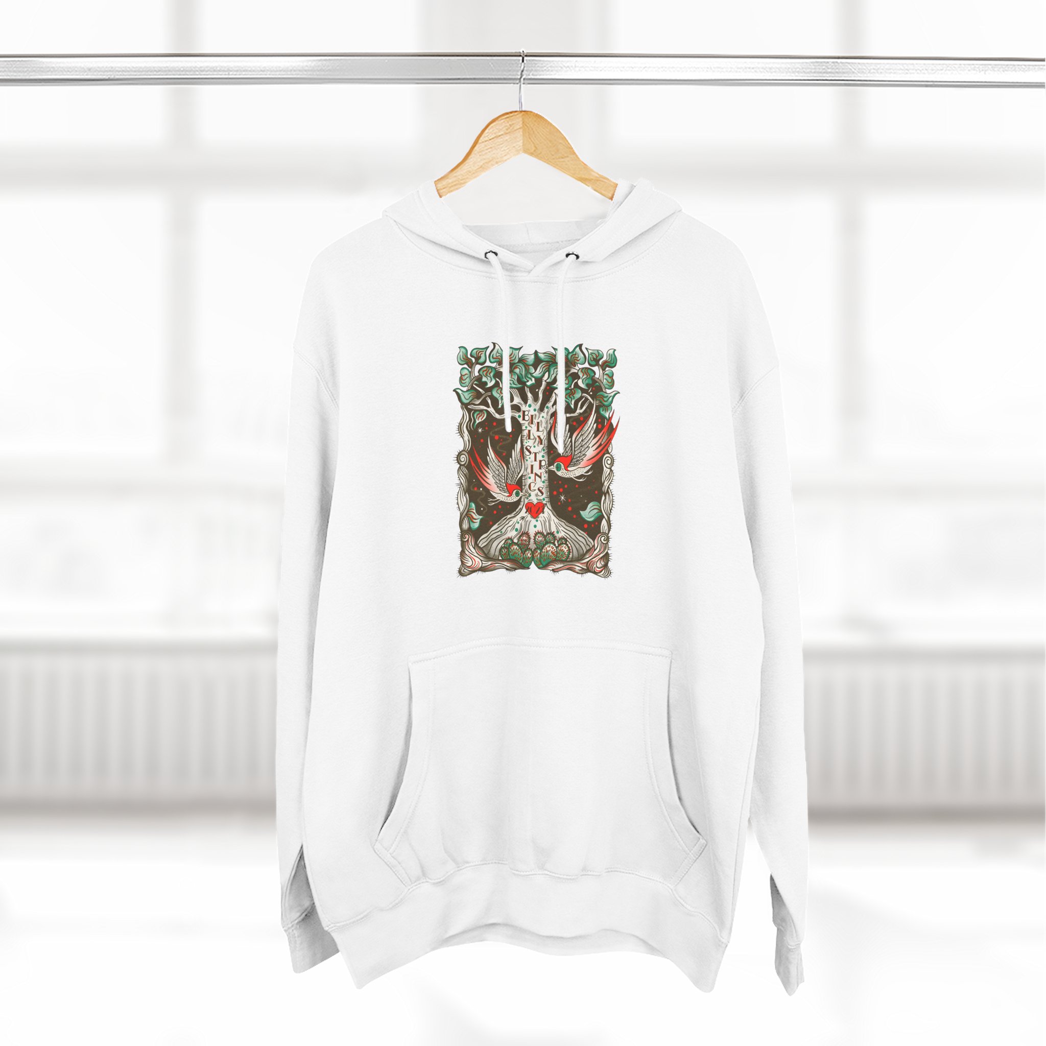 Beat the cold with this Billy Strings Woodpecker premium pullover hoodie that’s just the right layer of warm and cozy. Made with three-panel fleece lining, this pullover is double stitched for durability and roomy. Pick one in your favorite color to match your style.