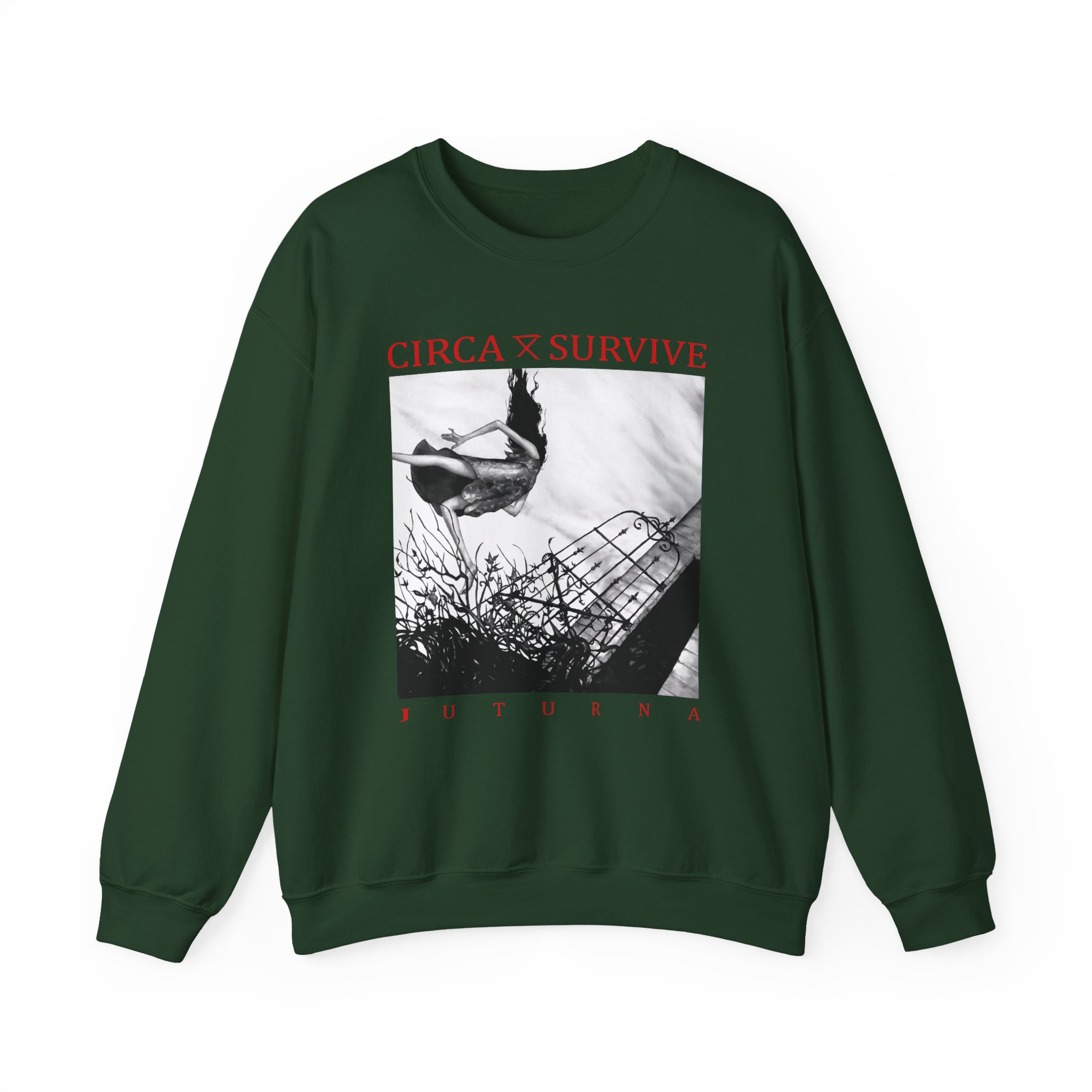 Ideal for any situation, a Circa Survive Juturna unisex heavy blend crewneck sweatshirt is pure comfort. These garments are made from polyester and cotton. This combination helps designs come out looking fresh and beautiful. The collar is ribbed knit, so it retains its shape even after washing. There are no itchy side seams on these sweaters.