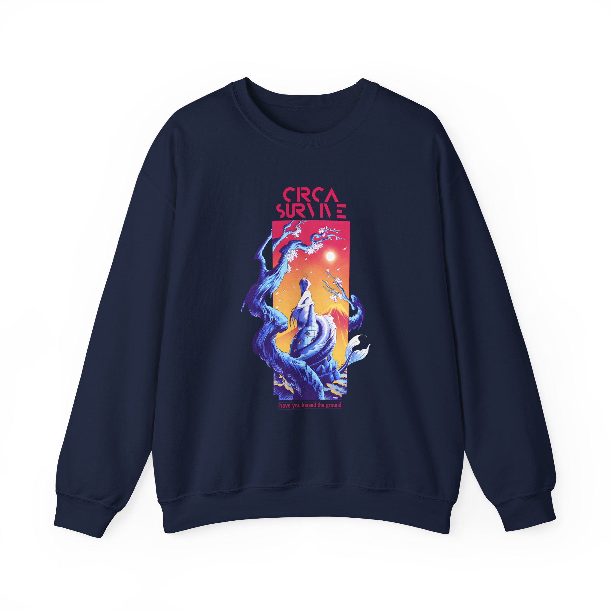 Ideal for any situation, a Circa Survive Kissed the Ground unisex heavy blend crewneck sweatshirt is pure comfort. These garments are made from polyester and cotton. This combination helps designs come out looking fresh and beautiful. The collar is ribbed knit, so it retains its shape even after washing. There are no itchy side seams on these sweaters.