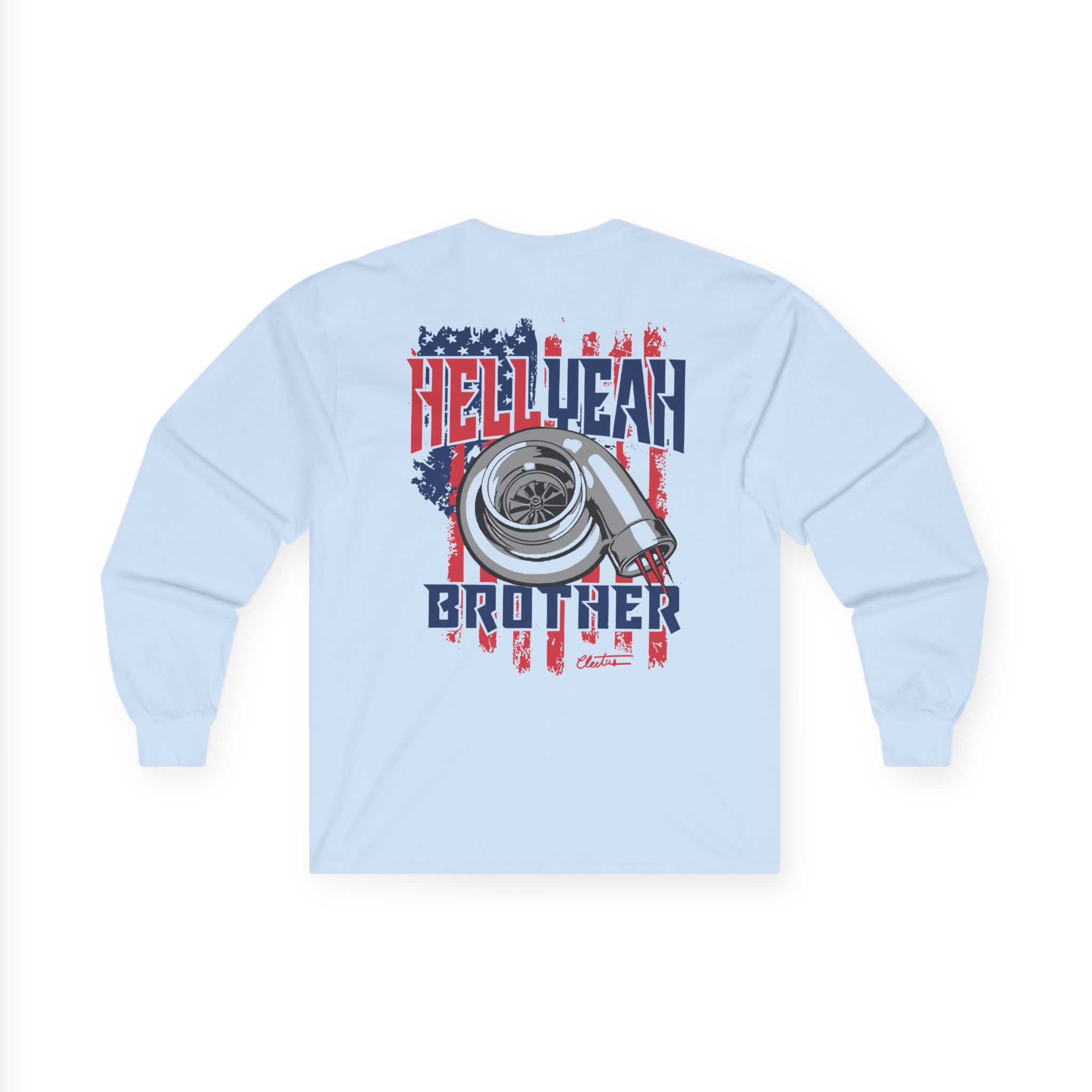 A bit more formal than a standard-issue t-shirt, the Cleetus Mcfarland Hell Yeah Brother ultra cotton long sleeve tee is a clear comfort winner. The sleeves also act as a nice frame. There are no side seams. The shoulders are taped for improved durability. This makes for a good fitting around the shoulders and neck. The cotton used for these shirts is environmentally friendly.