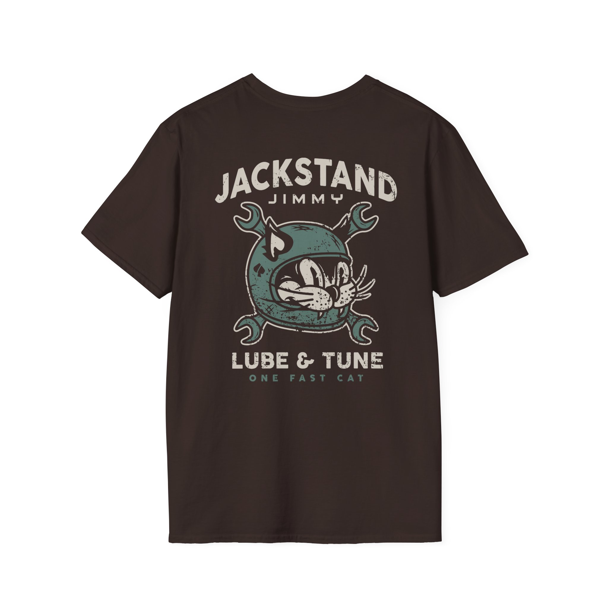 The Cleetus Mcfarland Jackstand Jimmy Retro Helmet unisex soft-style t-shirt puts a new spin on casual comfort. Made from very soft materials, this tee is 100% cotton for solid colors. Heather colors and sports grey include polyester. The shoulders have twill tape for improved durability. There are no side seams. The collar is made with ribbed knitting to prevent curling damage.