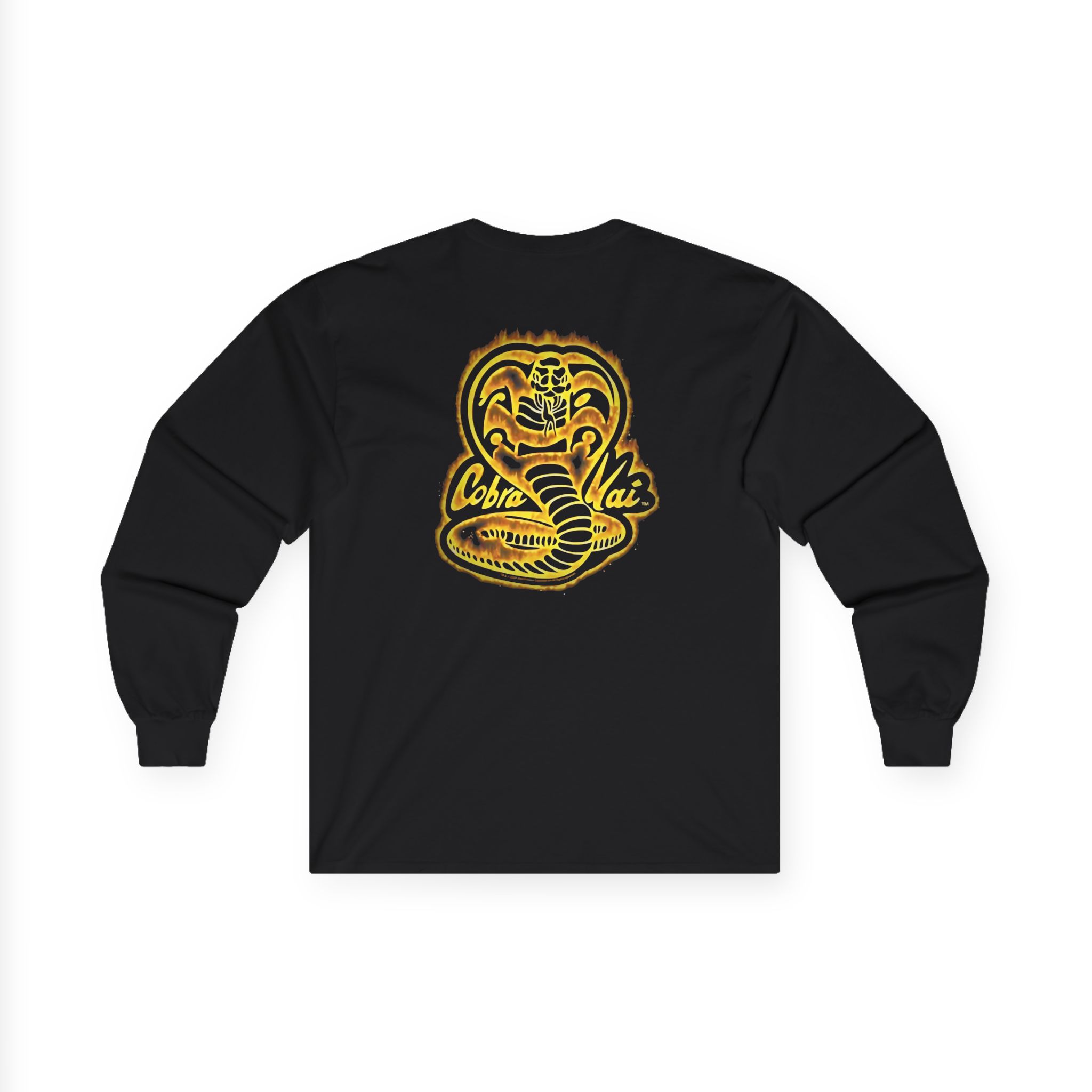 A bit more formal than a standard-issue t-shirt, the Cobra Kai Fire ultra cotton long sleeve tee is a clear comfort winner. The sleeves also act as a nice frame. There are no side seams. The shoulders are taped for improved durability. This makes for a good fitting around the shoulders and neck. The cotton used for these shirts is environmentally friendly.