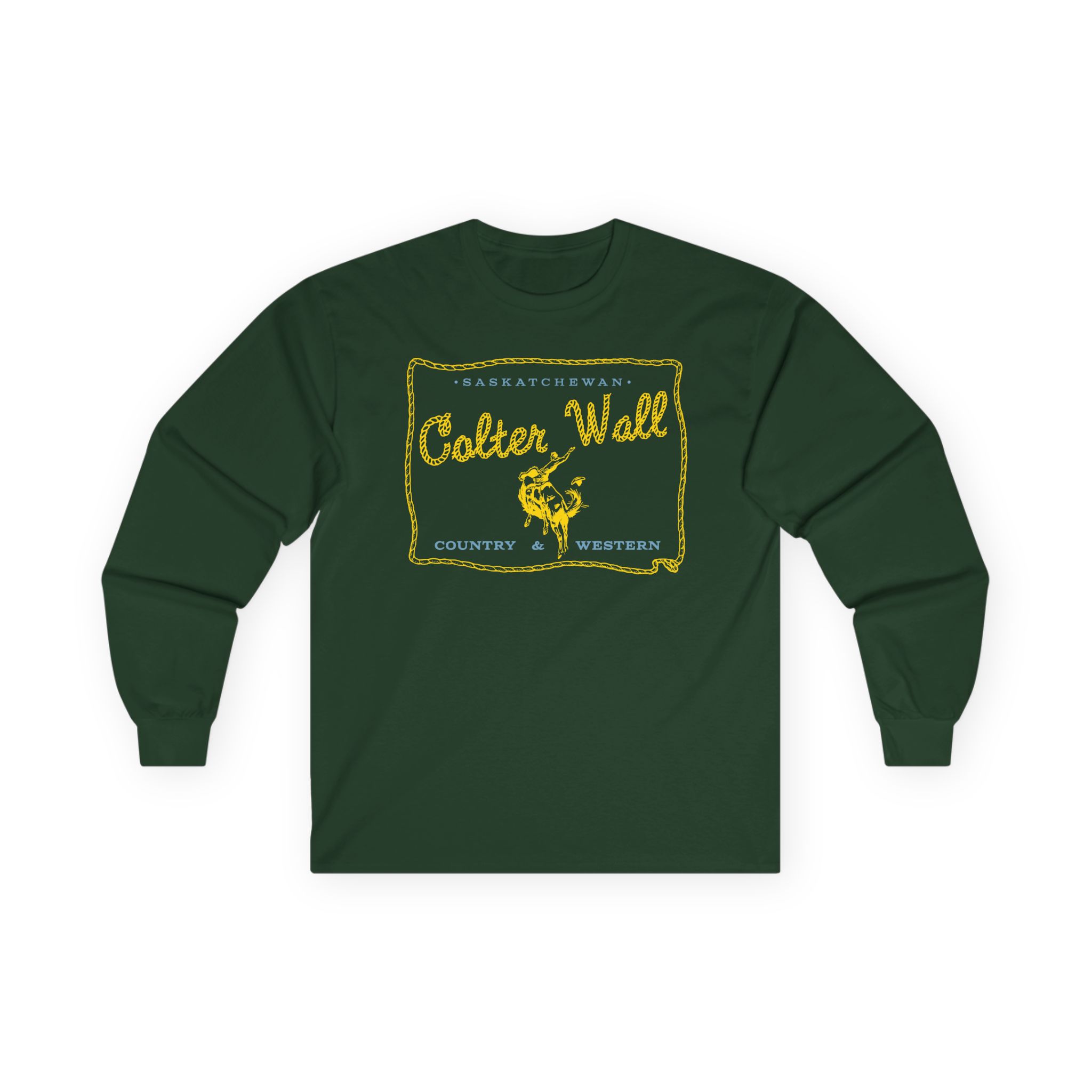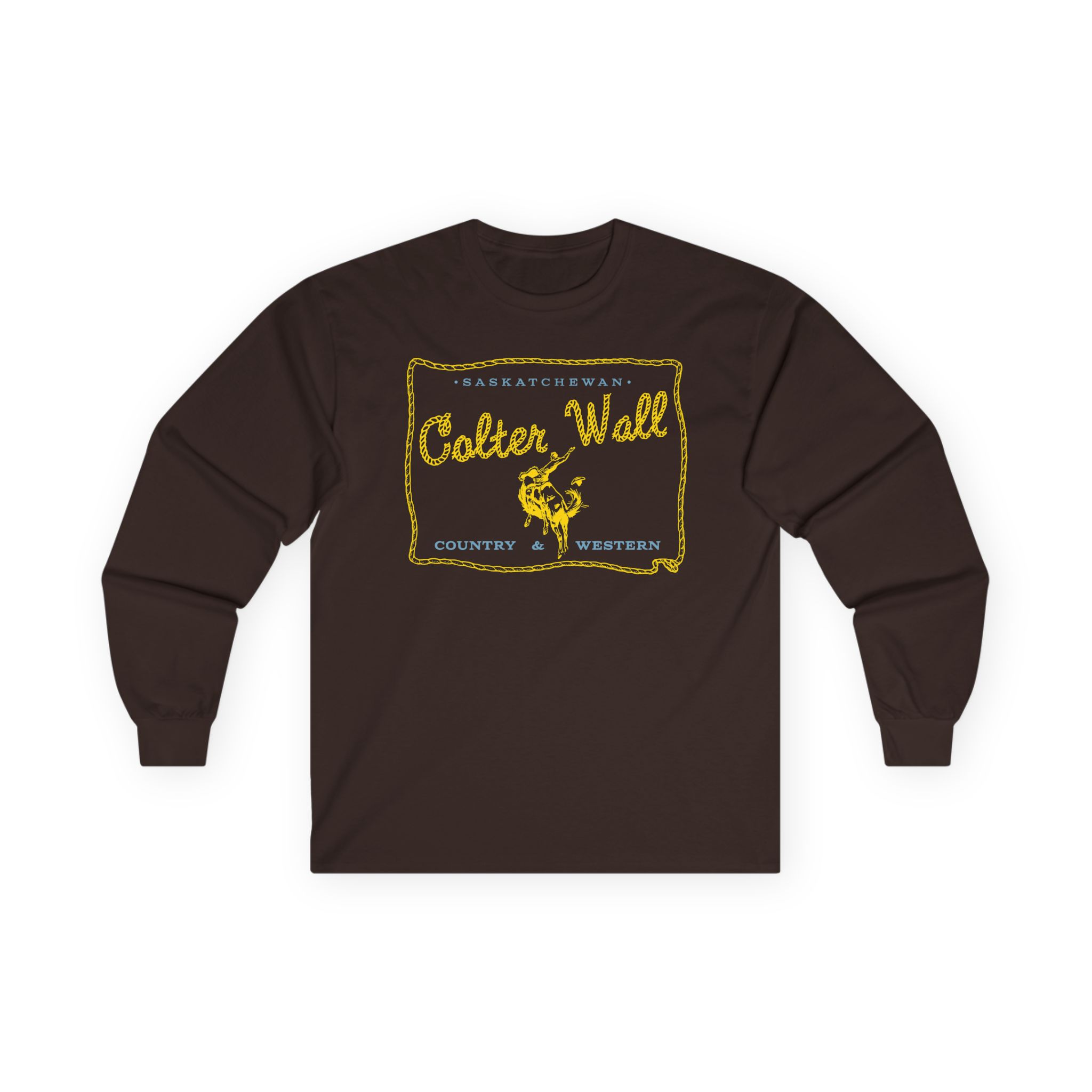 A bit more formal than a standard-issue t-shirt, the Colter Wall Saskatchewan ultra cotton long sleeve tee is a clear comfort winner. The sleeves also act as a nice frame. There are no side seams. The shoulders are taped for improved durability. This makes for a good fitting around the shoulders and neck. The cotton used for these shirts is environmentally friendly.