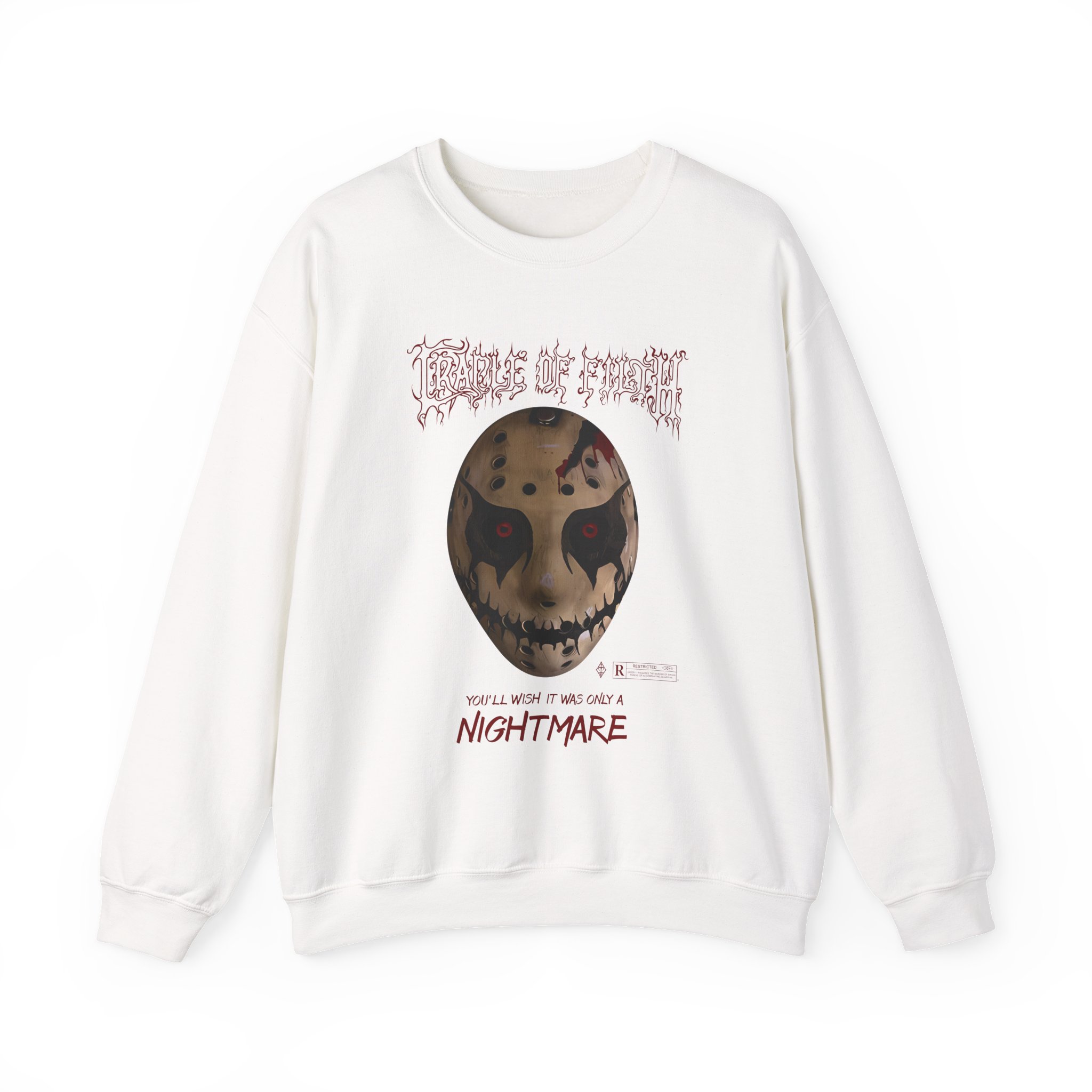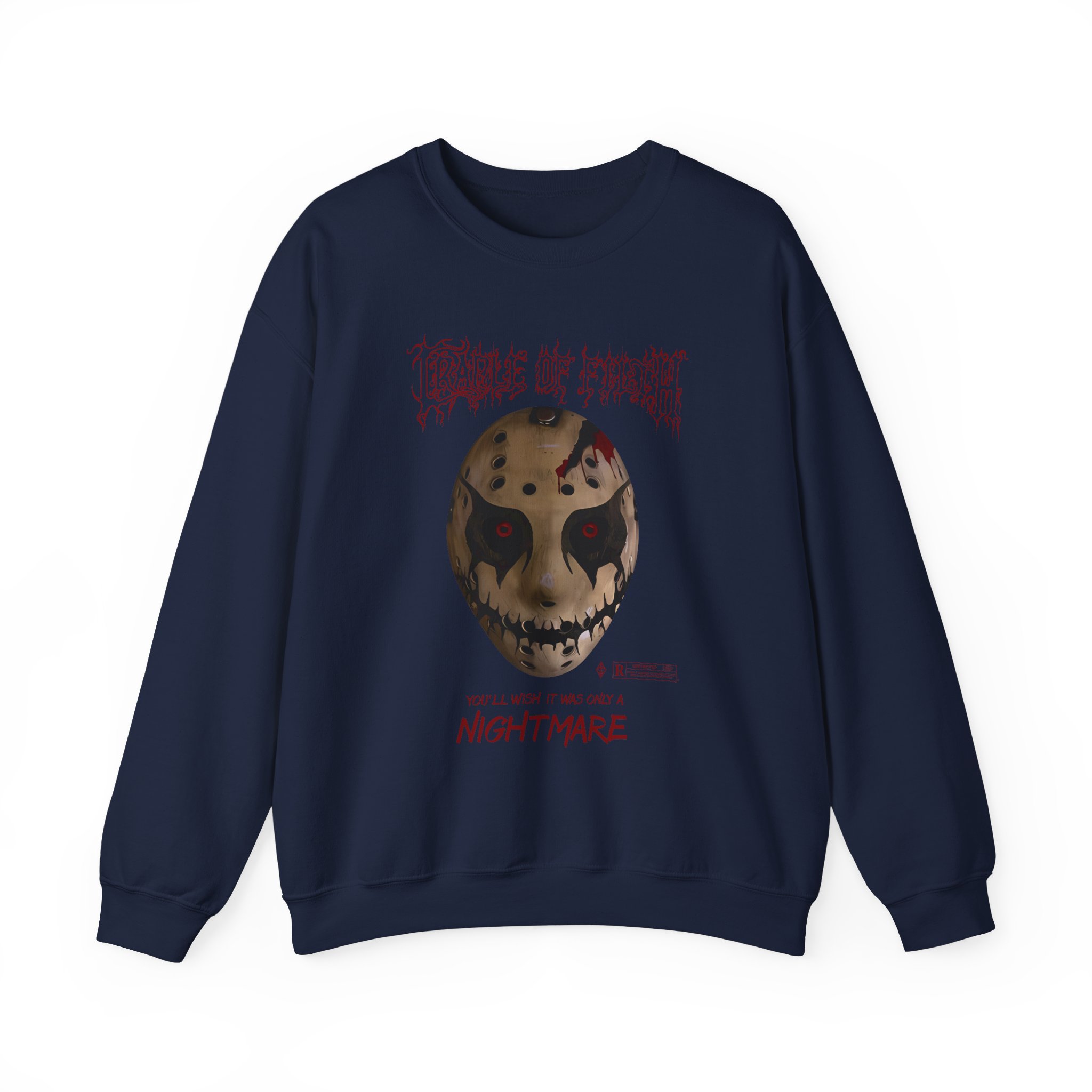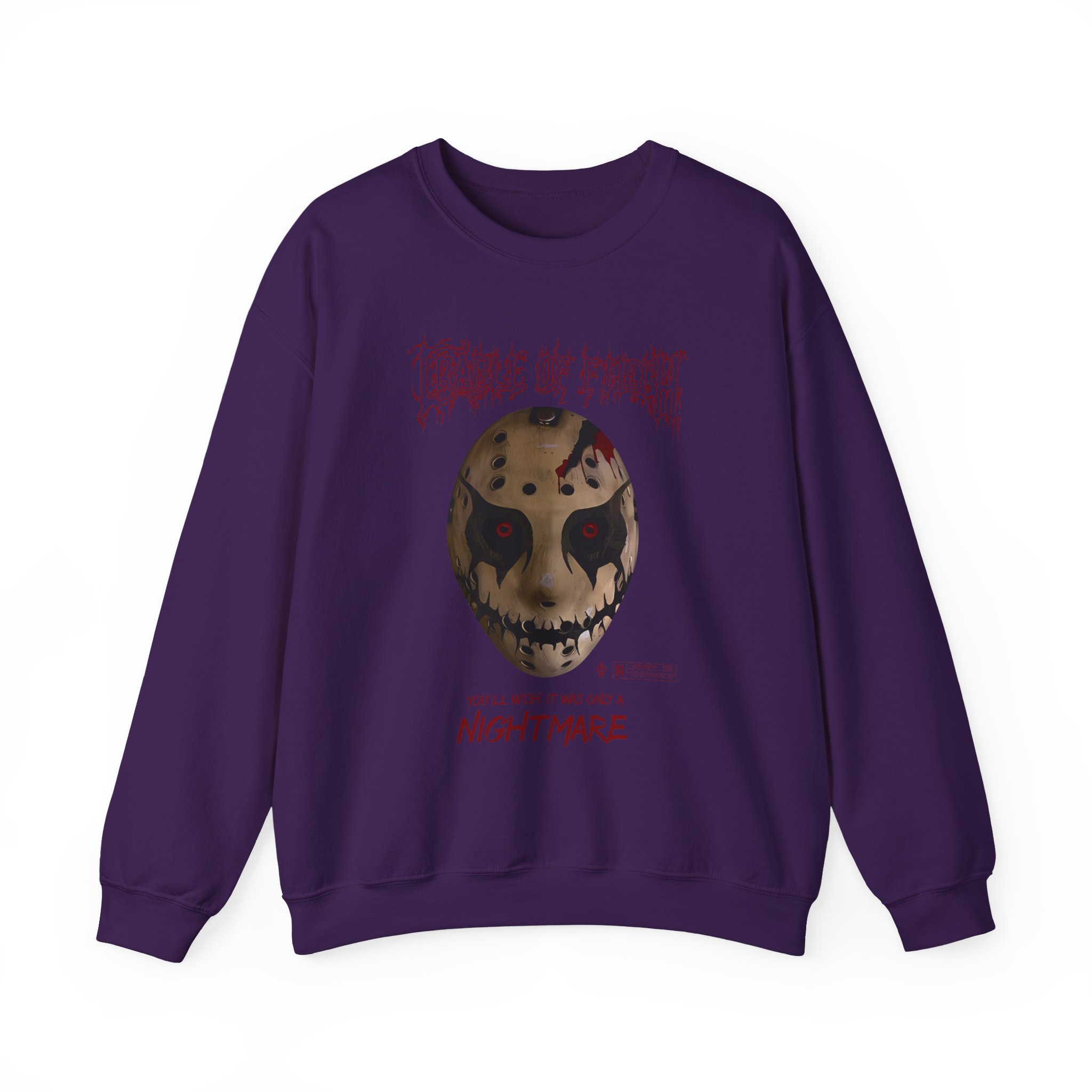Ideal for any situation, a Cradle of Filth Halloween Hockey Mask unisex heavy blend crewneck sweatshirt is pure comfort. These garments are made from polyester and cotton. This combination helps designs come out looking fresh and beautiful. The collar is ribbed knit, so it retains its shape even after washing. There are no itchy side seams on these sweaters.