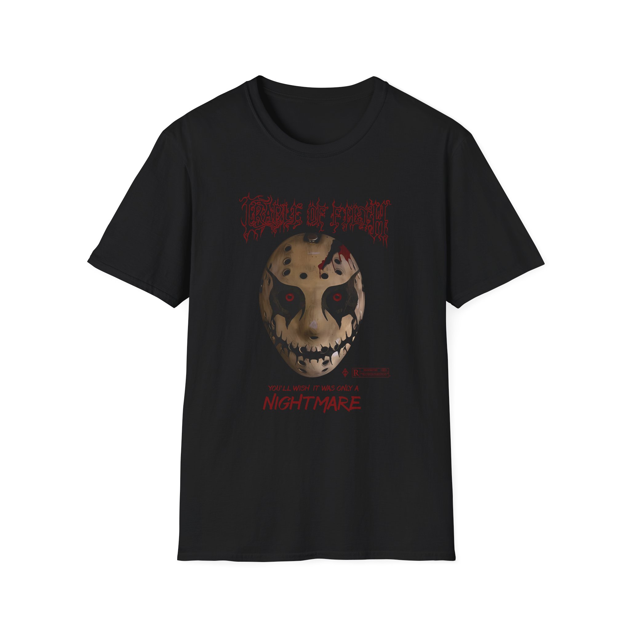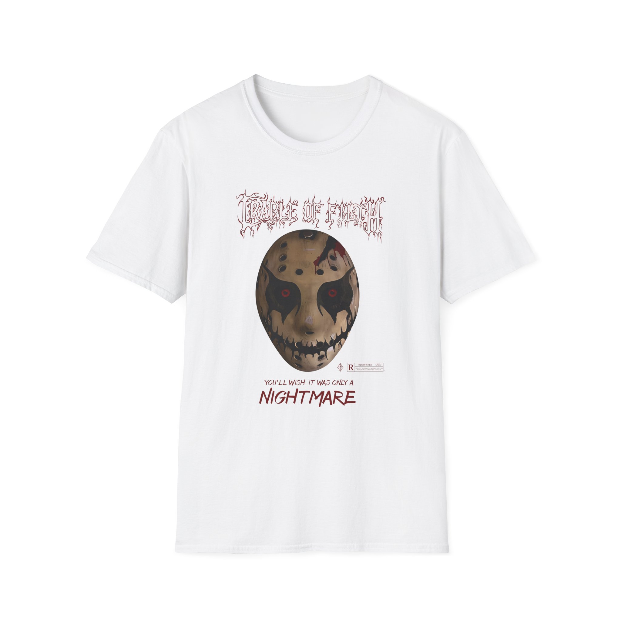 The Cradle of Filth Halloween Hockey Mask unisex soft-style t-shirt puts a new spin on casual comfort. Made from very soft materials, this tee is 100% cotton for solid colors. Heather colors and sports grey include polyester. The shoulders have twill tape for improved durability. There are no side seams. The collar is made with ribbed knitting to prevent curling damage.
