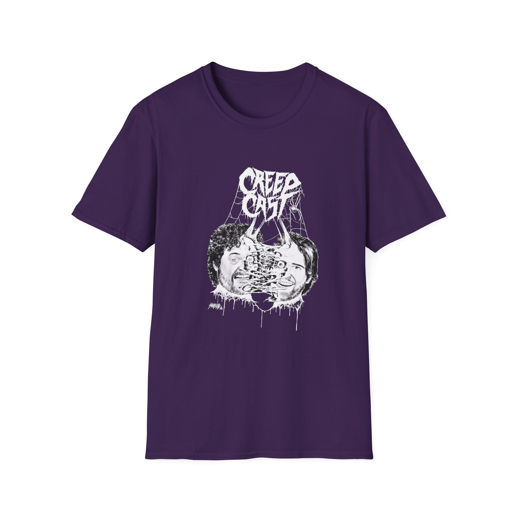 The Creepcast Faces unisex soft-style t-shirt puts a new spin on casual comfort. Made from very soft materials, this tee is 100% cotton for solid colors. Heather colors and sports grey include polyester. The shoulders have twill tape for improved durability. There are no side seams. The collar is made with ribbed knitting to prevent curling damage.