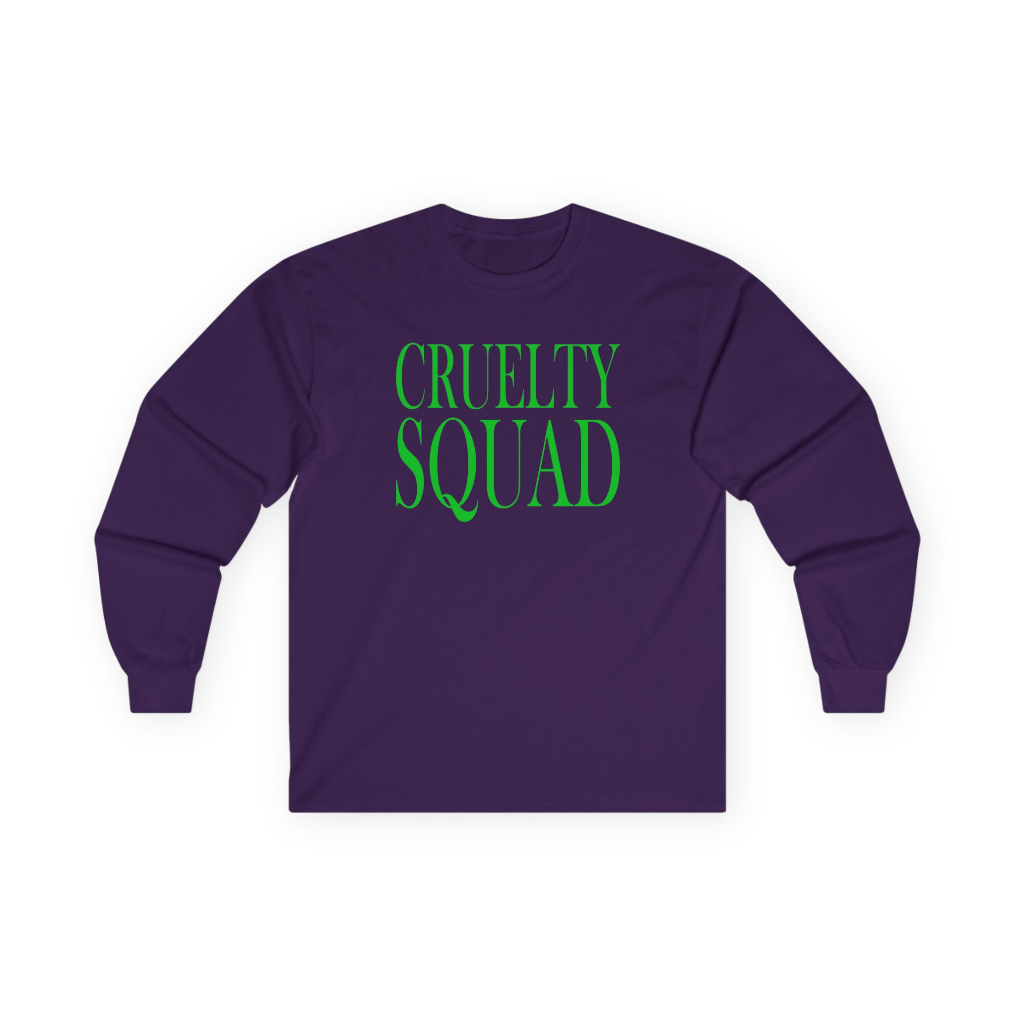 A bit more formal than a standard-issue t-shirt, the Cruelty Squad ultra cotton long sleeve tee is a clear comfort winner. The sleeves also act as a nice frame. There are no side seams. The shoulders are taped for improved durability. This makes for a good fitting around the shoulders and neck. The cotton used for these shirts is environmentally friendly.