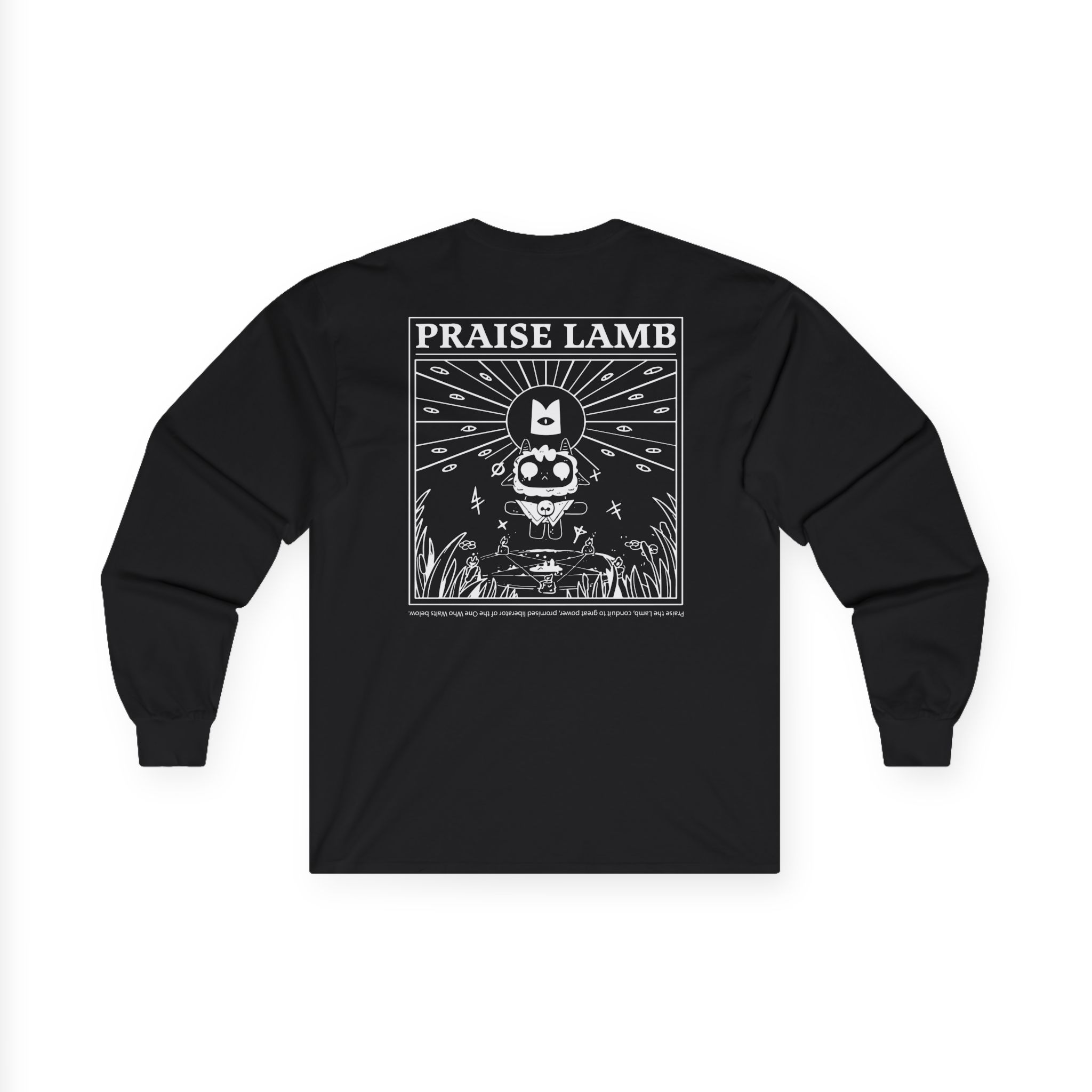 A bit more formal than a standard-issue t-shirt, the Cult of the Lamb Praise Lamb ultra cotton long sleeve tee is a clear comfort winner. The sleeves also act as a nice frame. There are no side seams. The shoulders are taped for improved durability. This makes for a good fitting around the shoulders and neck. The cotton used for these shirts is environmentally friendly.