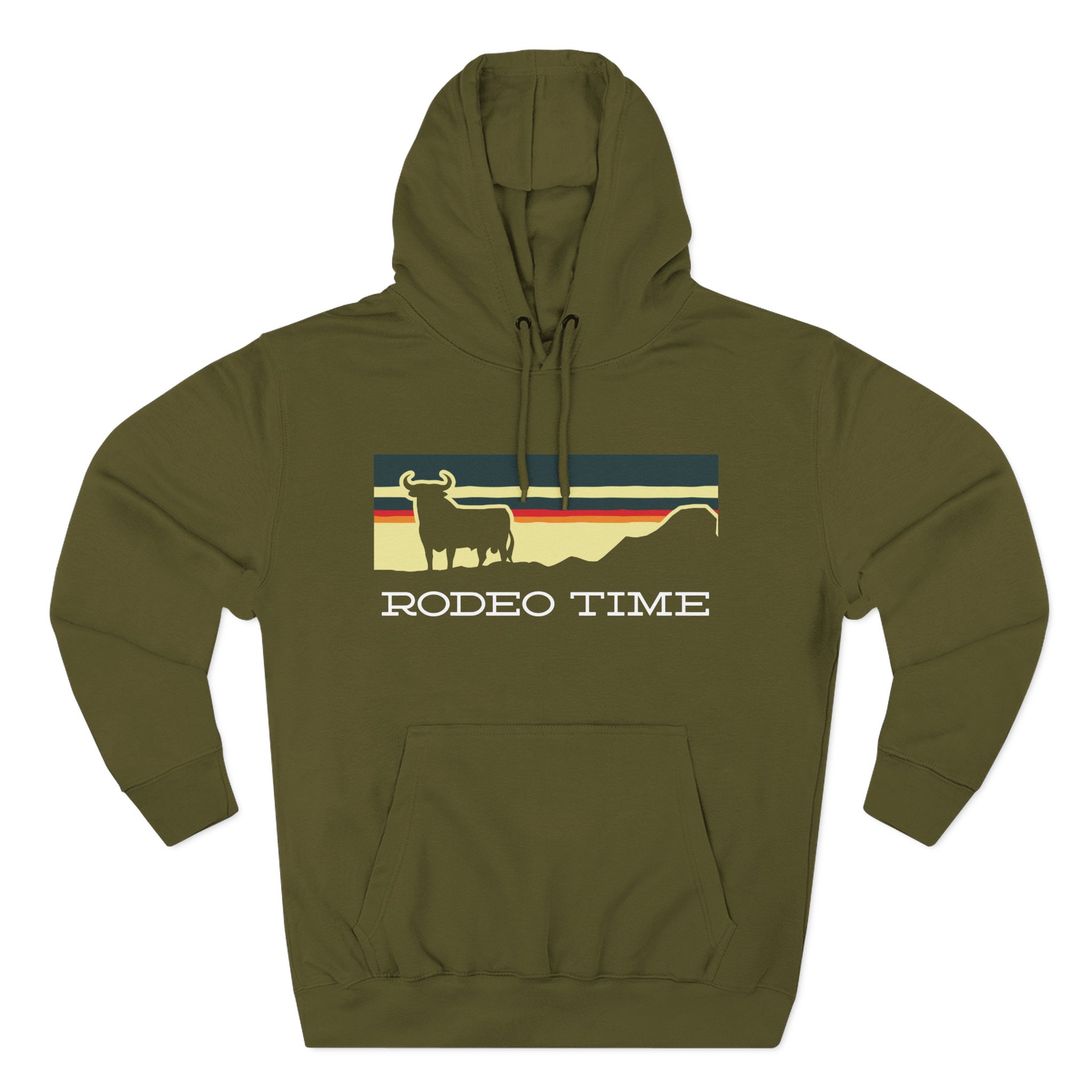 Beat the cold with this Dale Brisby Sunset Rodeo Time premium pullover hoodie that’s just the right layer of warm and cozy. Made with three-panel fleece lining, this pullover is double stitched for durability and roomy. Pick one in your favorite color to match your style.