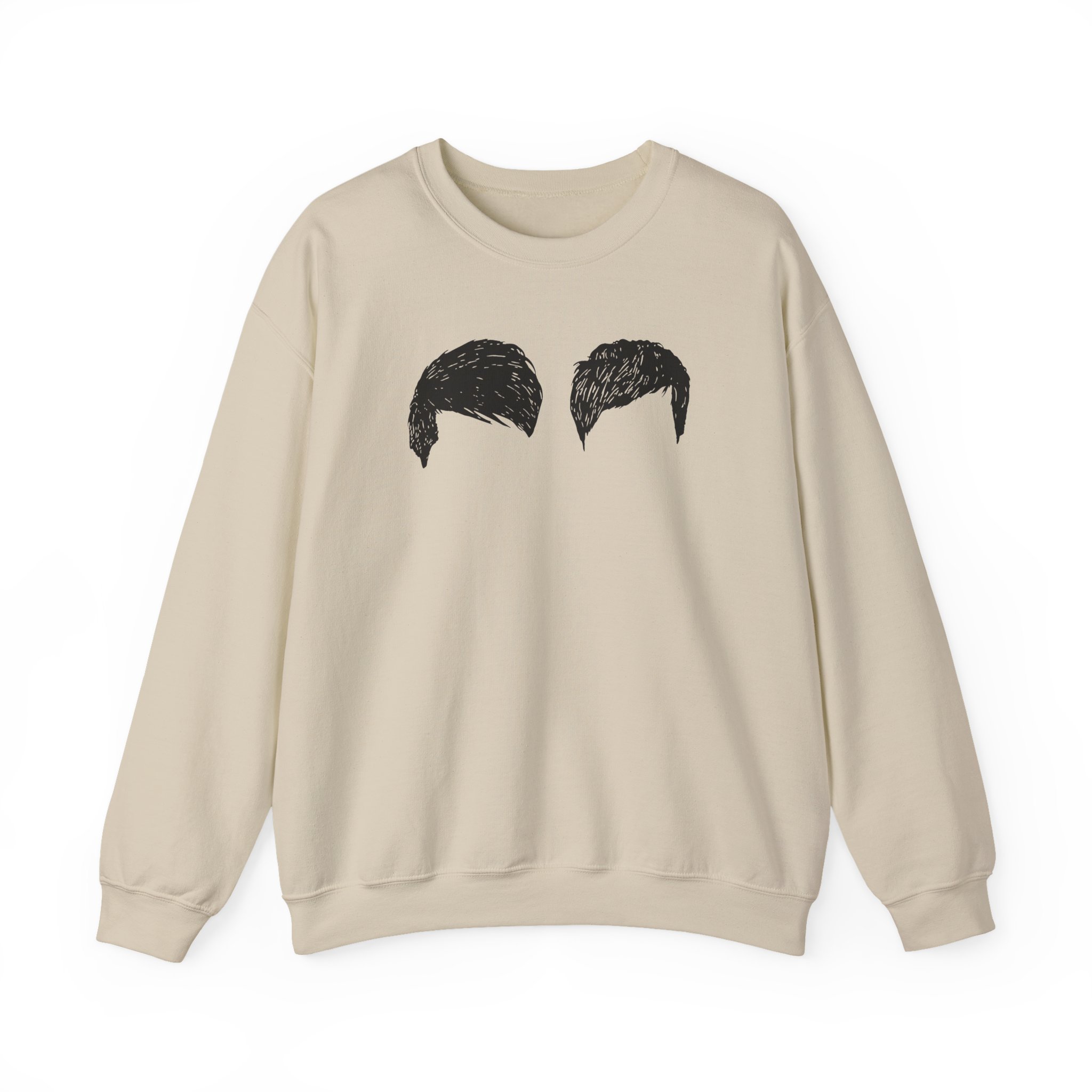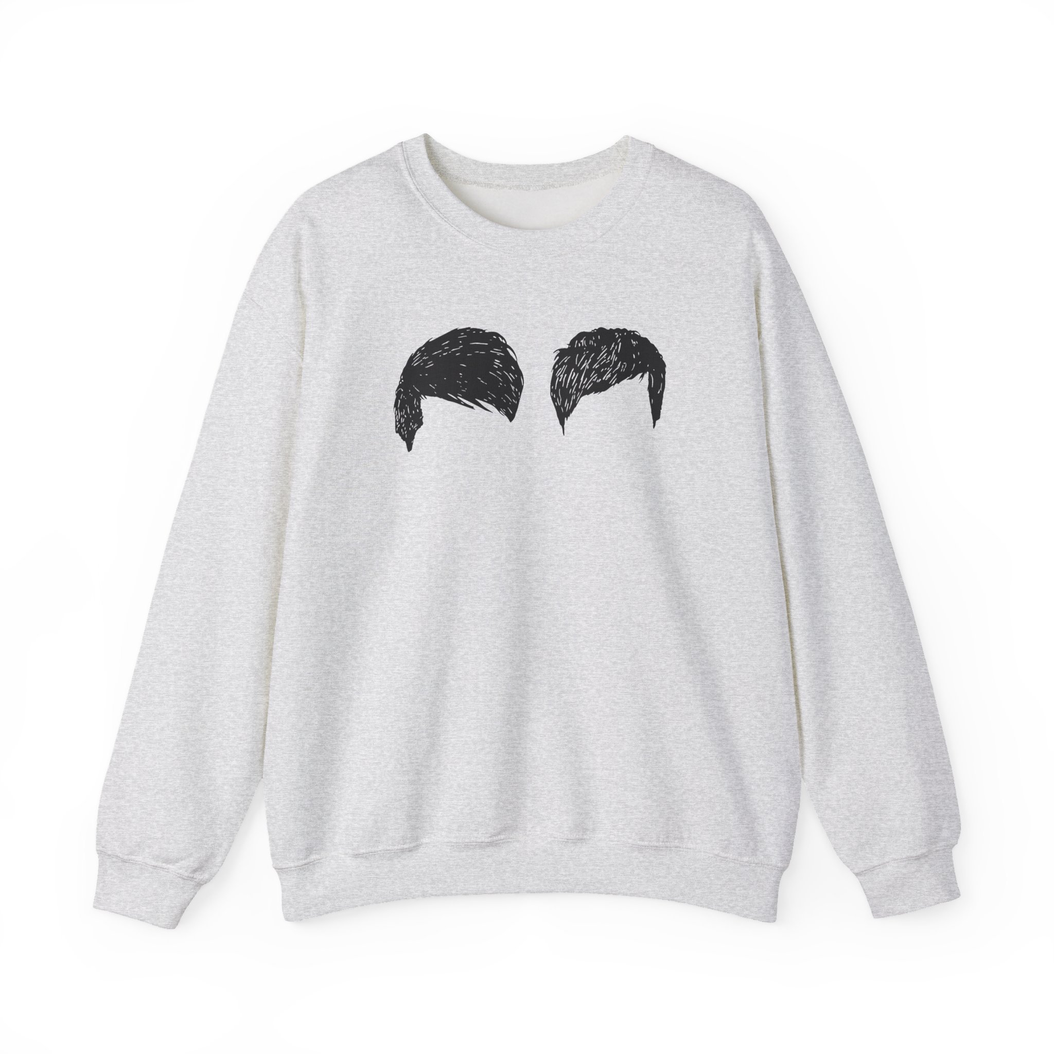 Ideal for any situation, a Dan and Phil Hair unisex heavy blend crewneck sweatshirt is pure comfort. These garments are made from polyester and cotton. This combination helps designs come out looking fresh and beautiful. The collar is ribbed knit, so it retains its shape even after washing. There are no itchy side seams on these sweaters.