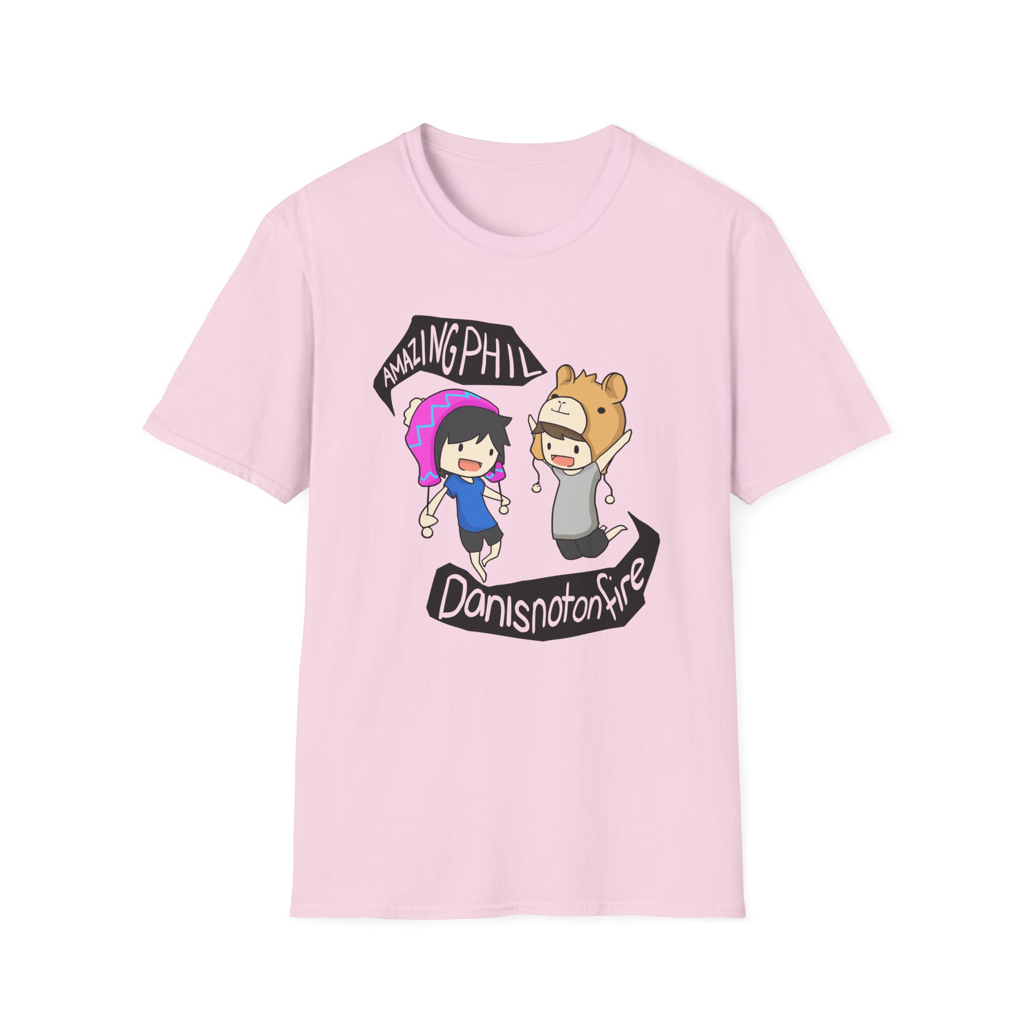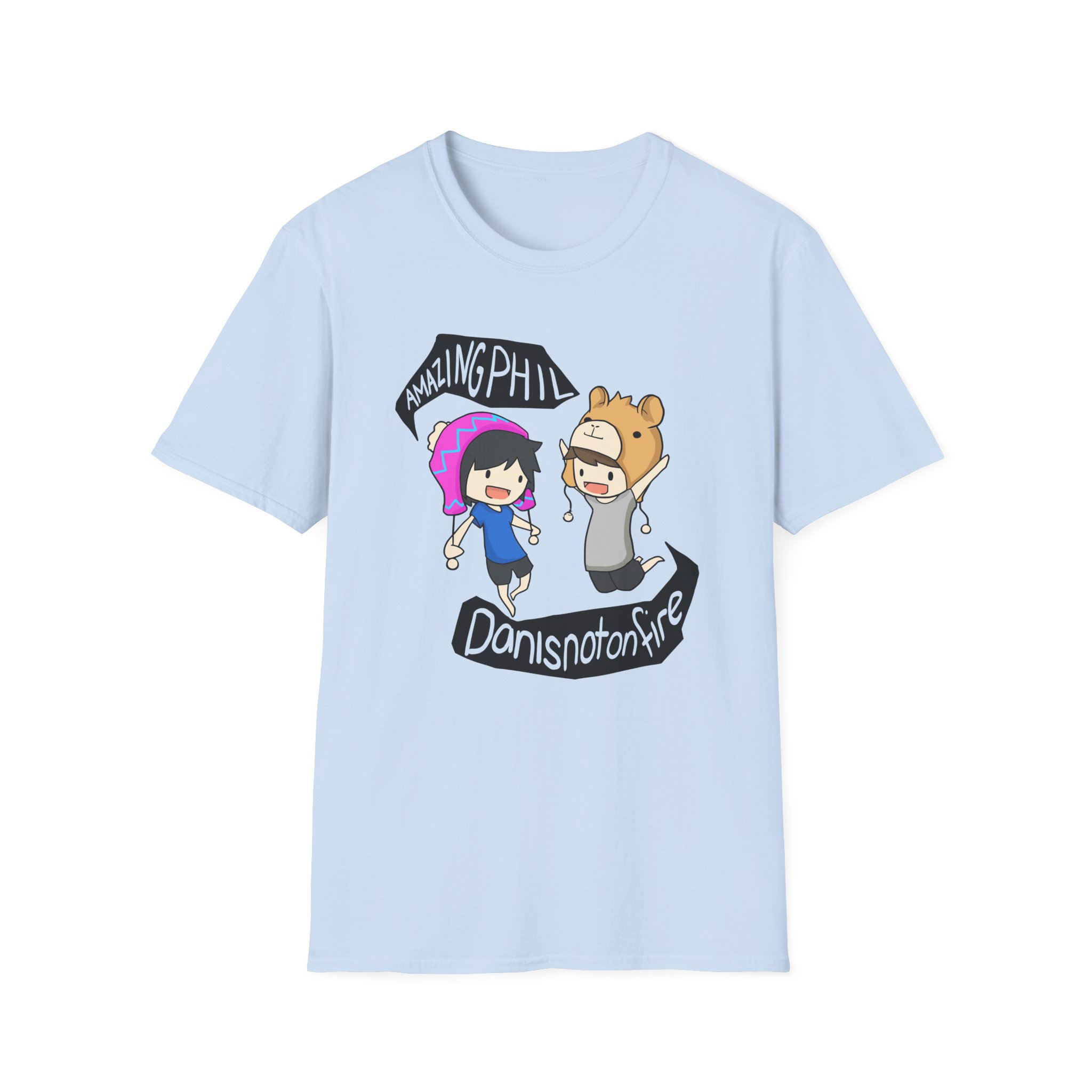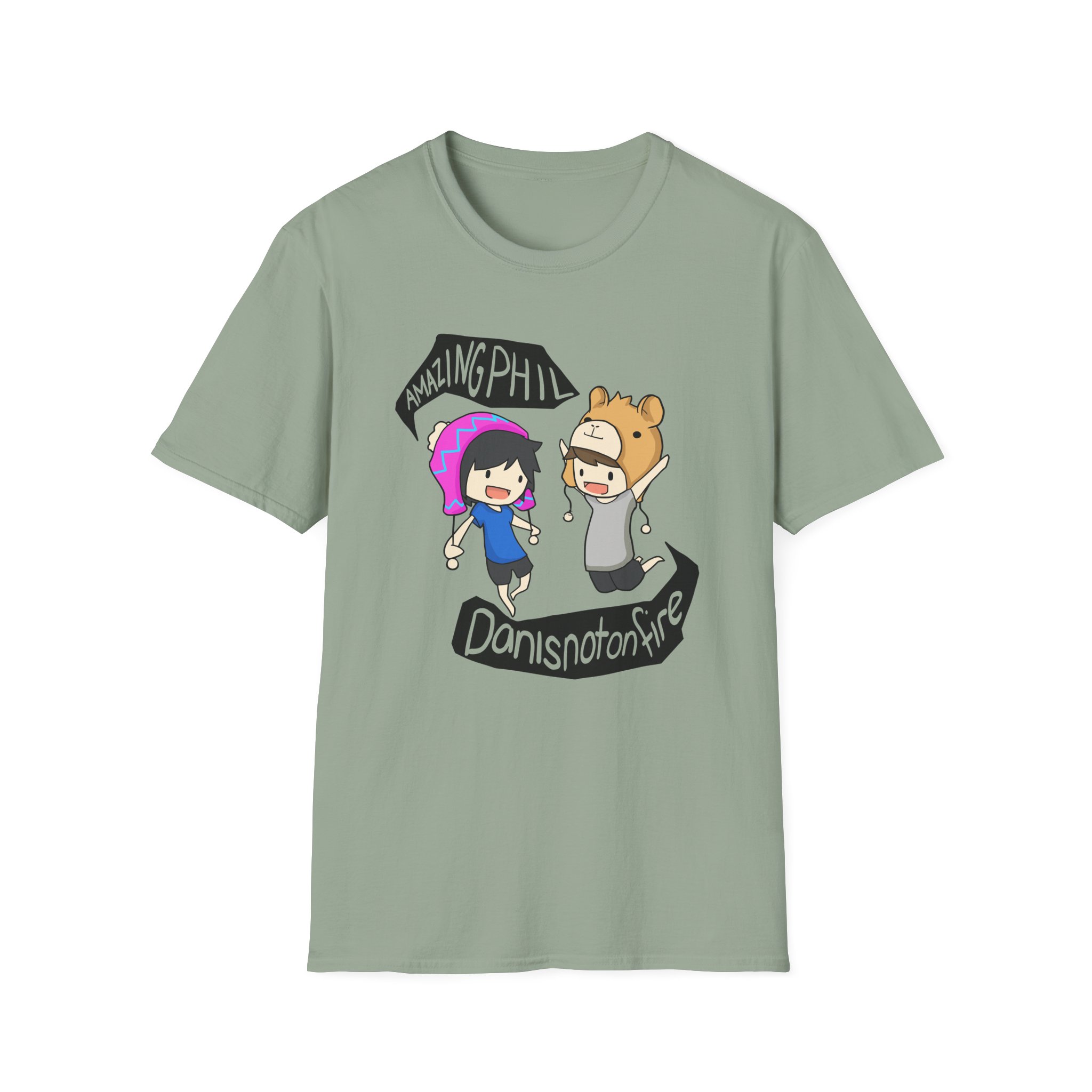 The Dan and Phil unisex soft-style t-shirt puts a new spin on casual comfort. Made from very soft materials, this tee is 100% cotton for solid colors. Heather colors and sports grey include polyester. The shoulders have twill tape for improved durability. There are no side seams. The collar is made with ribbed knitting to prevent curling damage.