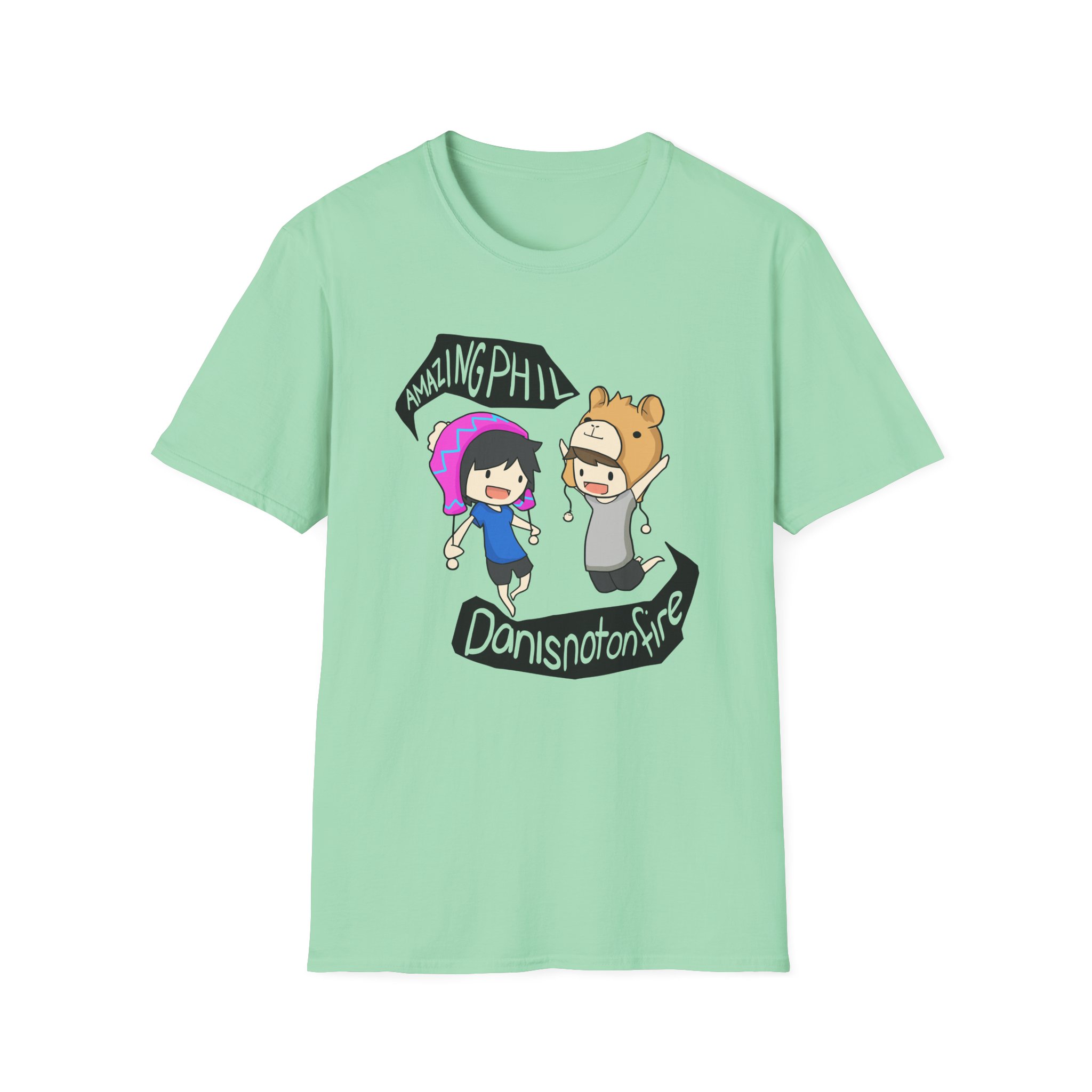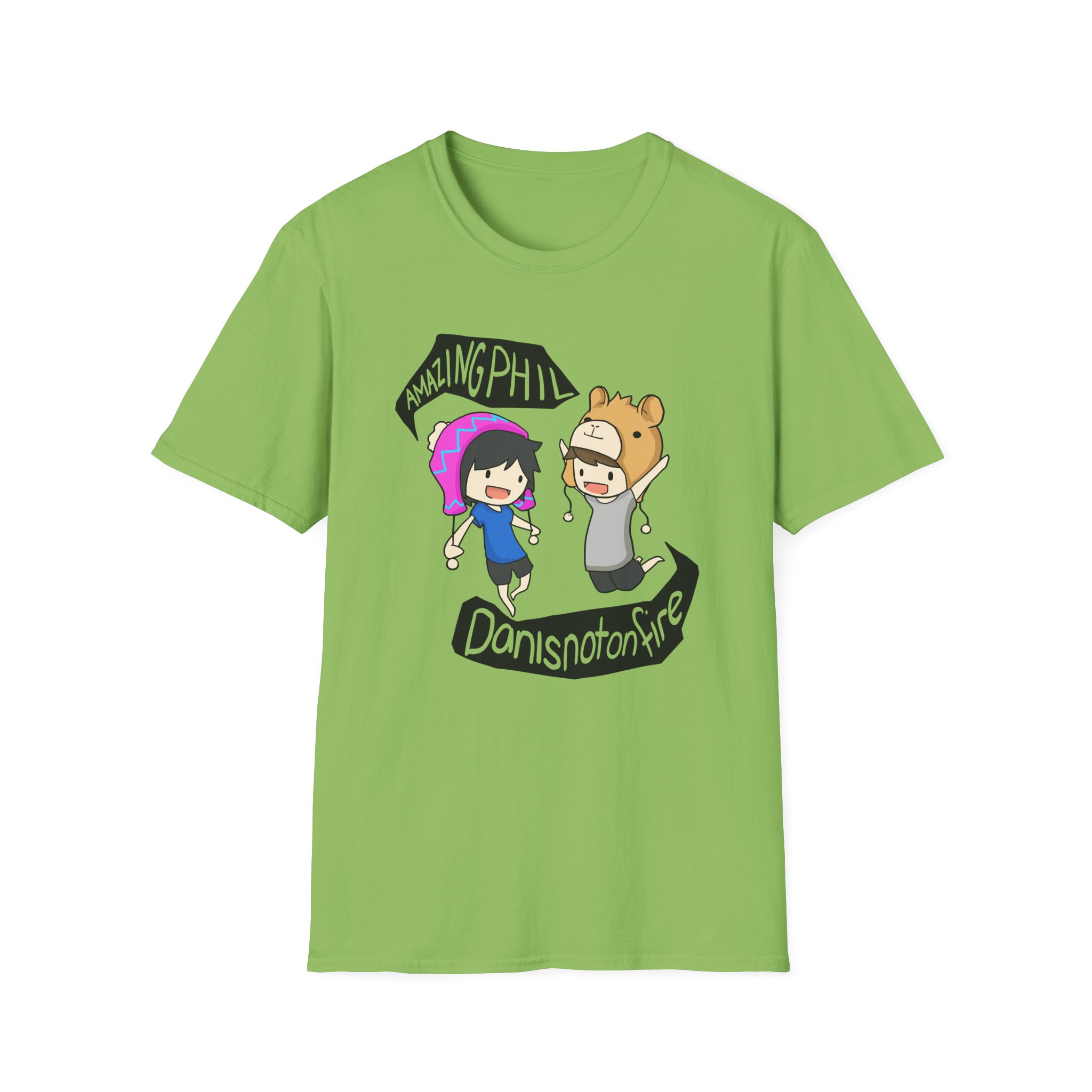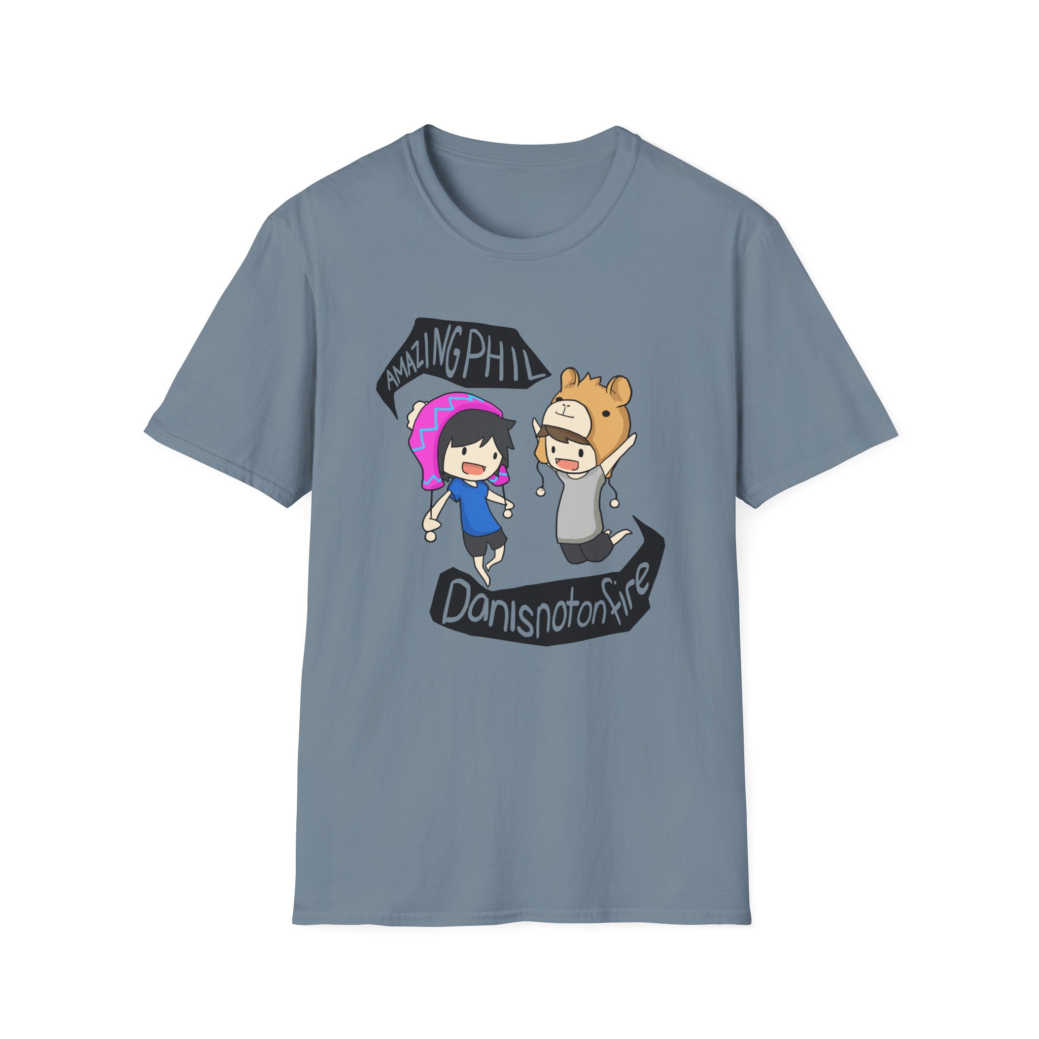 The Dan and Phil unisex soft-style t-shirt puts a new spin on casual comfort. Made from very soft materials, this tee is 100% cotton for solid colors. Heather colors and sports grey include polyester. The shoulders have twill tape for improved durability. There are no side seams. The collar is made with ribbed knitting to prevent curling damage.