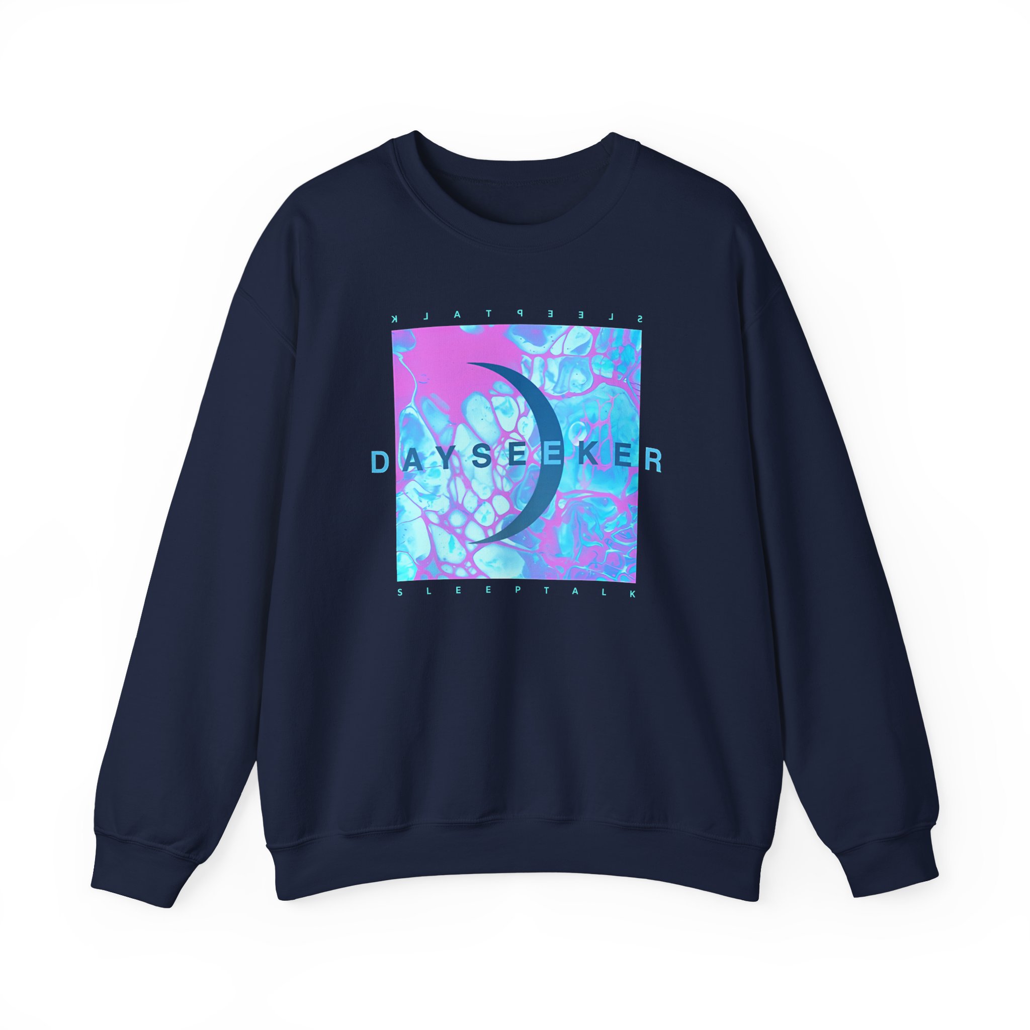Ideal for any situation, a Dayseeker Sleeptalk unisex heavy blend crewneck sweatshirt is pure comfort. These garments are made from polyester and cotton. This combination helps designs come out looking fresh and beautiful. The collar is ribbed knit, so it retains its shape even after washing. There are no itchy side seams on these sweaters.