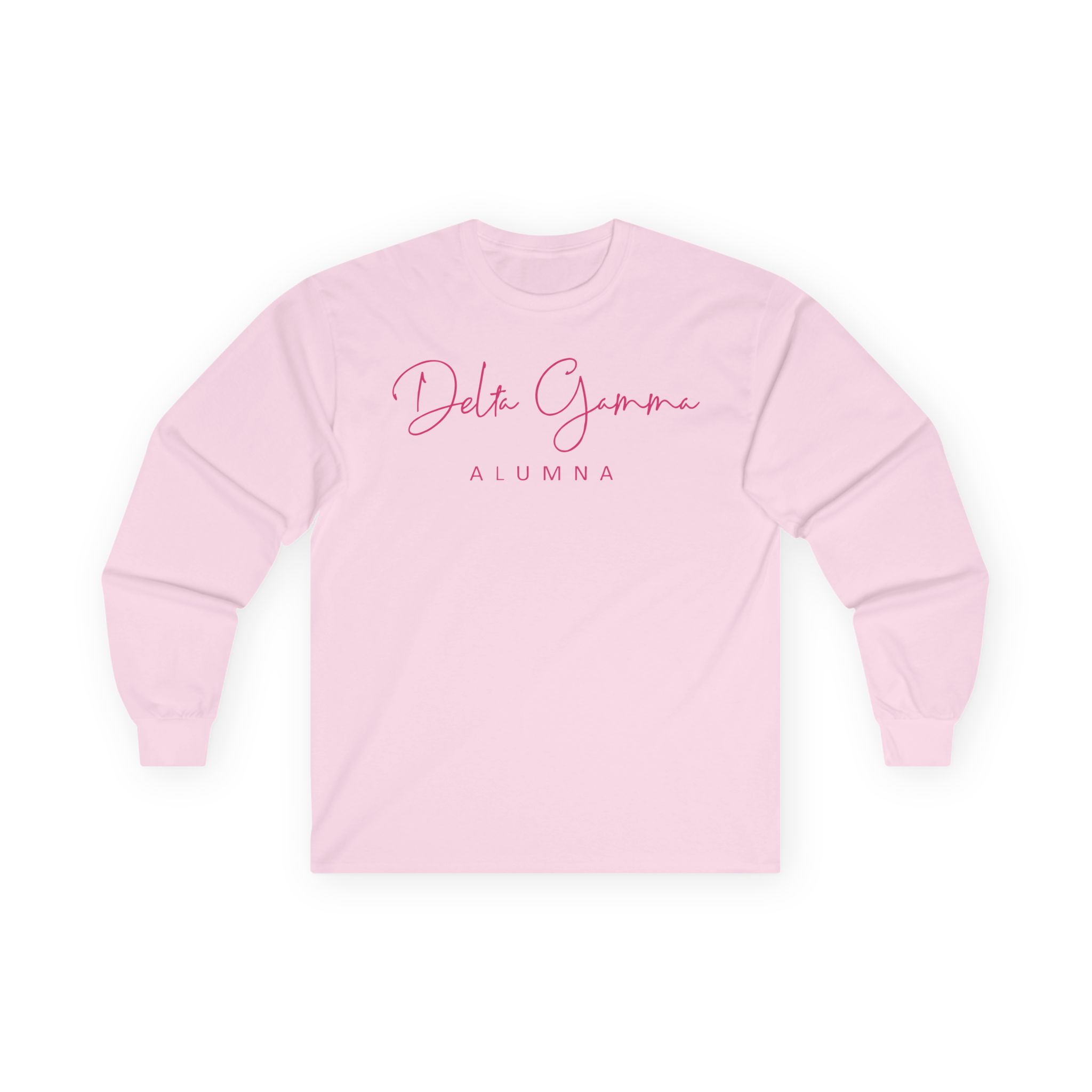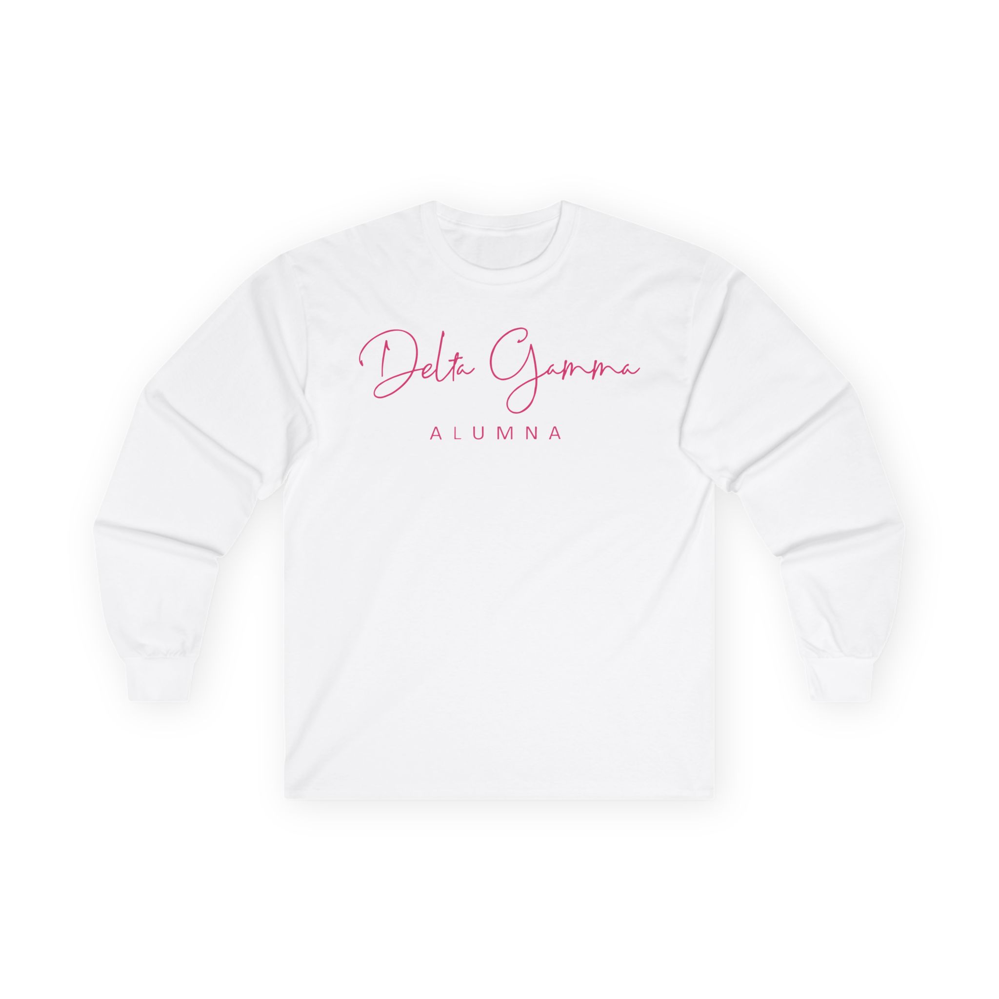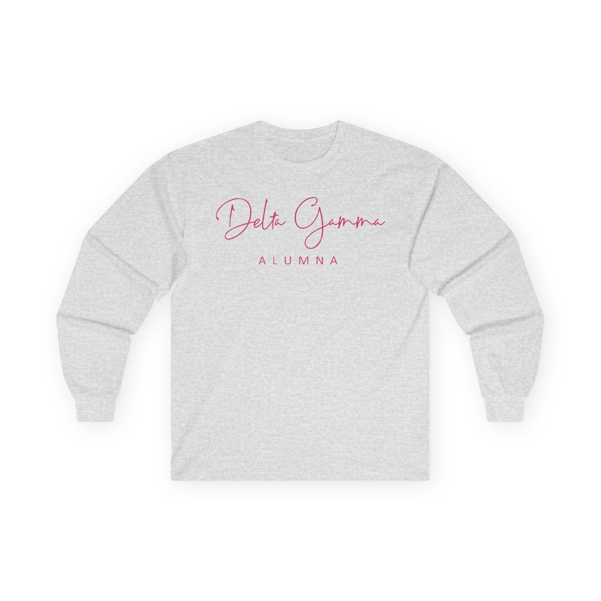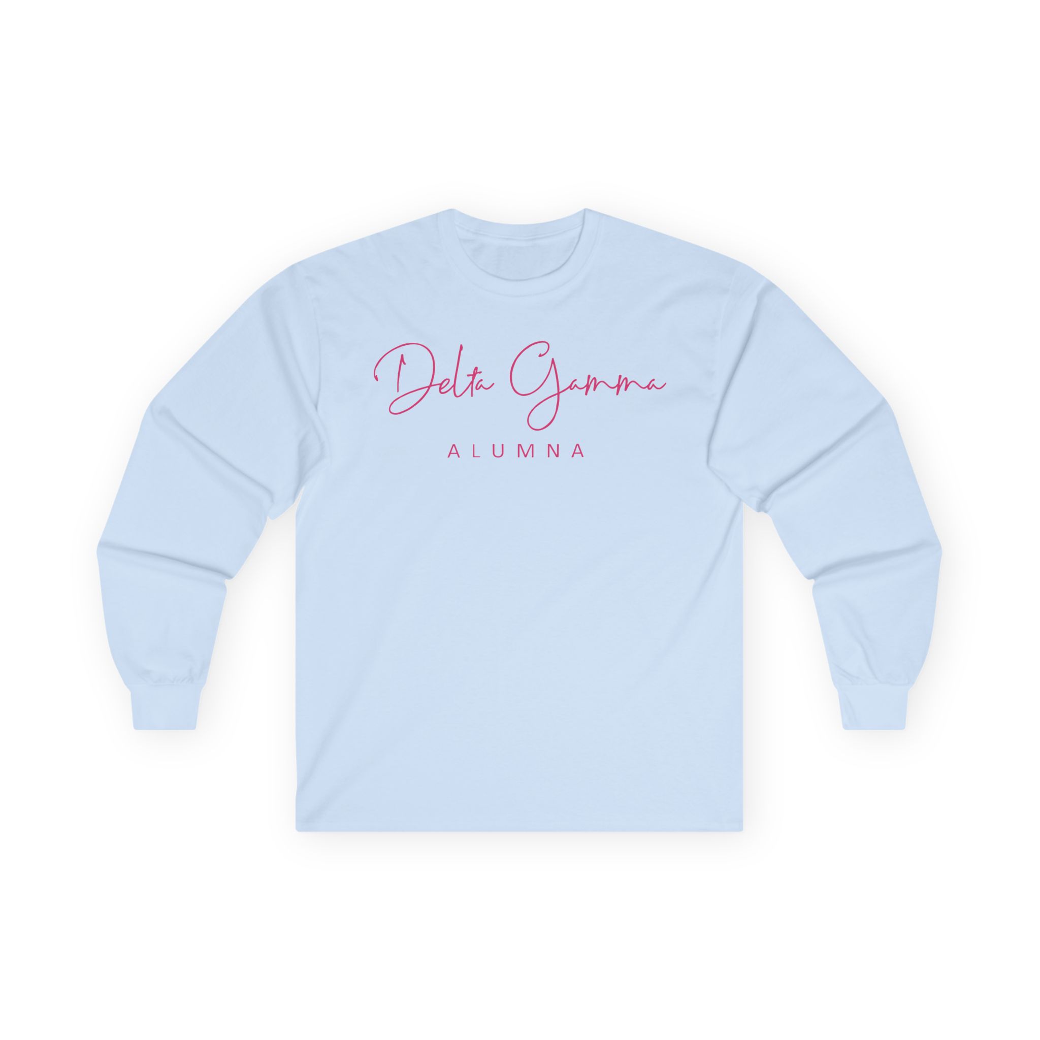 A bit more formal than a standard-issue t-shirt, the Delta Gamma Alumna ultra cotton long sleeve tee is a clear comfort winner. The sleeves also act as a nice frame. There are no side seams. The shoulders are taped for improved durability. This makes for a good fitting around the shoulders and neck. The cotton used for these shirts is environmentally friendly.