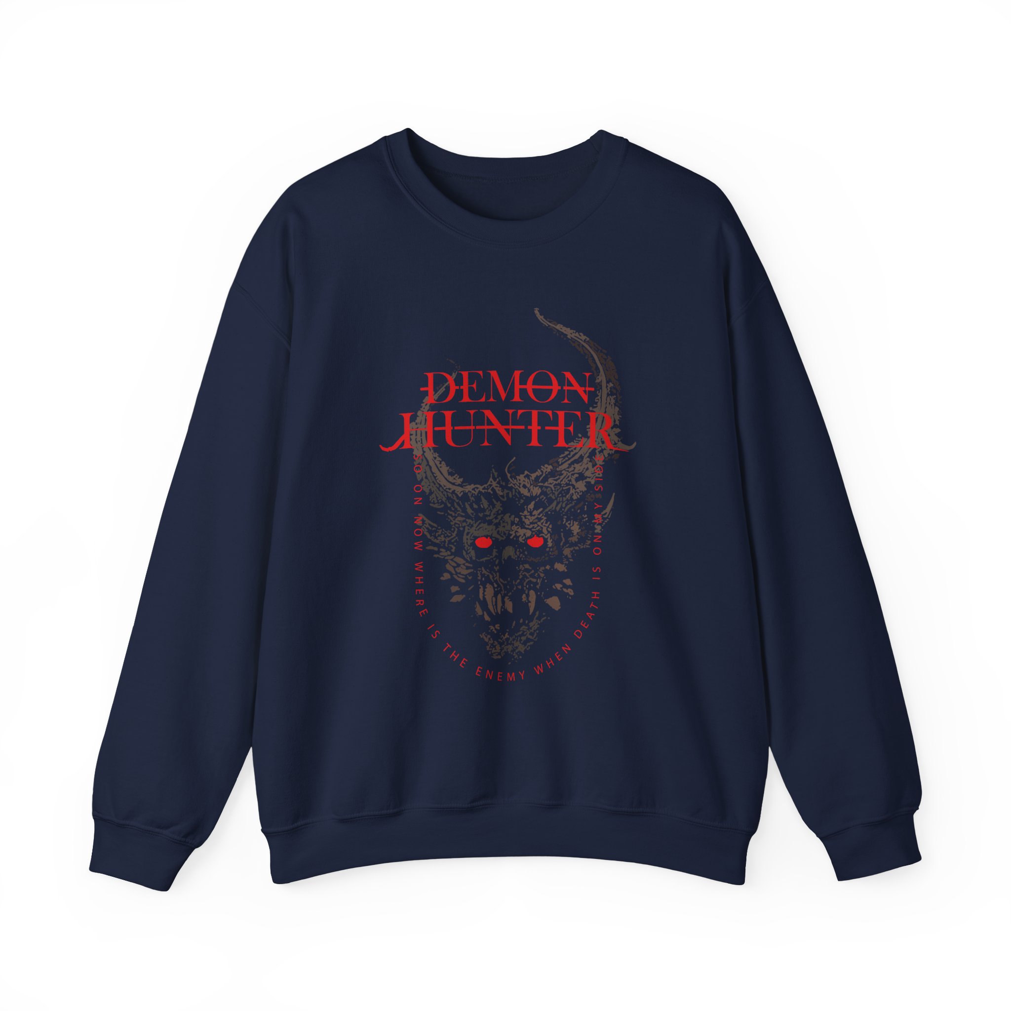 Ideal for any situation, a Demon Hunter on My Side unisex heavy blend crewneck sweatshirt is pure comfort. These garments are made from polyester and cotton. This combination helps designs come out looking fresh and beautiful. The collar is ribbed knit, so it retains its shape even after washing. There are no itchy side seams on these sweaters.