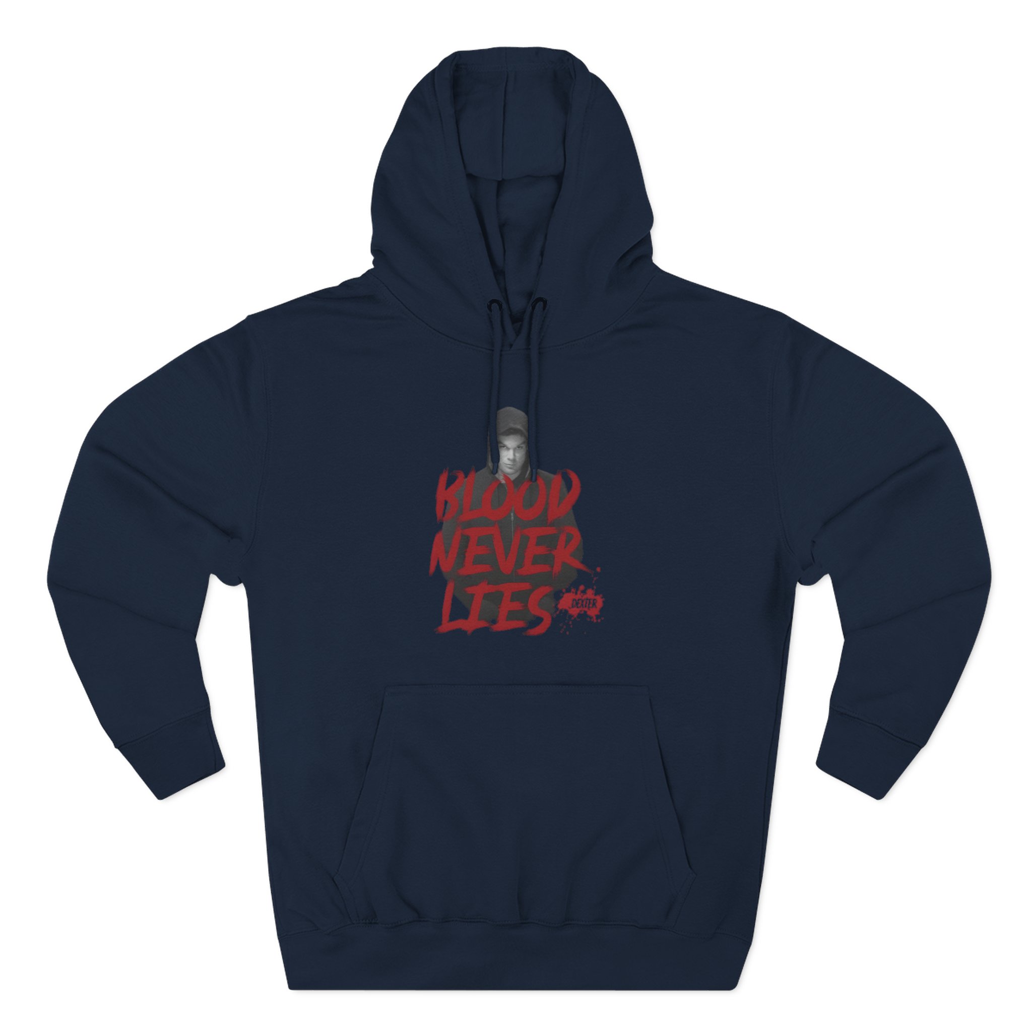 Beat the cold with this Dexter Blood Never Lies premium pullover hoodie that’s just the right layer of warm and cozy. Made with three-panel fleece lining, this pullover is double stitched for durability and roomy. Pick one in your favorite color to match your style.