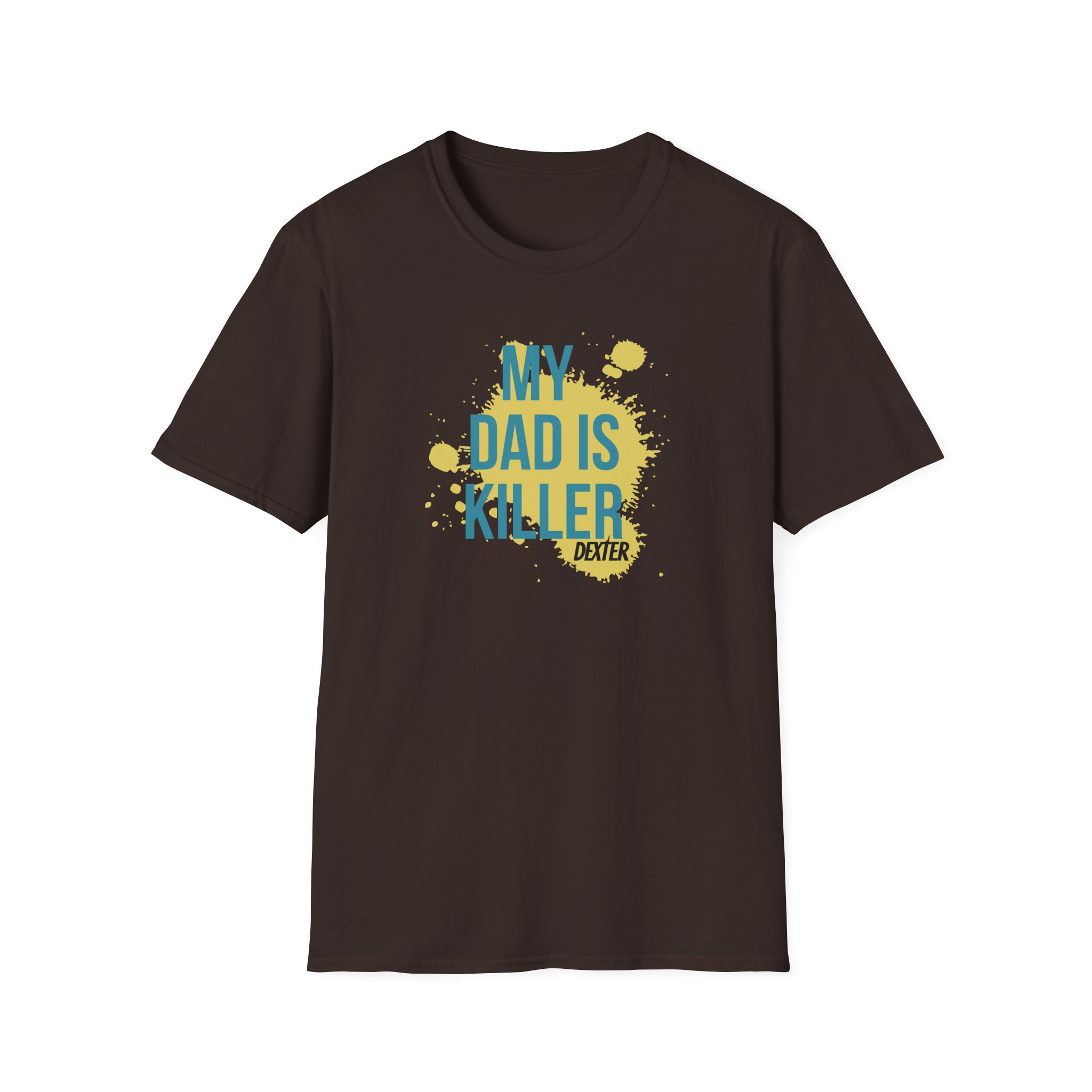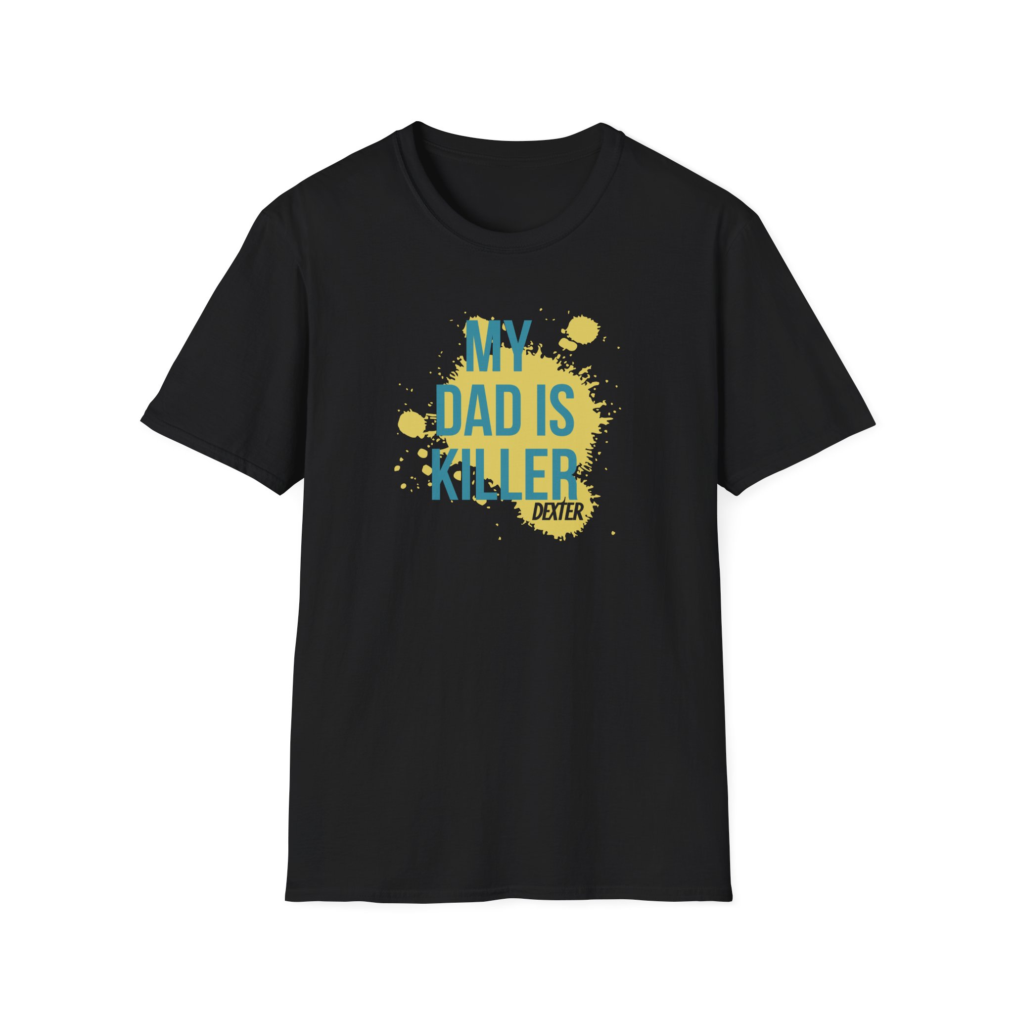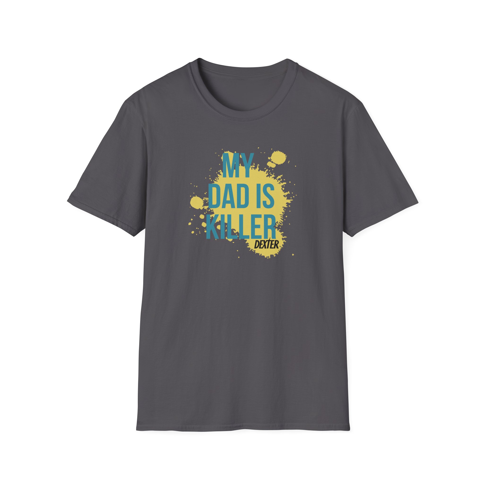 The Dexter My Dad is Killer unisex soft-style t-shirt puts a new spin on casual comfort. Made from very soft materials, this tee is 100% cotton for solid colors. Heather colors and sports grey include polyester. The shoulders have twill tape for improved durability. There are no side seams. The collar is made with ribbed knitting to prevent curling damage.