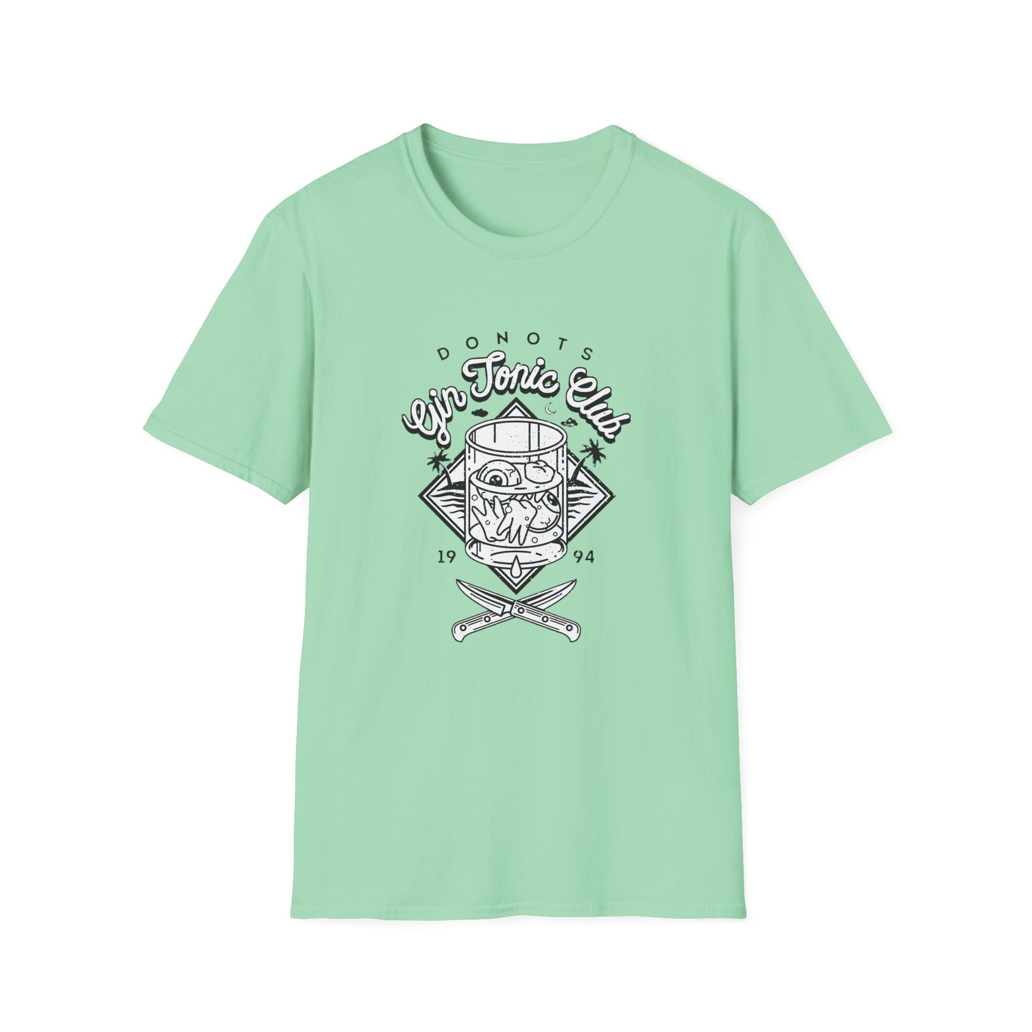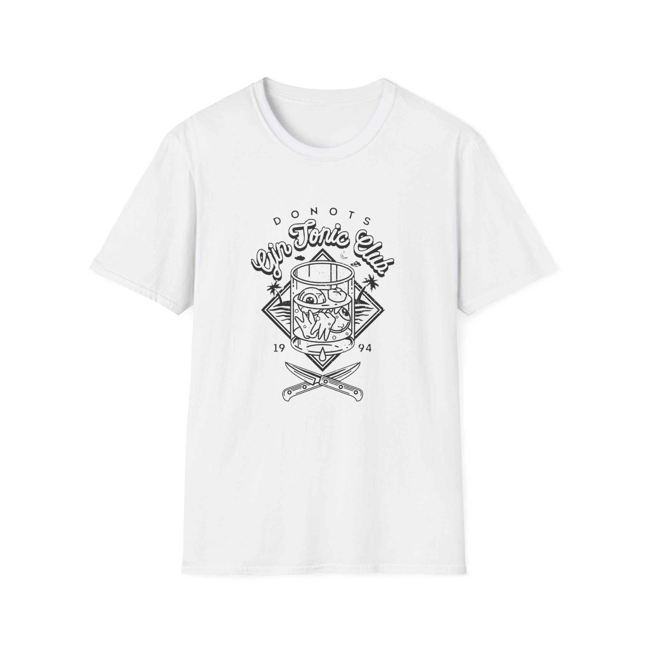 The Donots Gin Tonic Club unisex soft-style t-shirt puts a new spin on casual comfort. Made from very soft materials, this tee is 100% cotton for solid colors. Heather colors and sports grey include polyester. The shoulders have twill tape for improved durability. There are no side seams. The collar is made with ribbed knitting to prevent curling damage.