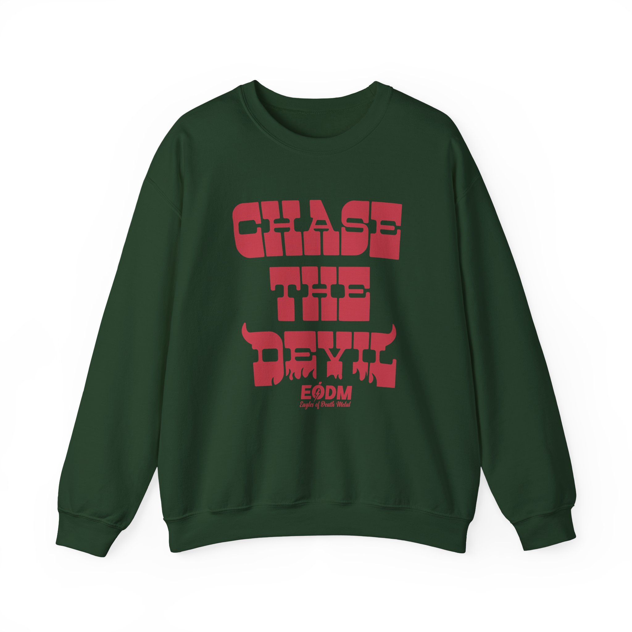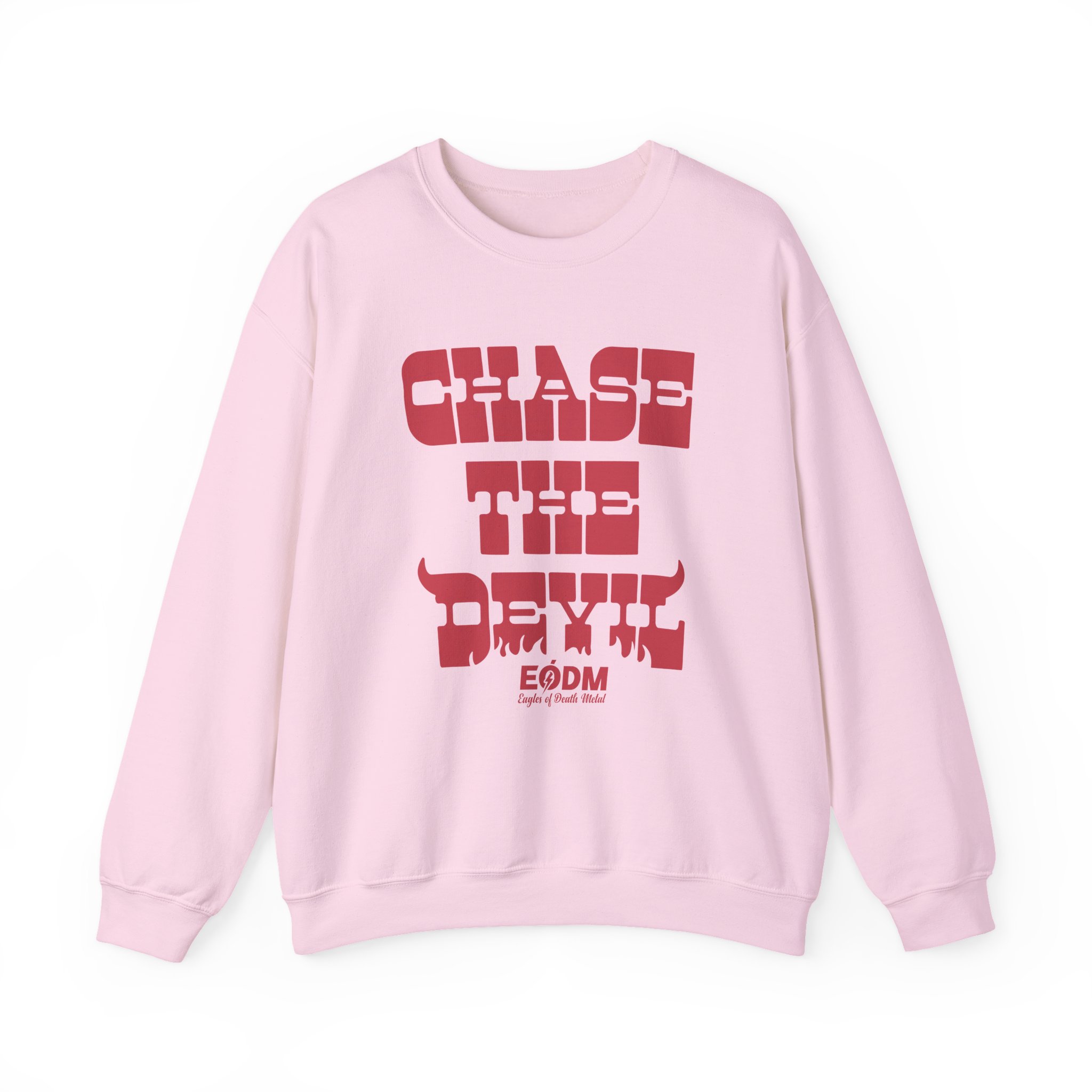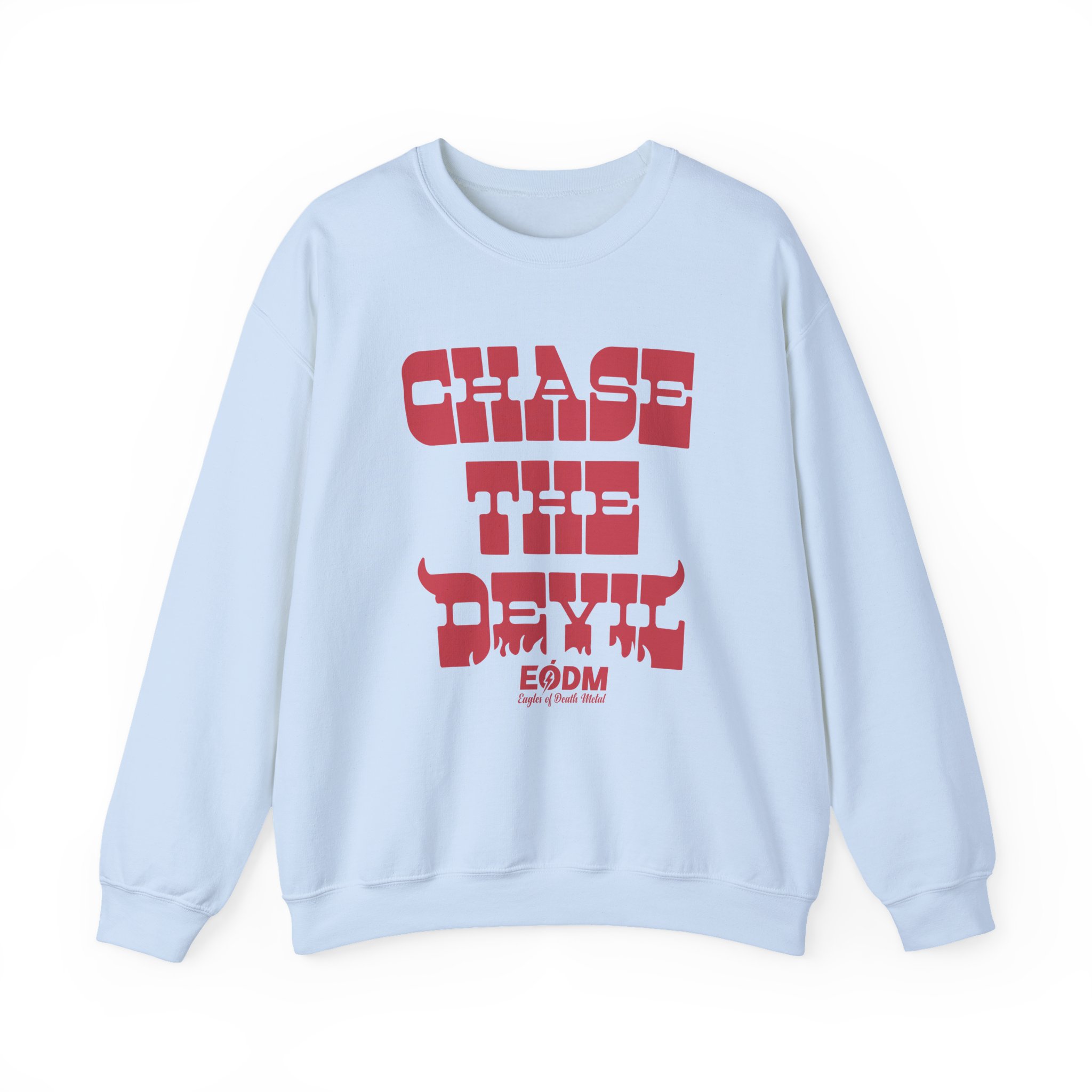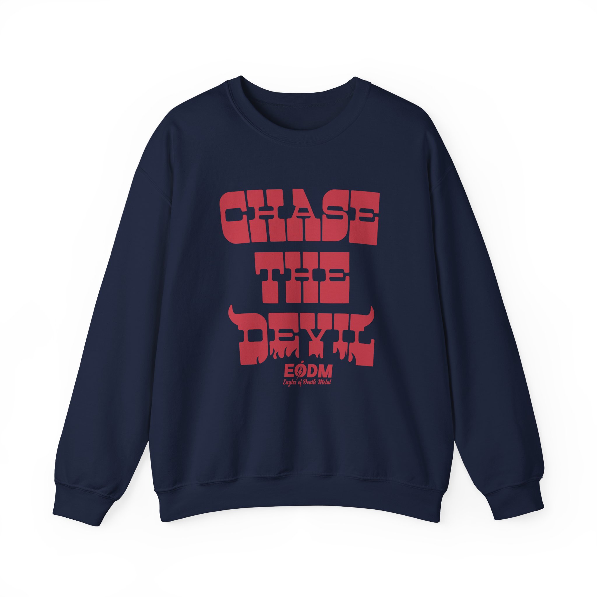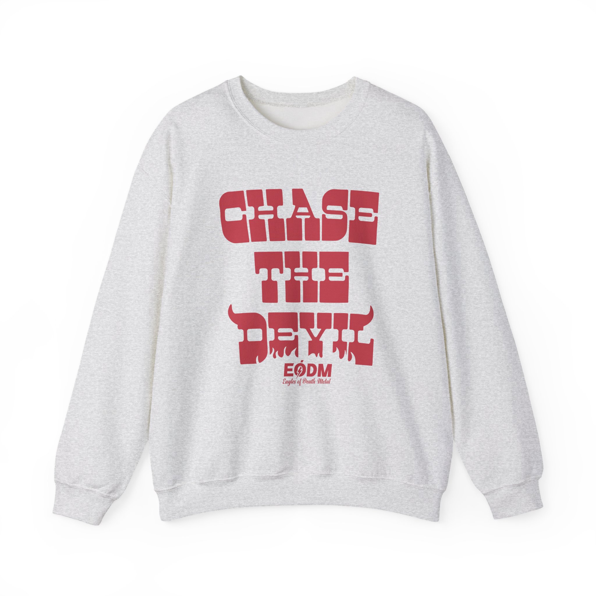 Ideal for any situation, a Eagles of Death Metal Chase The Devil unisex heavy blend crewneck sweatshirt is pure comfort. These garments are made from polyester and cotton. This combination helps designs come out looking fresh and beautiful. The collar is ribbed knit, so it retains its shape even after washing. There are no itchy side seams on these sweaters.