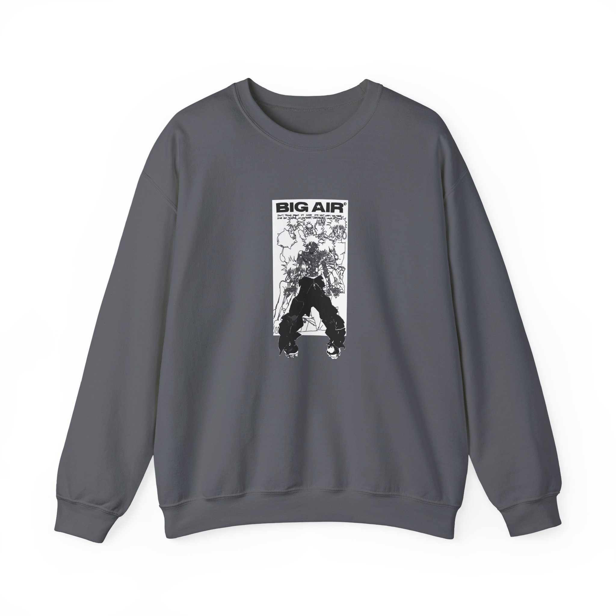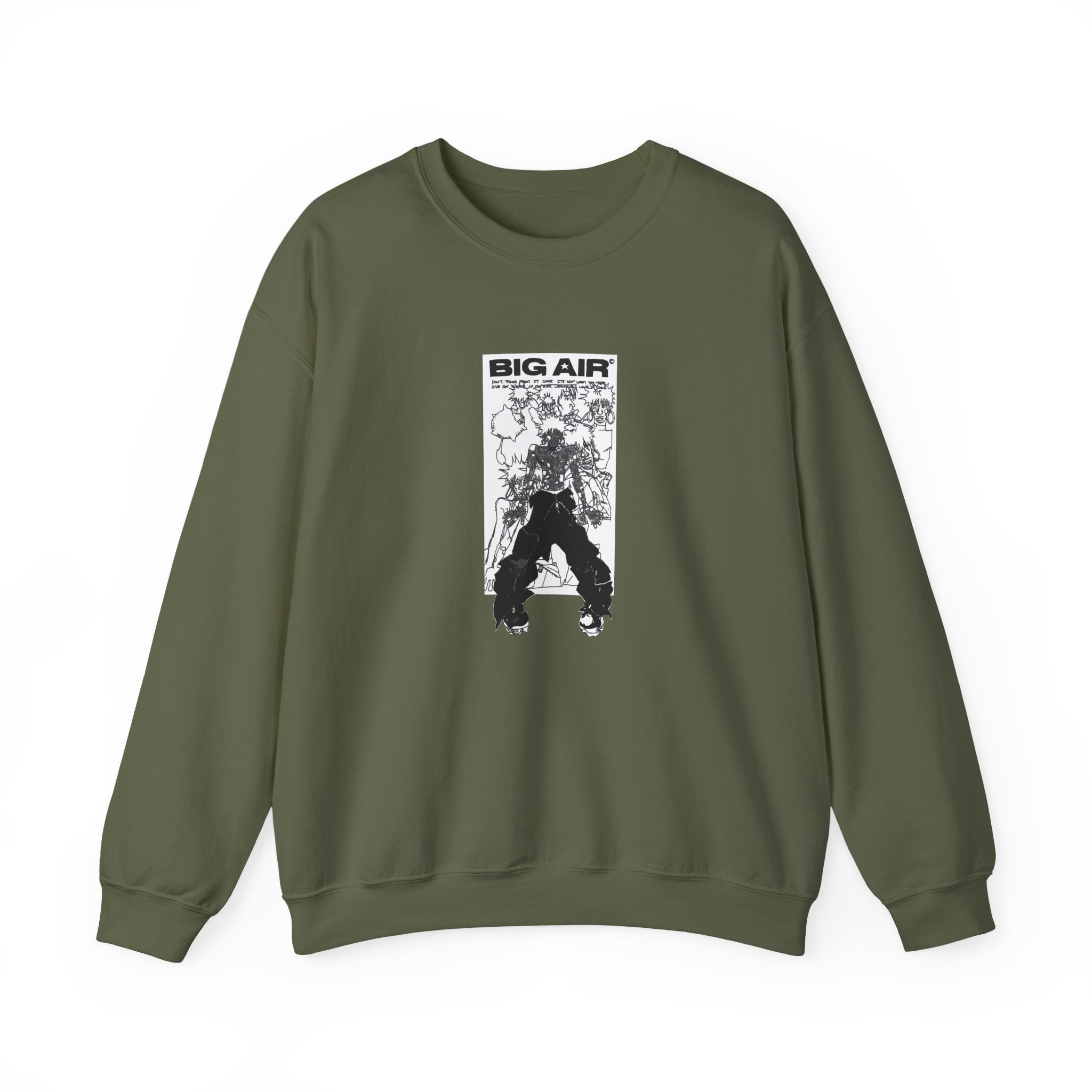 Ideal for any situation, a Ecco2k Big Air unisex heavy blend crewneck sweatshirt is pure comfort. These garments are made from polyester and cotton. This combination helps designs come out looking fresh and beautiful. The collar is ribbed knit, so it retains its shape even after washing. There are no itchy side seams on these sweaters.