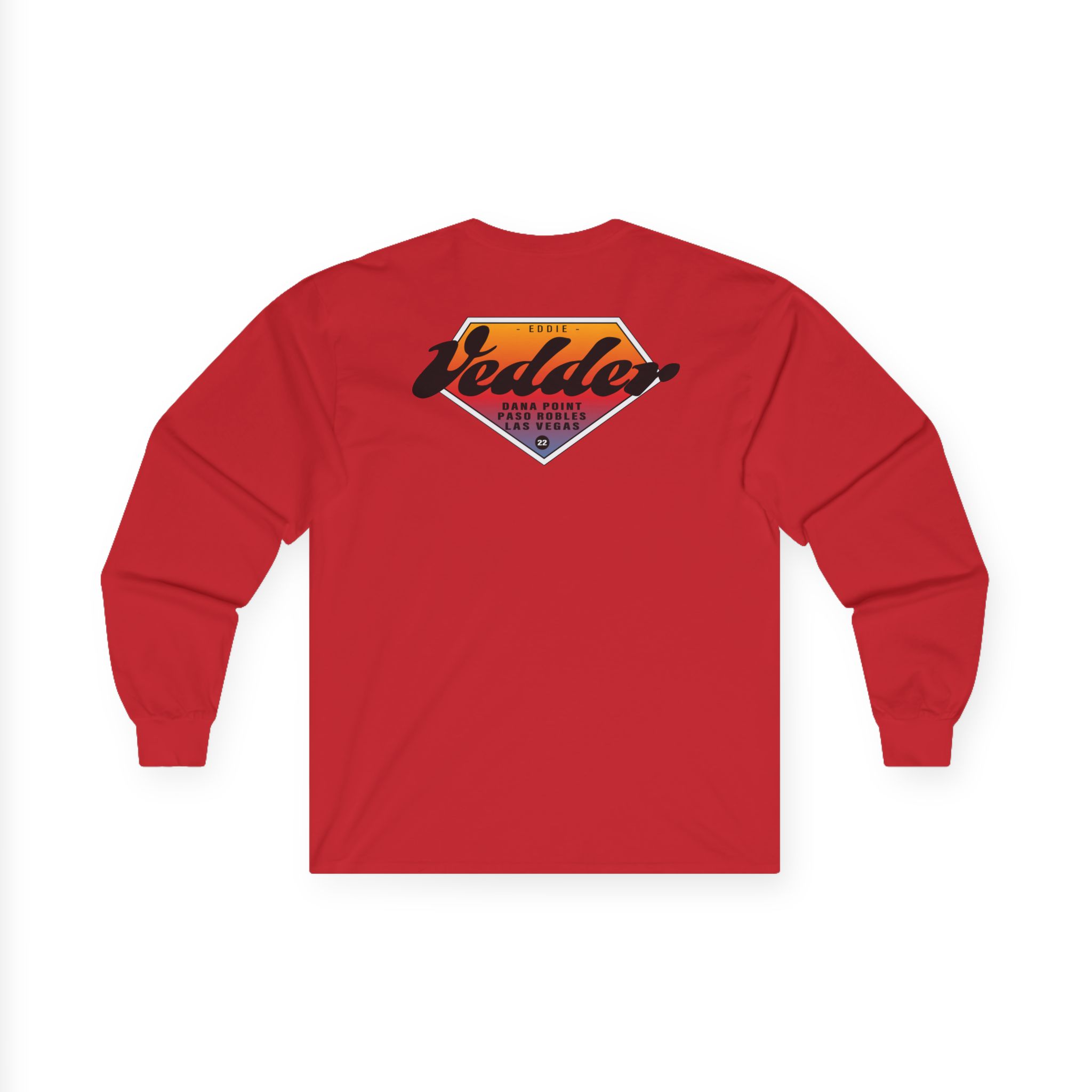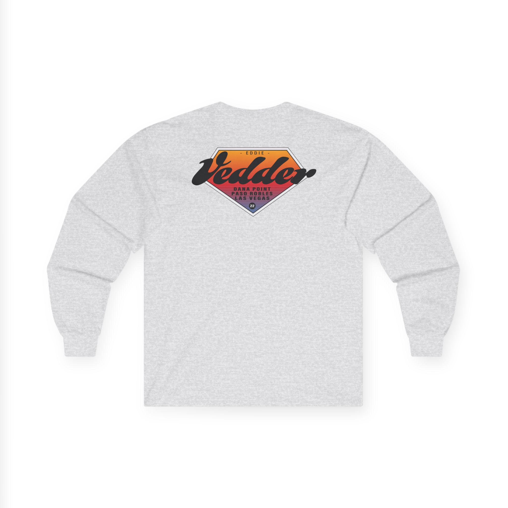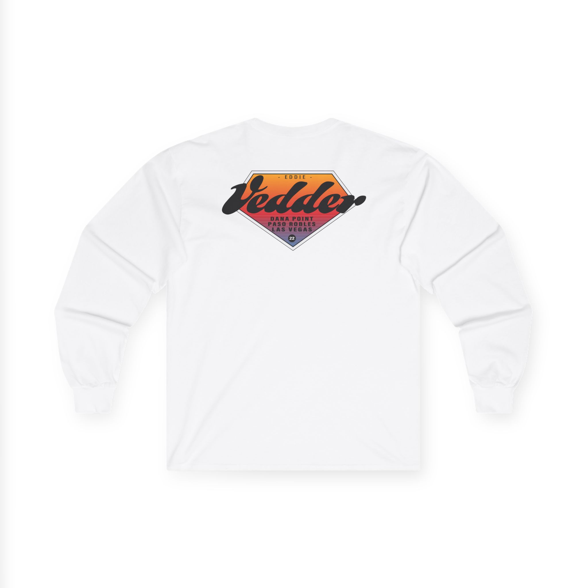 A bit more formal than a standard-issue t-shirt, the Eddie Vedder Gradient ultra cotton long sleeve tee is a clear comfort winner. The sleeves also act as a nice frame. There are no side seams. The shoulders are taped for improved durability. This makes for a good fitting around the shoulders and neck. The cotton used for these shirts is environmentally friendly.