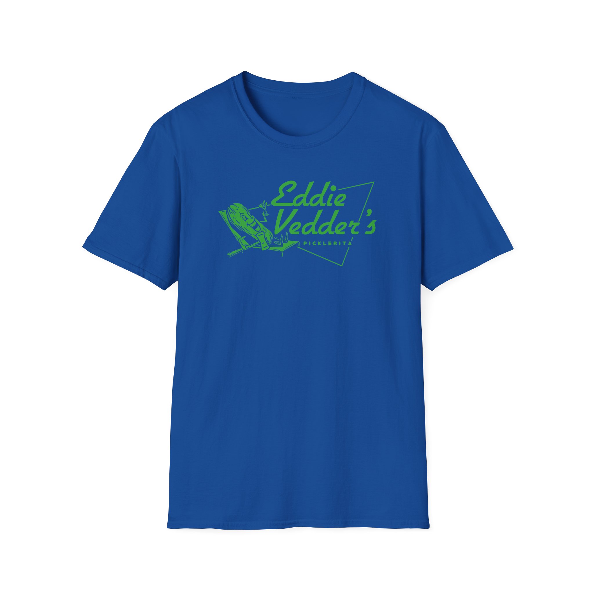 The Eddie Vedder Picklerita unisex soft-style t-shirt puts a new spin on casual comfort. Made from very soft materials, this tee is 100% cotton for solid colors. Heather colors and sports grey include polyester. The shoulders have twill tape for improved durability. There are no side seams. The collar is made with ribbed knitting to prevent curling damage.