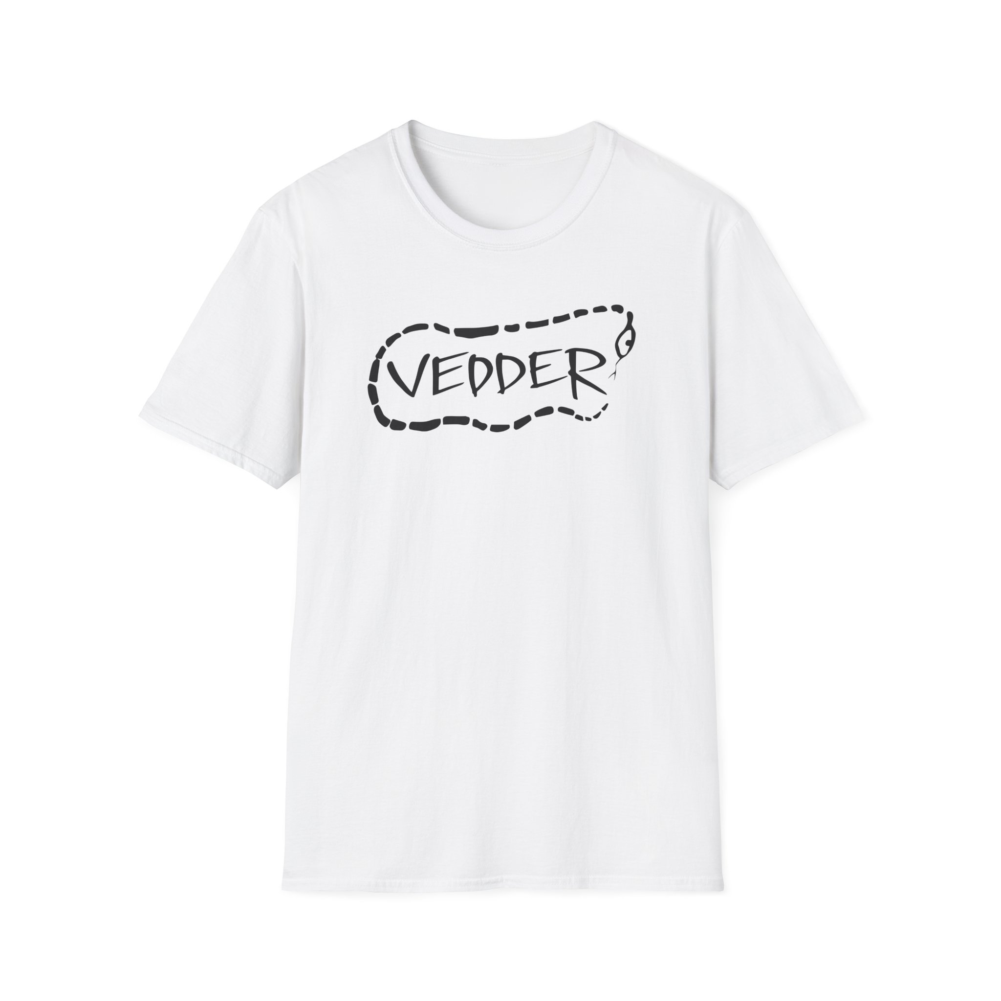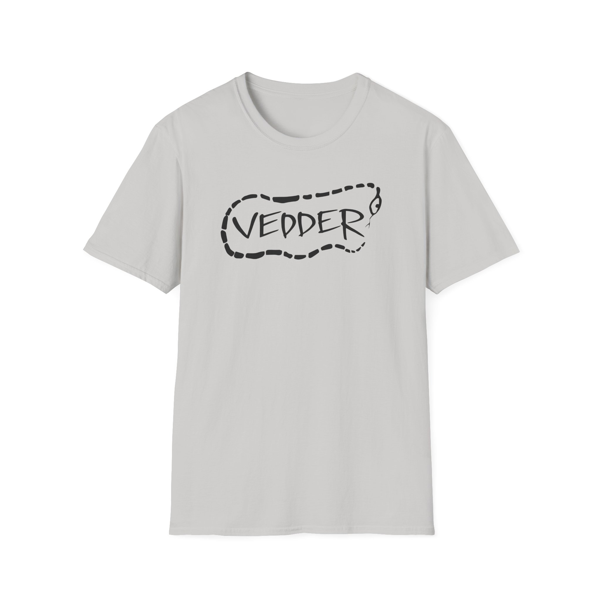 The Eddie Vedder Stencil Snake unisex soft-style t-shirt puts a new spin on casual comfort. Made from very soft materials, this tee is 100% cotton for solid colors. Heather colors and sports grey include polyester. The shoulders have twill tape for improved durability. There are no side seams. The collar is made with ribbed knitting to prevent curling damage.