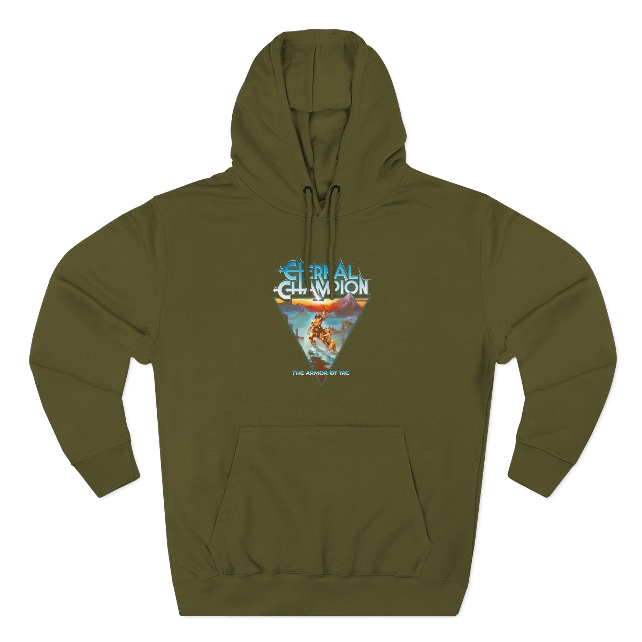 Beat the cold with this Eternal Champion Triangle Ire premium pullover hoodie that’s just the right layer of warm and cozy. Made with three-panel fleece lining, this pullover is double stitched for durability and roomy. Pick one in your favorite color to match your style.
