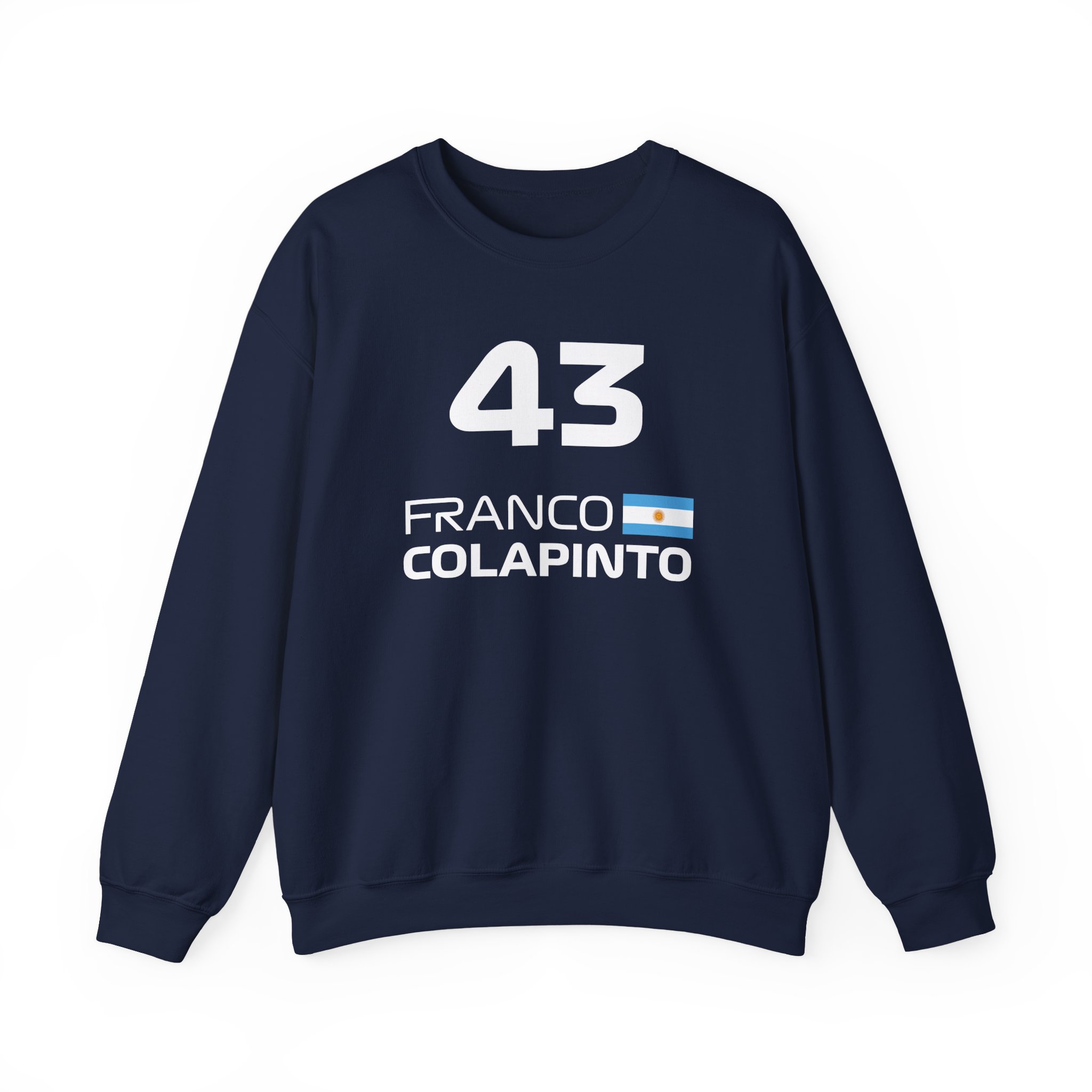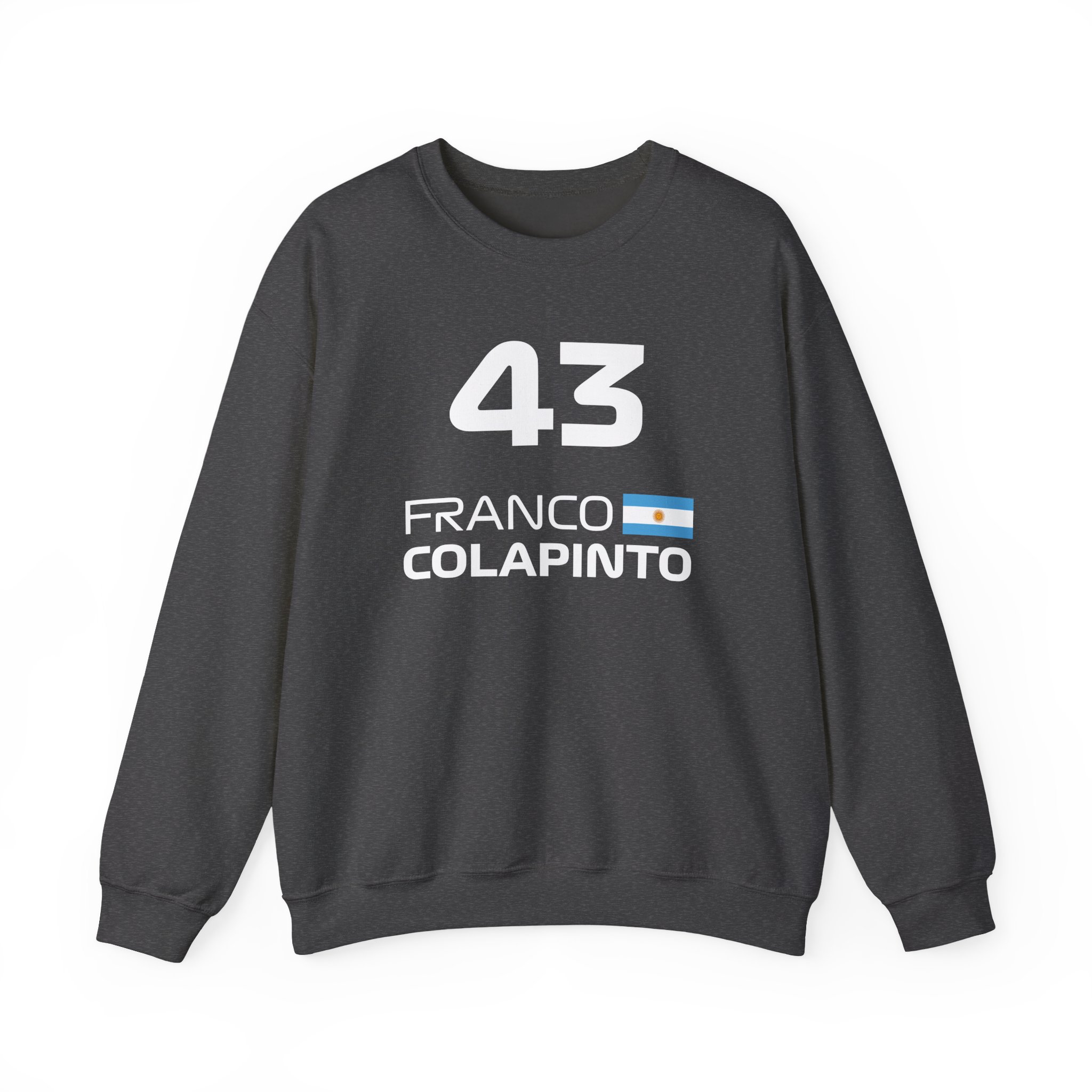 Ideal for any situation, a Franco Colapinto unisex heavy blend crewneck sweatshirt is pure comfort. These garments are made from polyester and cotton. This combination helps designs come out looking fresh and beautiful. The collar is ribbed knit, so it retains its shape even after washing. There are no itchy side seams on these sweaters.