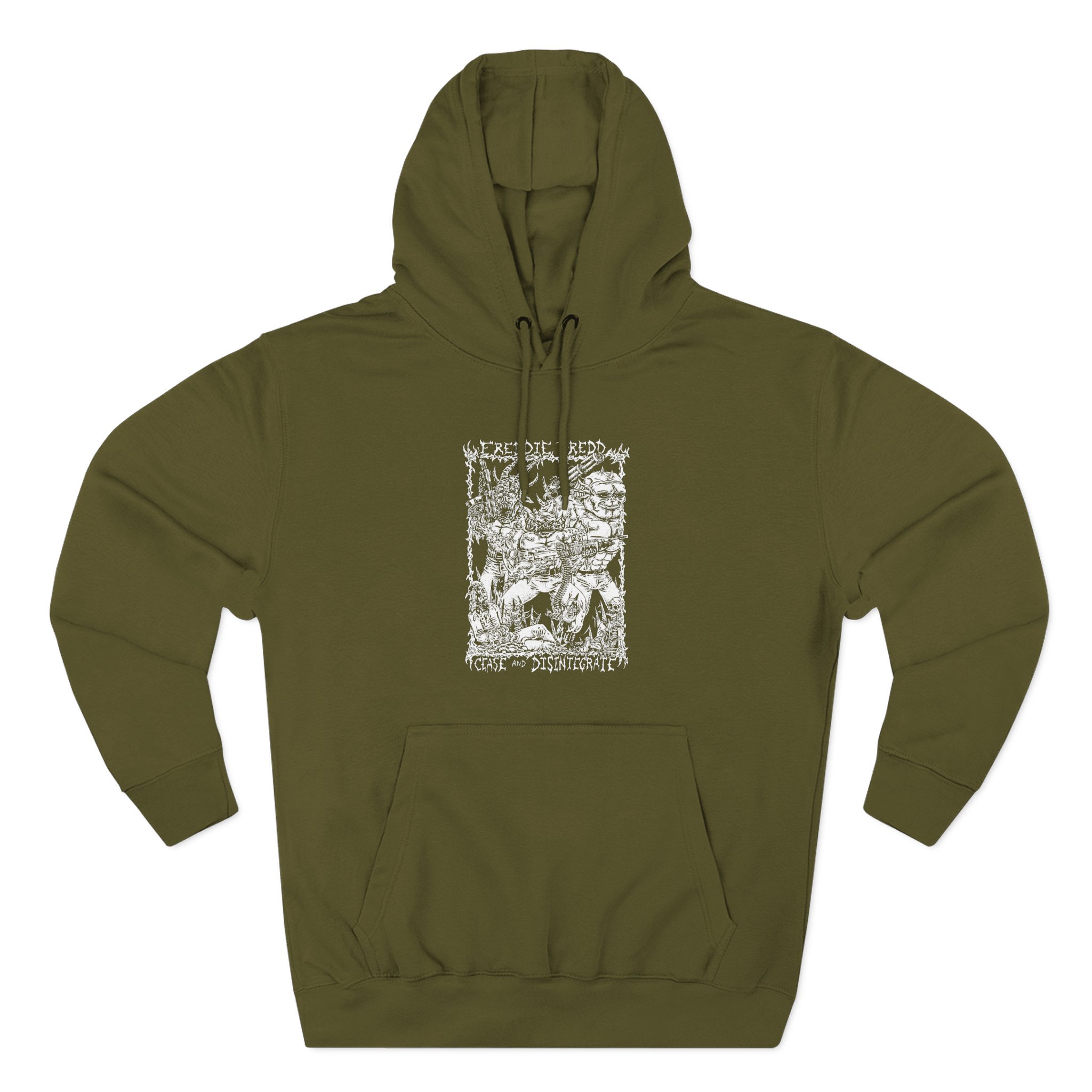 Beat the cold with this Freddie Dredd Demon Soldiers premium pullover hoodie that’s just the right layer of warm and cozy. Made with three-panel fleece lining, this pullover is double stitched for durability and roomy. Pick one in your favorite color to match your style.