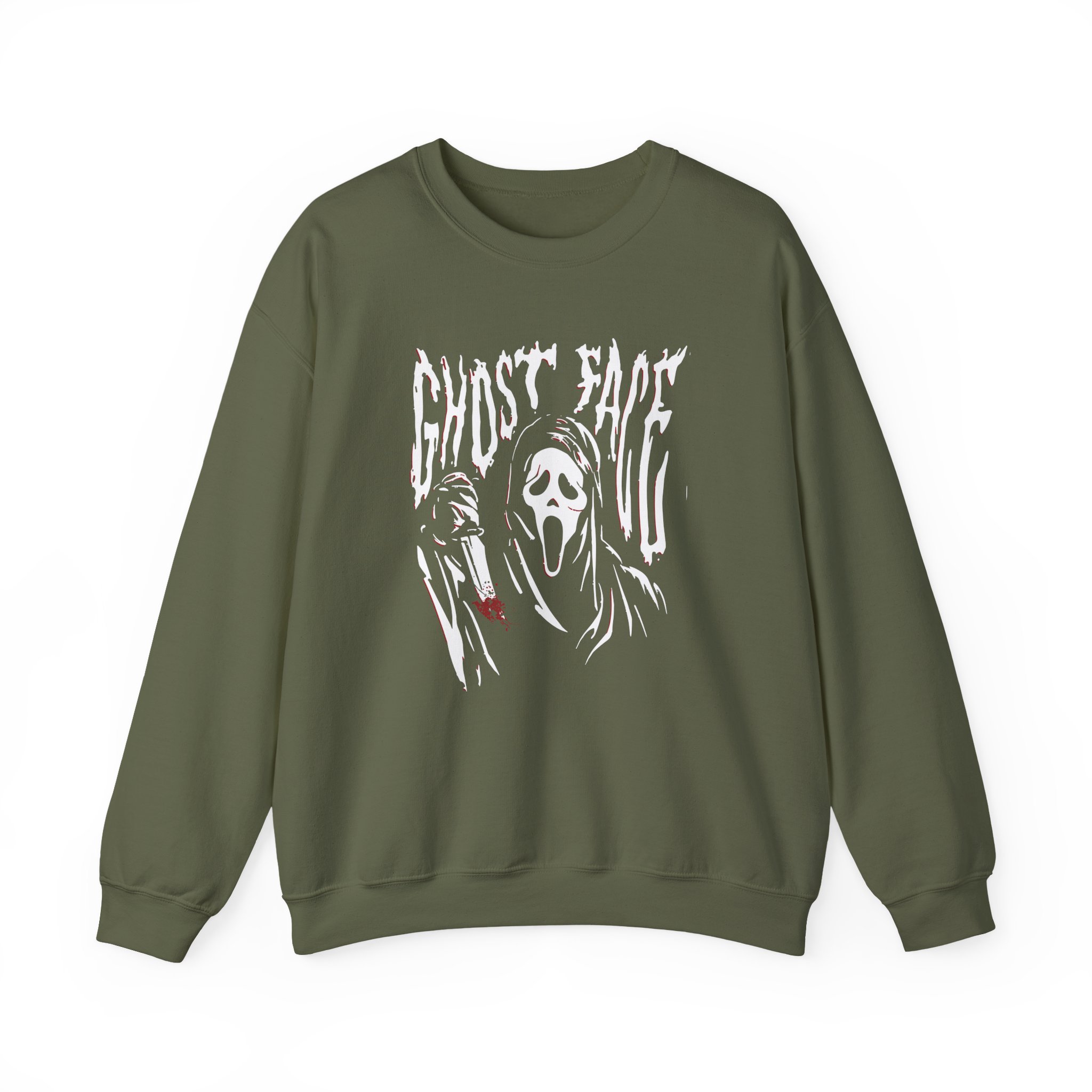 Ideal for any situation, a Ghostface unisex heavy blend crewneck sweatshirt is pure comfort. These garments are made from polyester and cotton. This combination helps designs come out looking fresh and beautiful. The collar is ribbed knit, so it retains its shape even after washing. There are no itchy side seams on these sweaters.