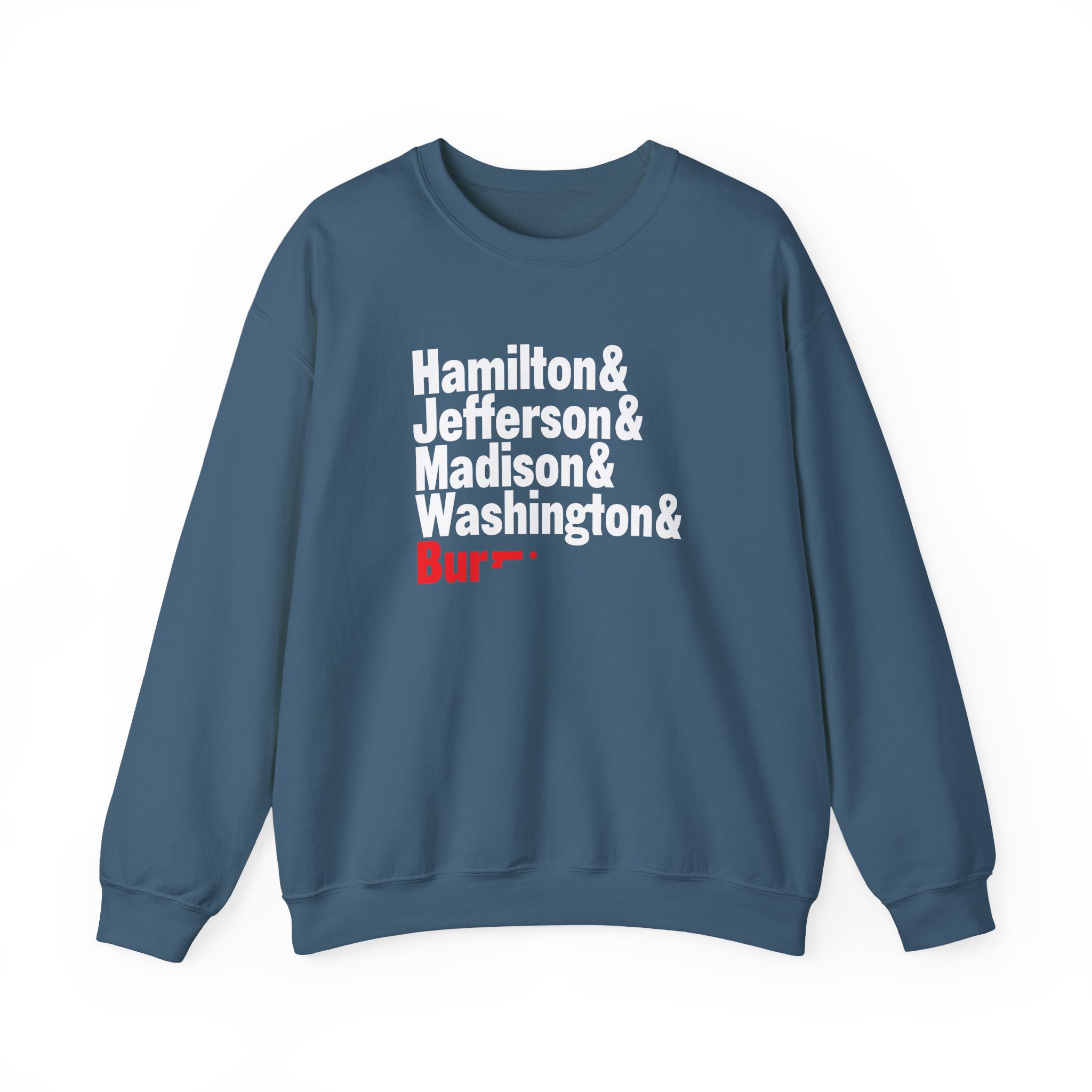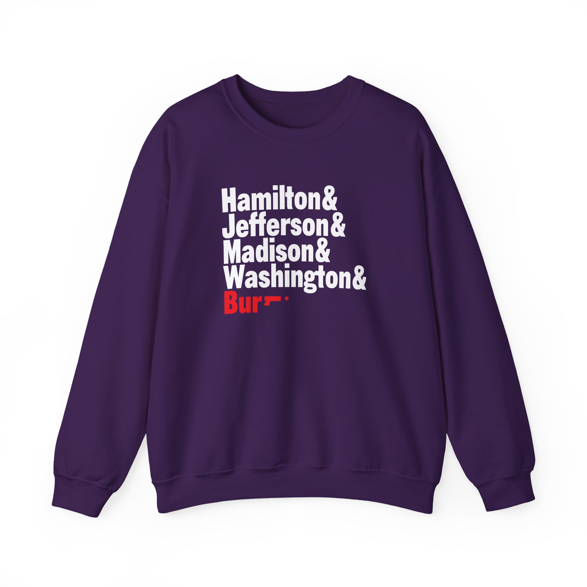Ideal for any situation, a Hamilton Names unisex heavy blend crewneck sweatshirt is pure comfort. These garments are made from polyester and cotton. This combination helps designs come out looking fresh and beautiful. The collar is ribbed knit, so it retains its shape even after washing. There are no itchy side seams on these sweaters.