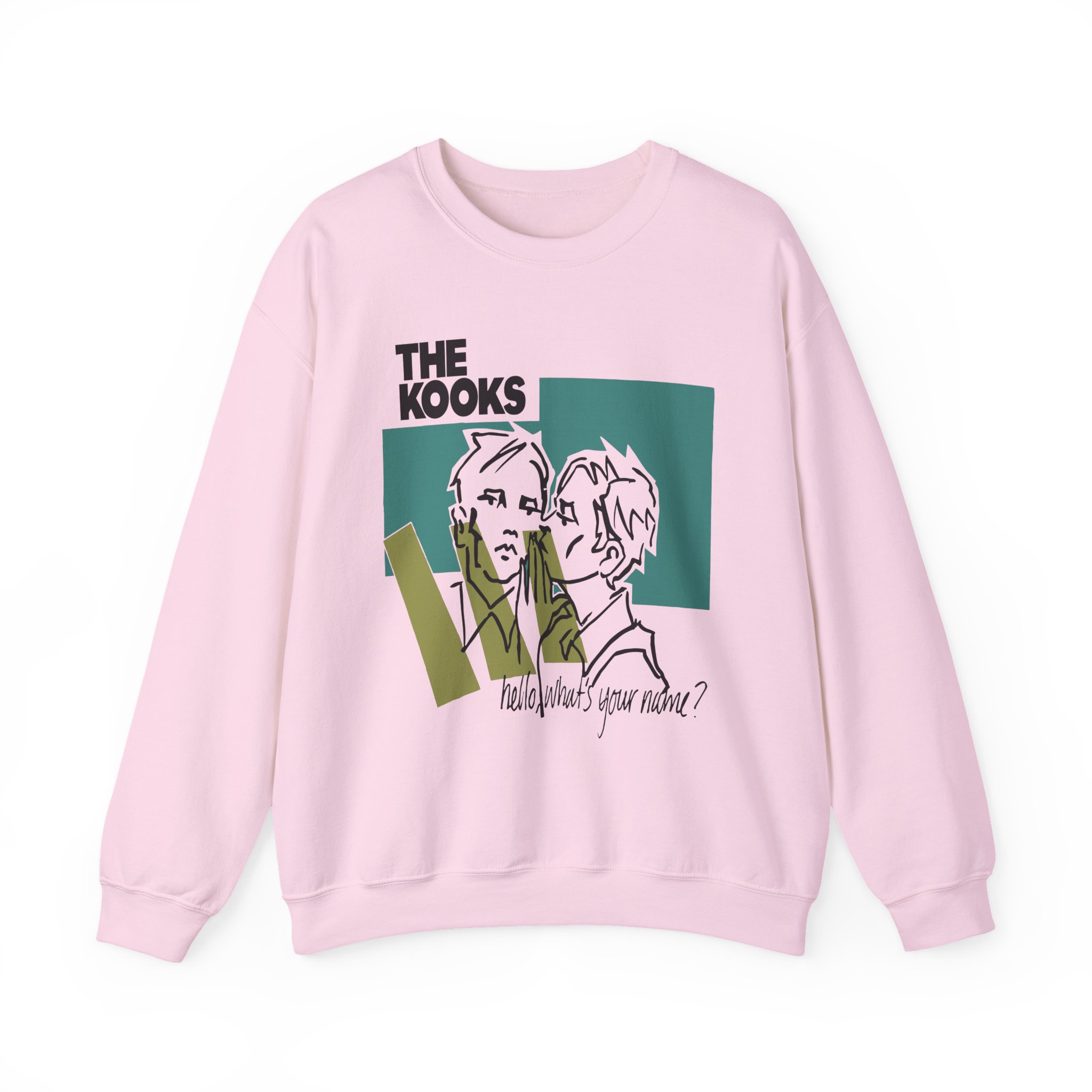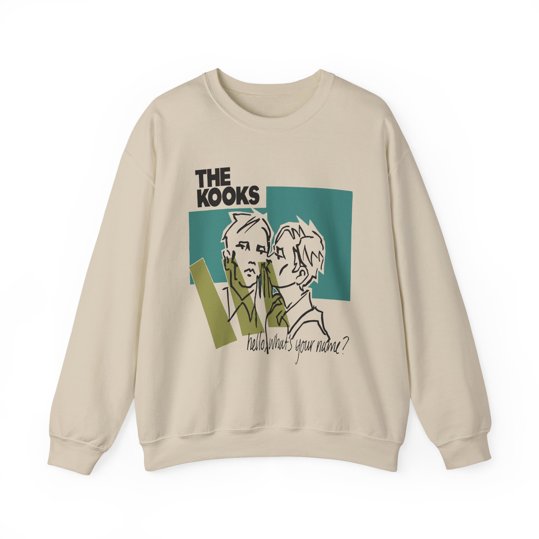 Ideal for any situation, a Hello Whats Your Name the Kooks unisex heavy blend crewneck sweatshirt is pure comfort. These garments are made from polyester and cotton. This combination helps designs come out looking fresh and beautiful. The collar is ribbed knit, so it retains its shape even after washing. There are no itchy side seams on these sweaters.