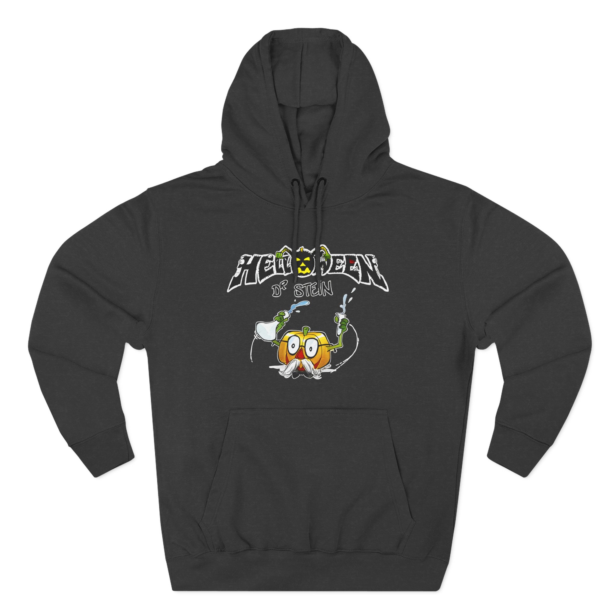 Beat the cold with this Helloween Dr. Stein Zipper premium pullover hoodie that’s just the right layer of warm and cozy. Made with three-panel fleece lining, this pullover is double stitched for durability and roomy. Pick one in your favorite color to match your style.