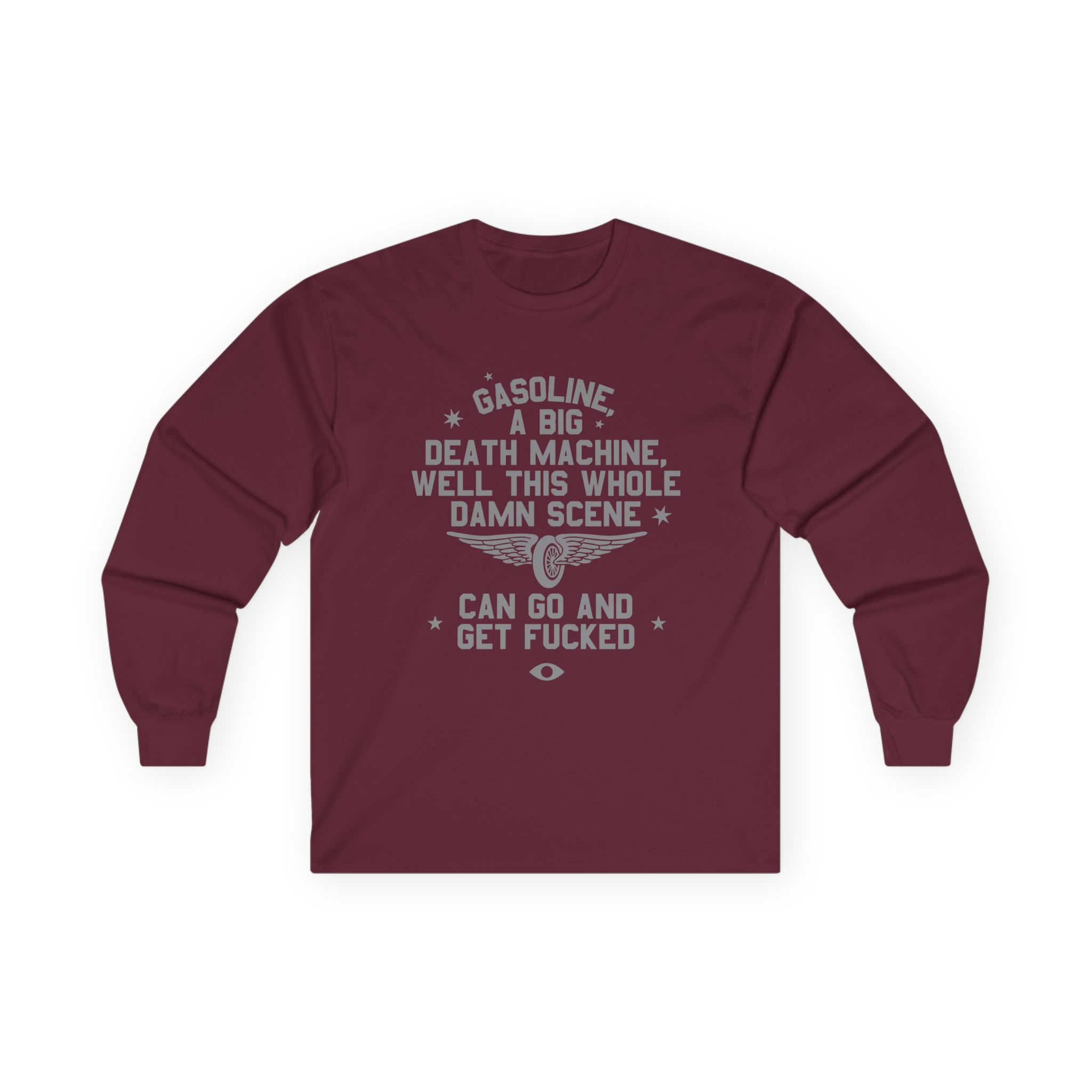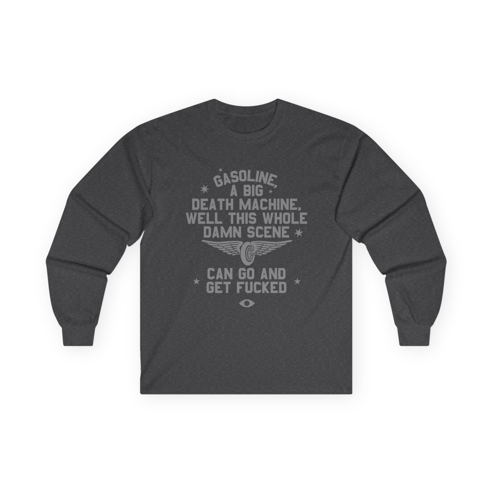 A bit more formal than a standard-issue t-shirt, the Highly Suspect Suicide Machine ultra cotton long sleeve tee is a clear comfort winner. The sleeves also act as a nice frame. There are no side seams. The shoulders are taped for improved durability. This makes for a good fitting around the shoulders and neck. The cotton used for these shirts is environmentally friendly.
