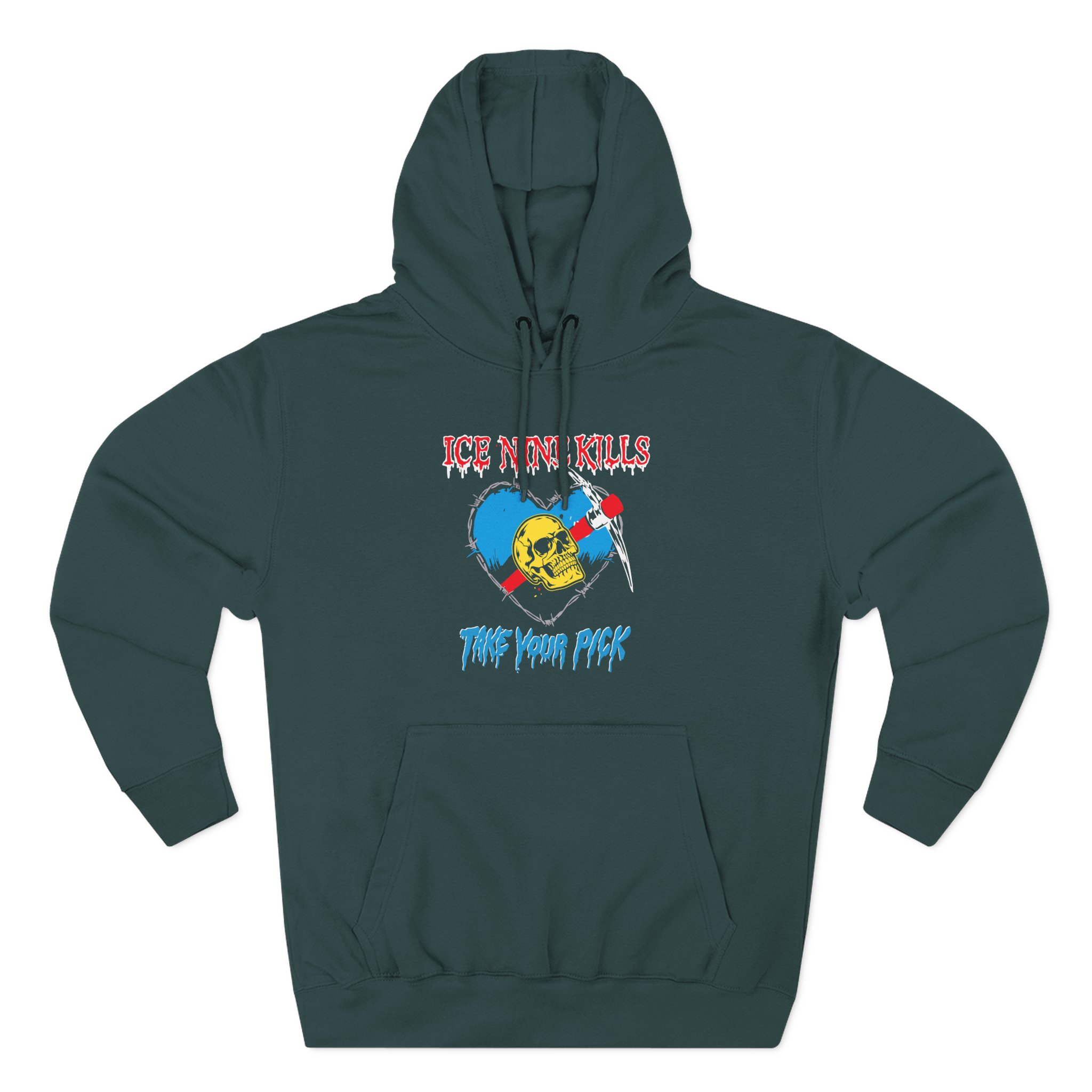 Beat the cold with this Ice Nine Kills Take Your Pick premium pullover hoodie that’s just the right layer of warm and cozy. Made with three-panel fleece lining, this pullover is double stitched for durability and roomy. Pick one in your favorite color to match your style.