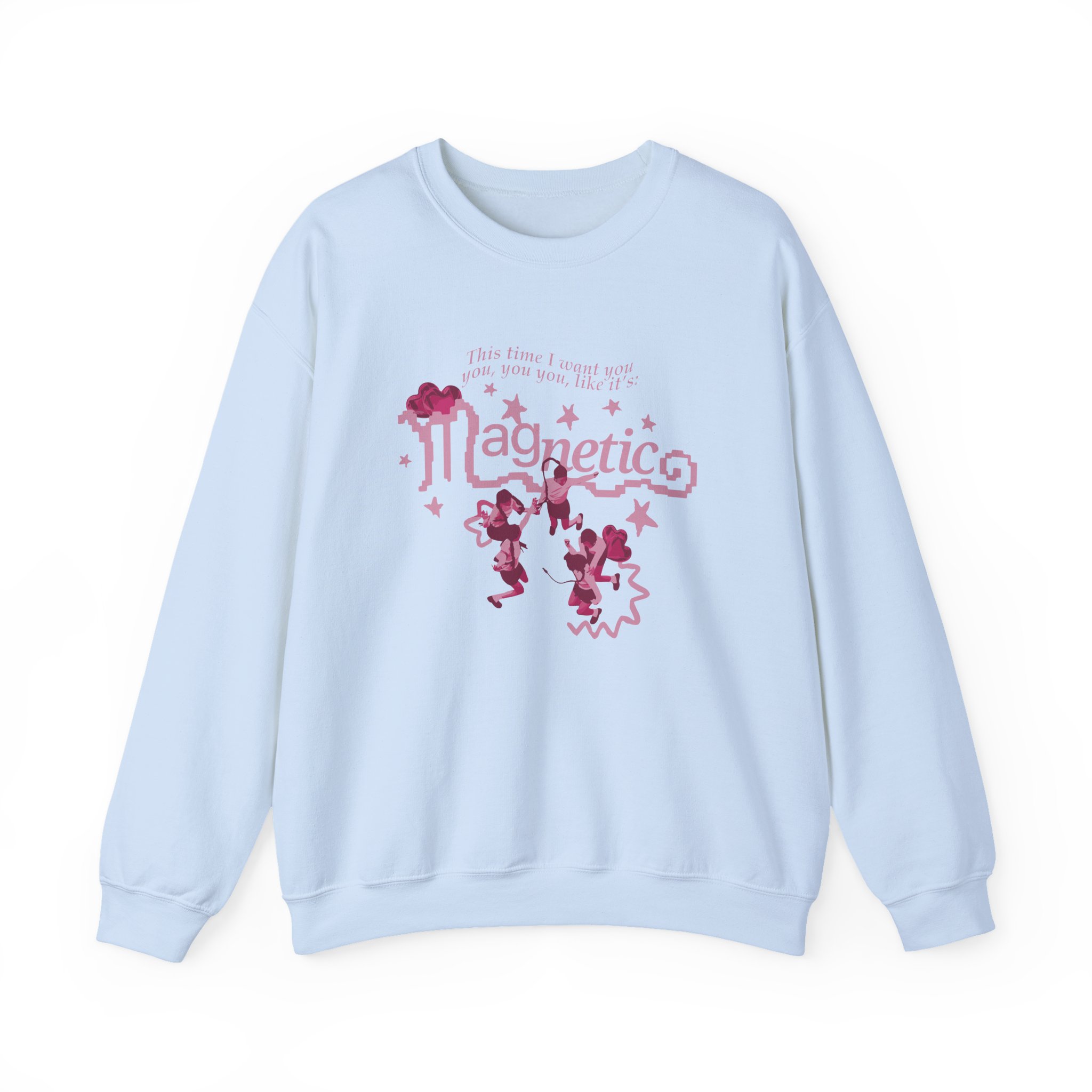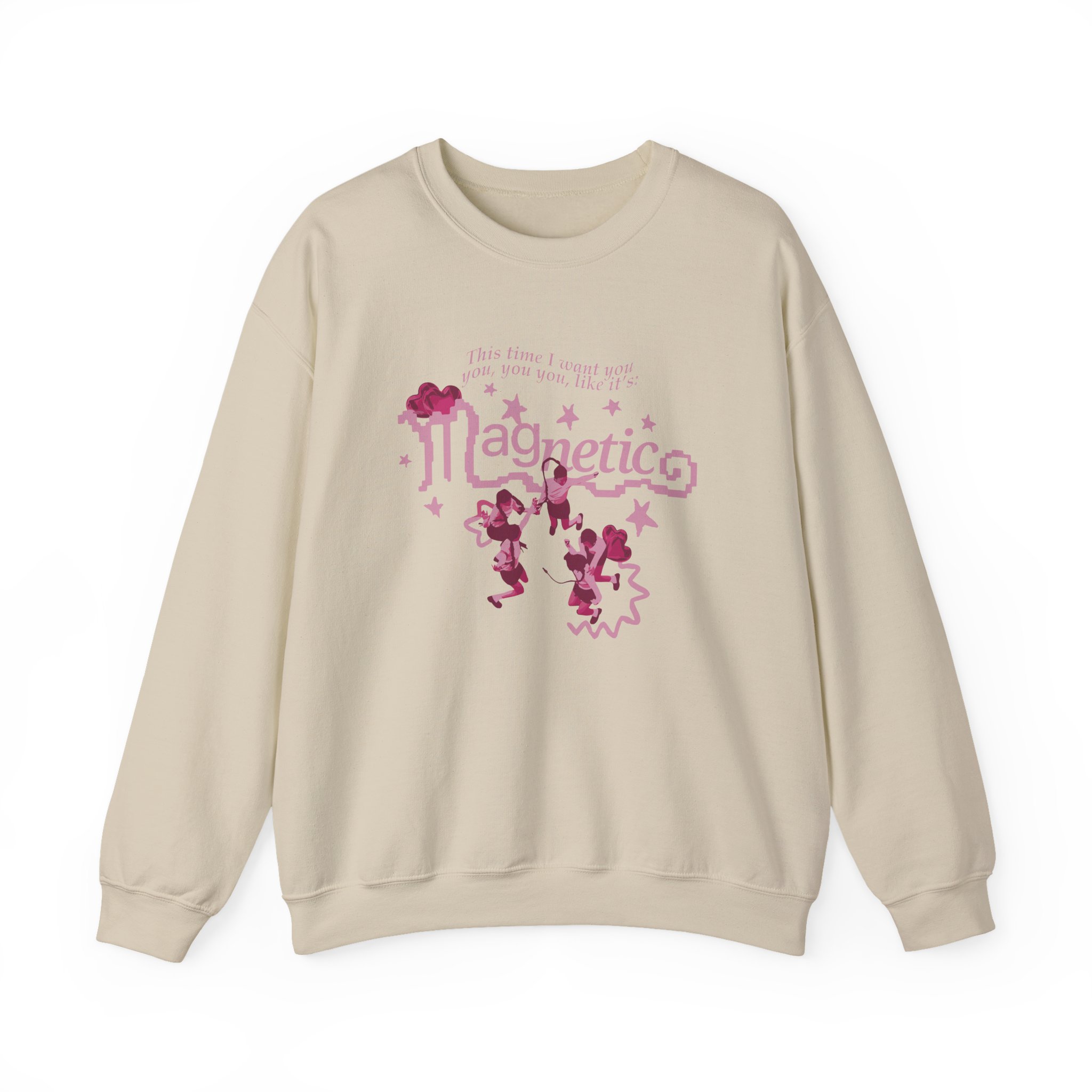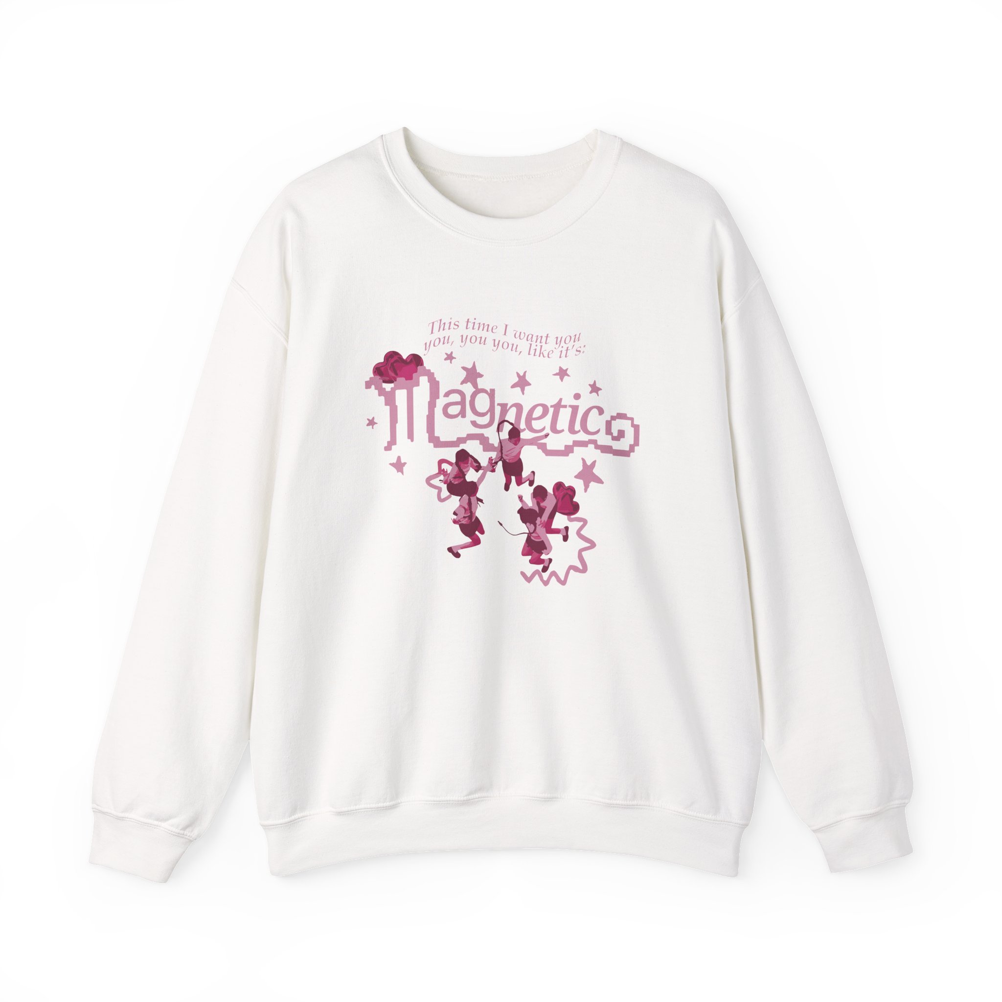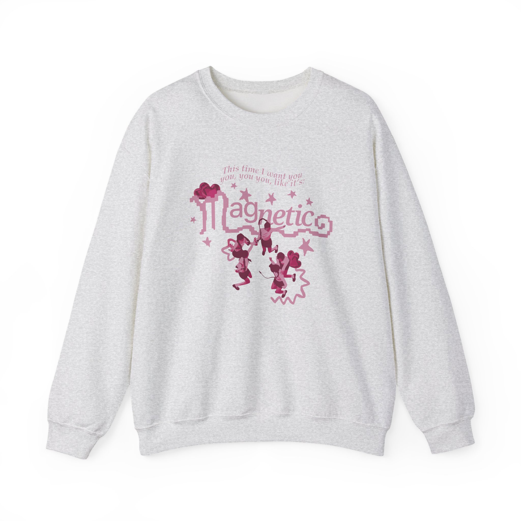 Ideal for any situation, a ILLIT Magnetic unisex heavy blend crewneck sweatshirt is pure comfort. These garments are made from polyester and cotton. This combination helps designs come out looking fresh and beautiful. The collar is ribbed knit, so it retains its shape even after washing. There are no itchy side seams on these sweaters.