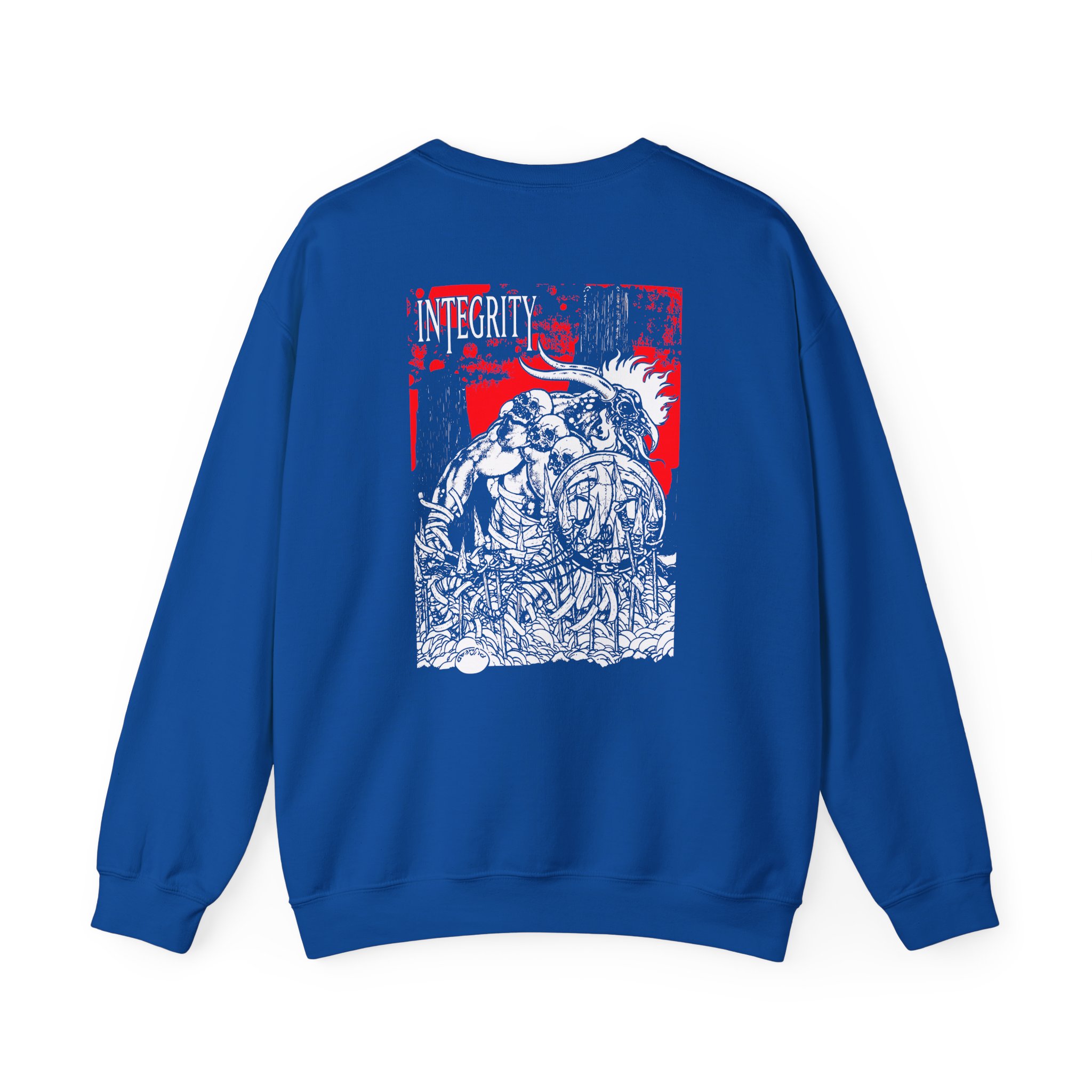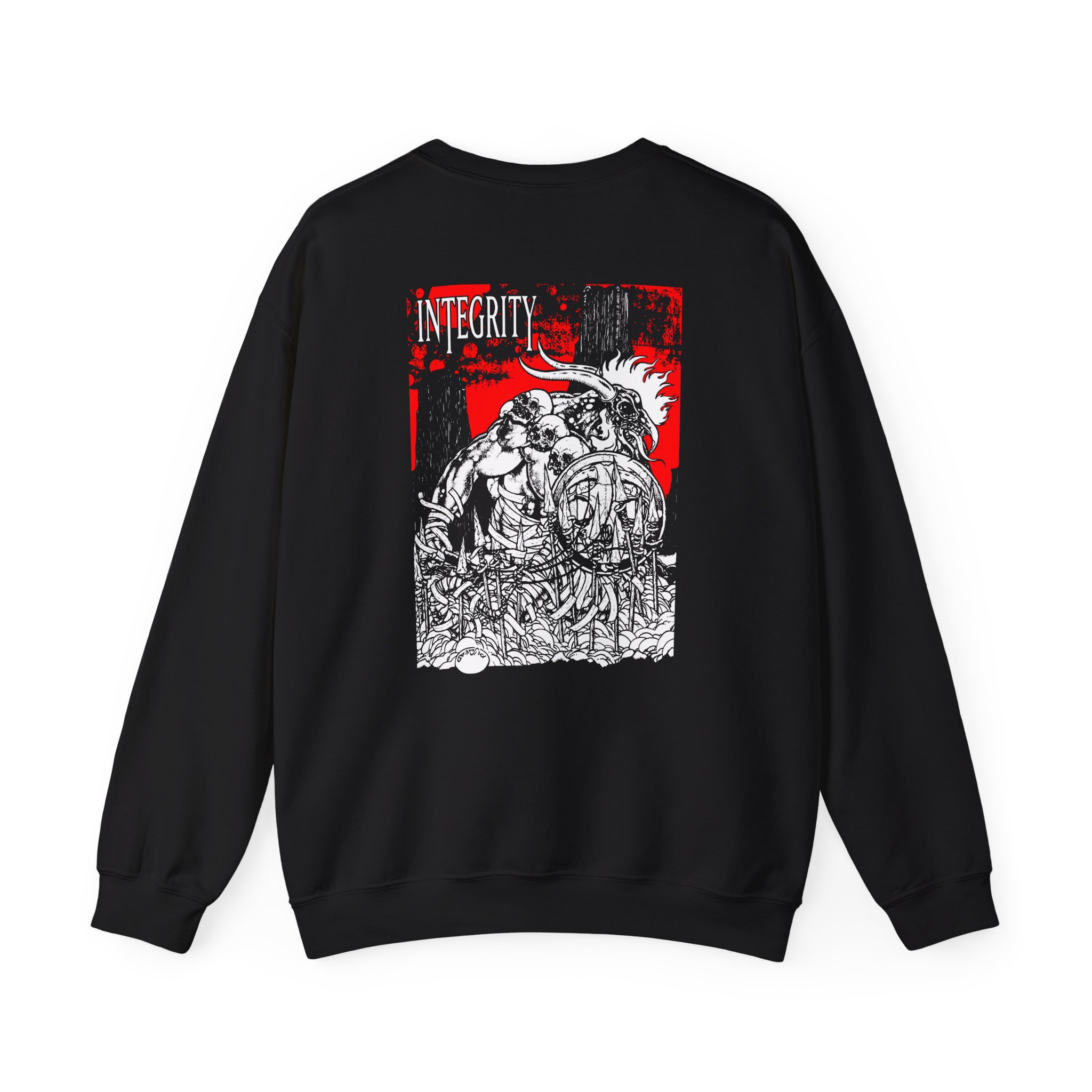 Ideal for any situation, a Integrity Humanity Is The Devil unisex heavy blend crewneck sweatshirt is pure comfort. These garments are made from polyester and cotton. This combination helps designs come out looking fresh and beautiful. The collar is ribbed knit, so it retains its shape even after washing. There are no itchy side seams on these sweaters.