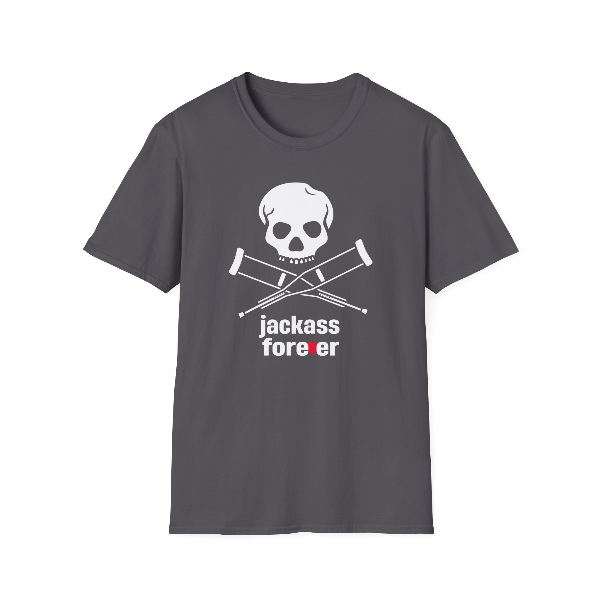 The Jackass Forever unisex soft-style t-shirt puts a new spin on casual comfort. Made from very soft materials, this tee is 100% cotton for solid colors. Heather colors and sports grey include polyester. The shoulders have twill tape for improved durability. There are no side seams. The collar is made with ribbed knitting to prevent curling damage.