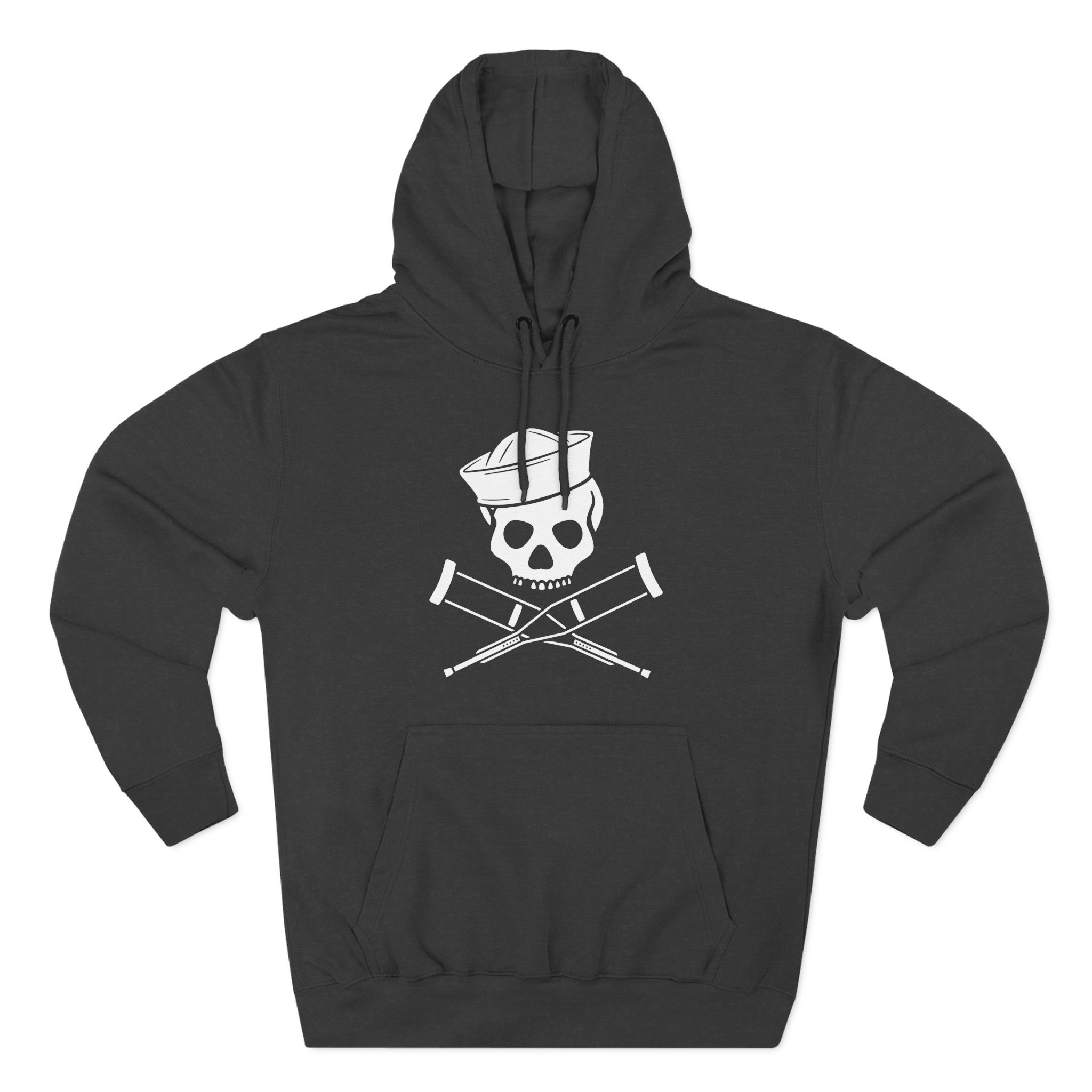 Beat the cold with this Jackass Sailor Skull & Crossbones premium pullover hoodie that’s just the right layer of warm and cozy. Made with three-panel fleece lining, this pullover is double stitched for durability and roomy. Pick one in your favorite color to match your style.