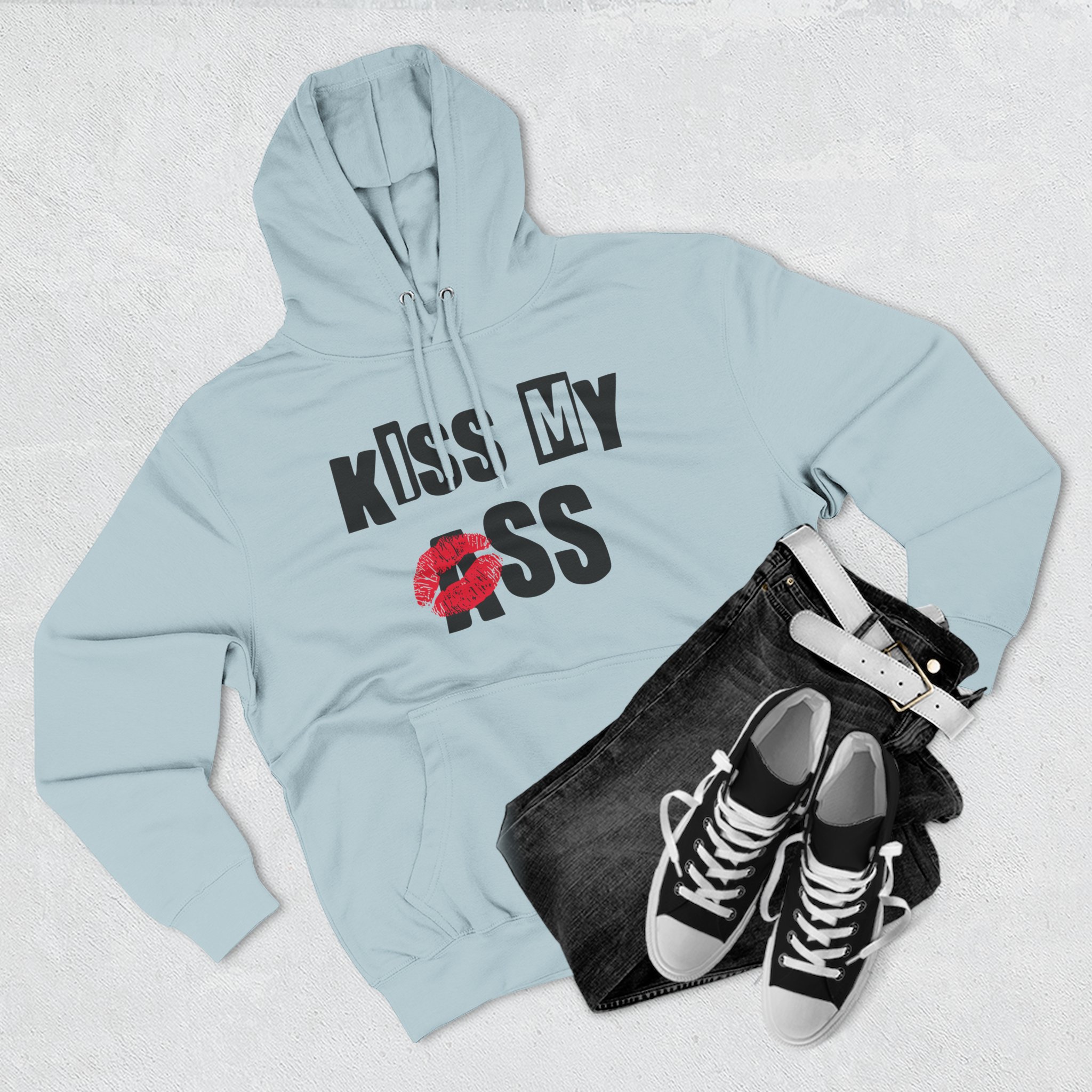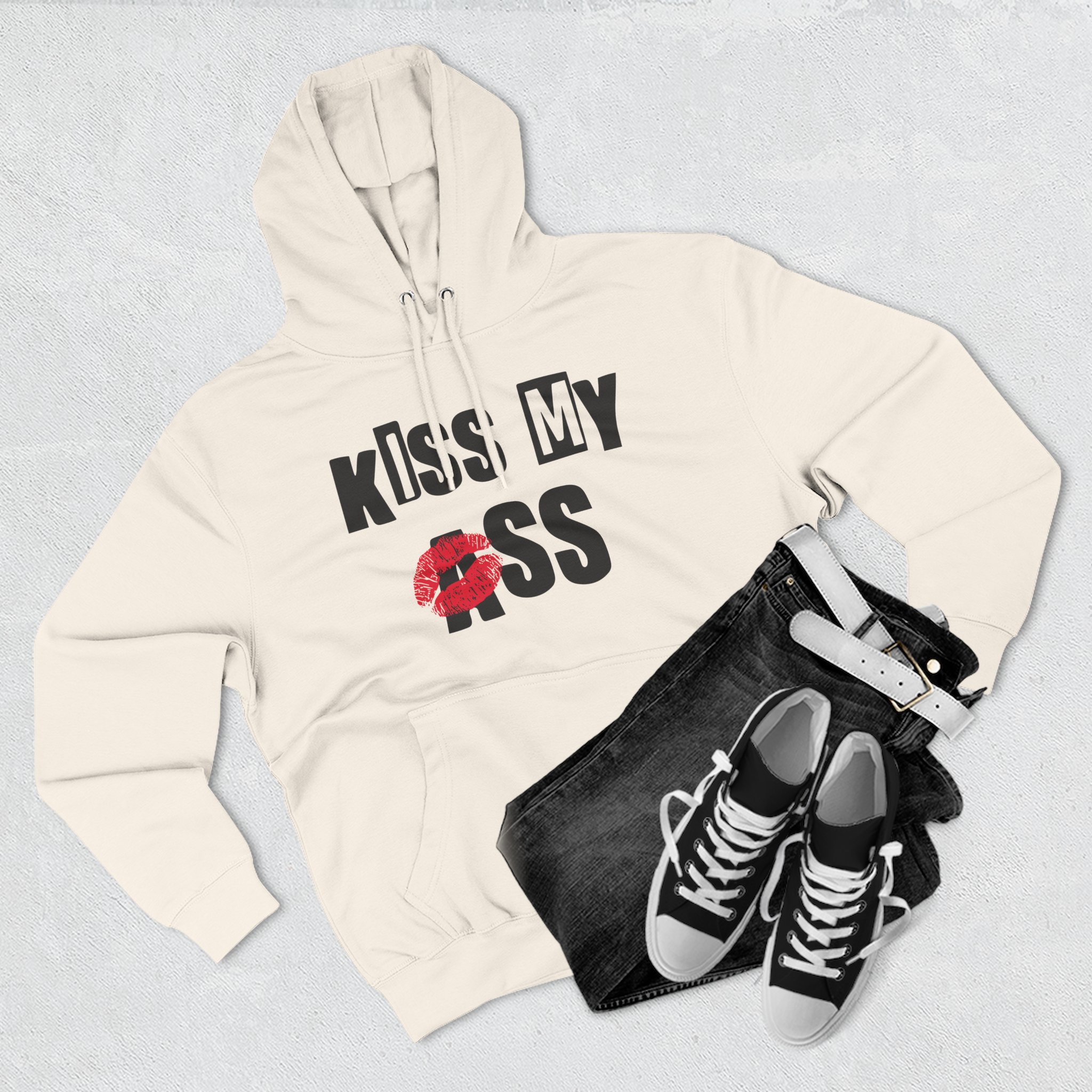 Beat the cold with this Jake Webber Kiss My Ass premium pullover hoodie that’s just the right layer of warm and cozy. Made with three-panel fleece lining, this pullover is double stitched for durability and roomy. Pick one in your favorite color to match your style.