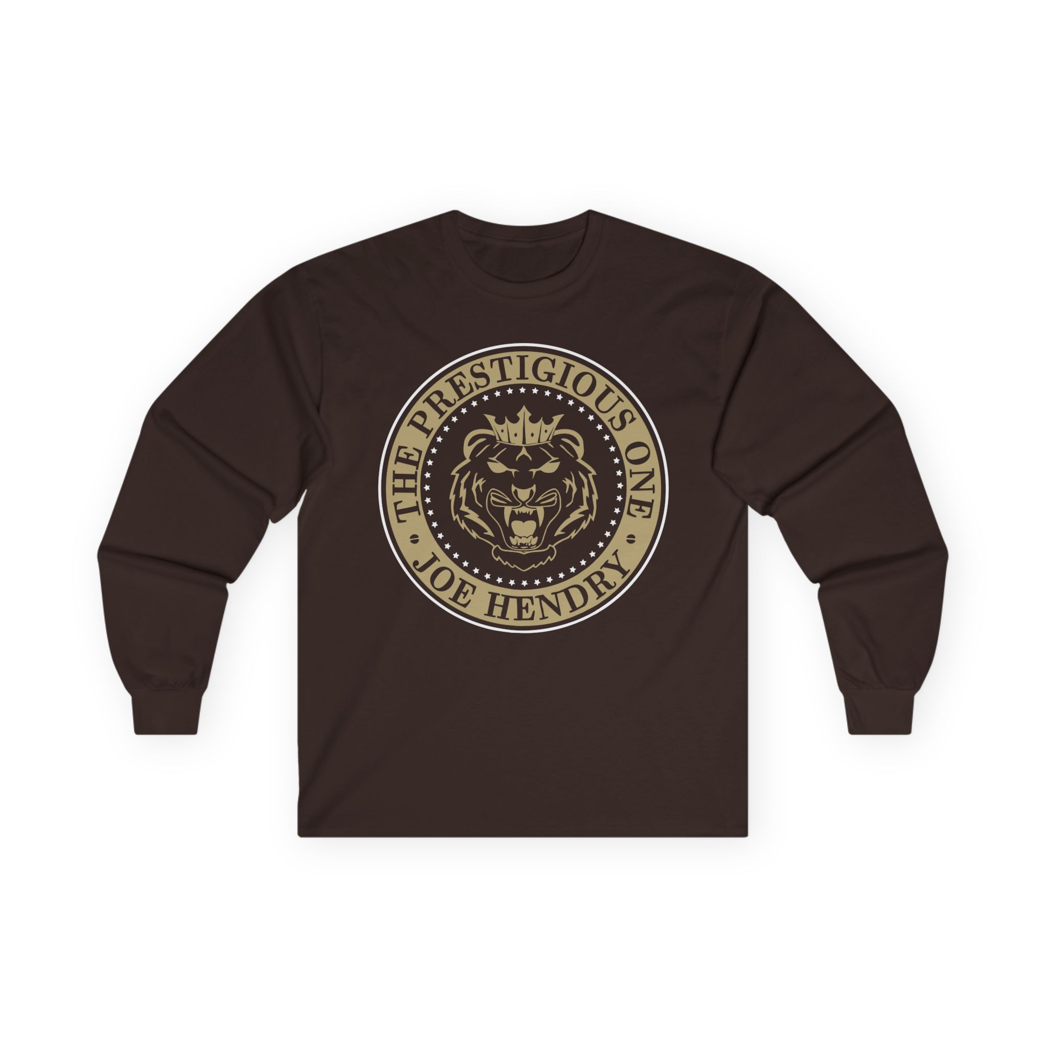 A bit more formal than a standard-issue t-shirt, the Joe Hendry Prestigious Peasants in Training ultra cotton long sleeve tee is a clear comfort winner. The sleeves also act as a nice frame. There are no side seams. The shoulders are taped for improved durability. This makes for a good fitting around the shoulders and neck. The cotton used for these shirts is environmentally friendly.