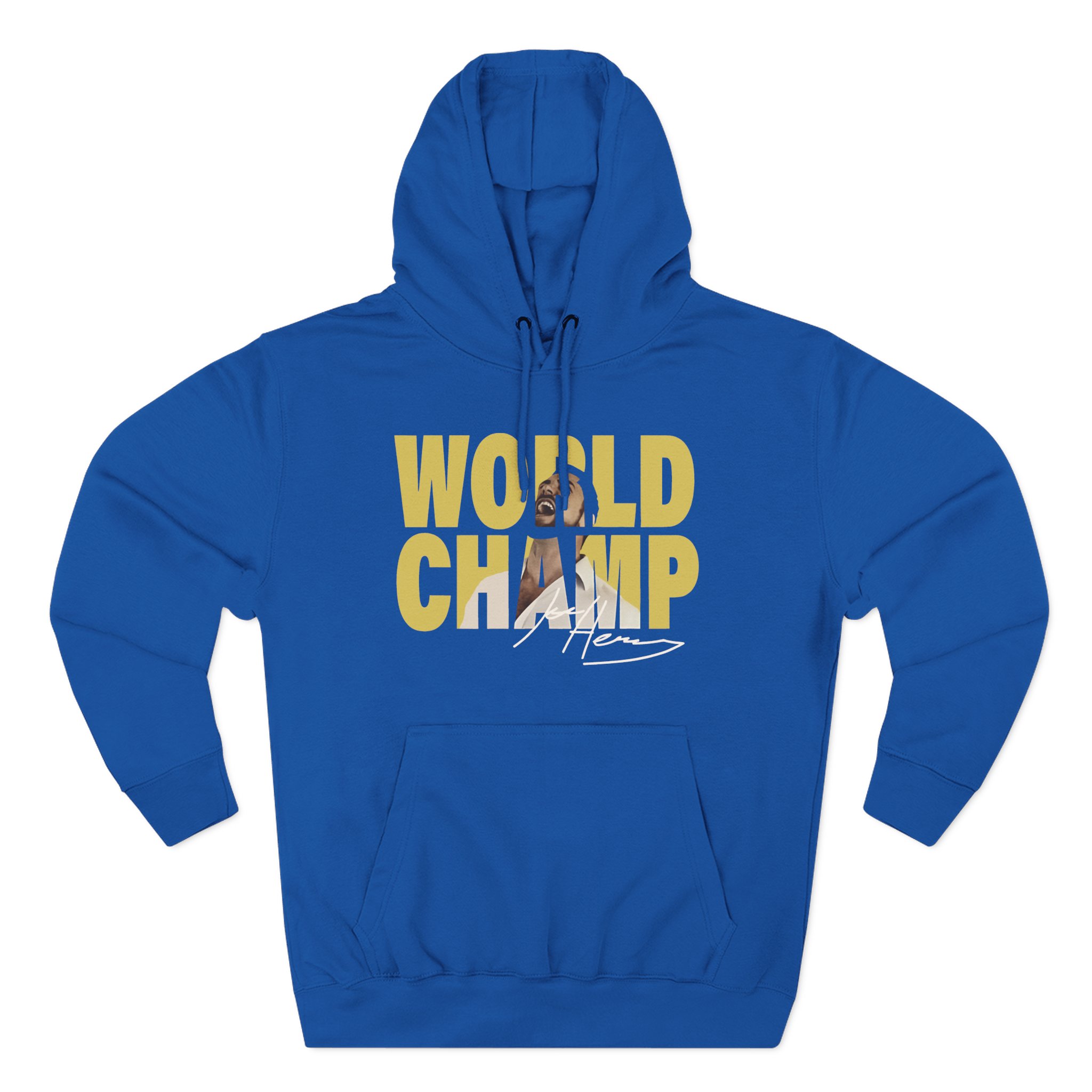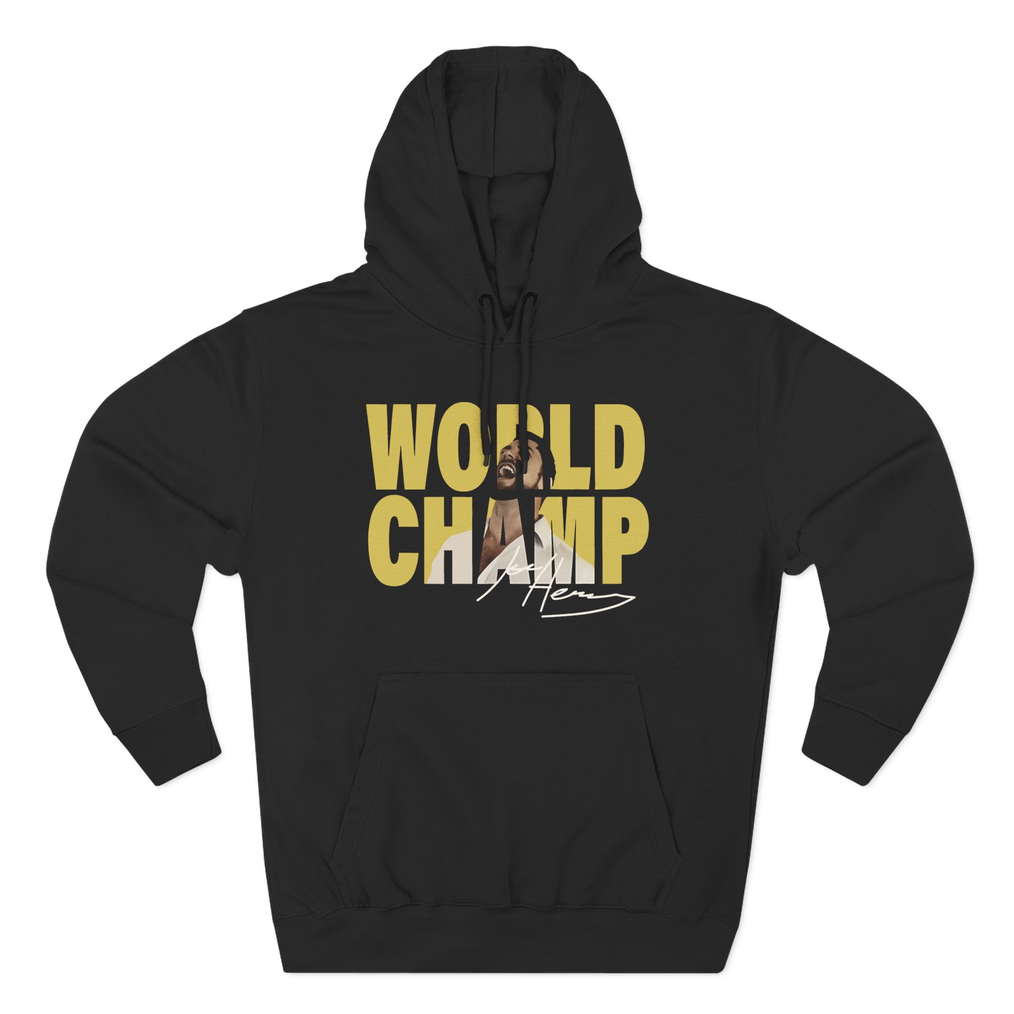 Beat the cold with this Joe Hendry World Champion premium pullover hoodie that’s just the right layer of warm and cozy. Made with three-panel fleece lining, this pullover is double stitched for durability and roomy. Pick one in your favorite color to match your style.