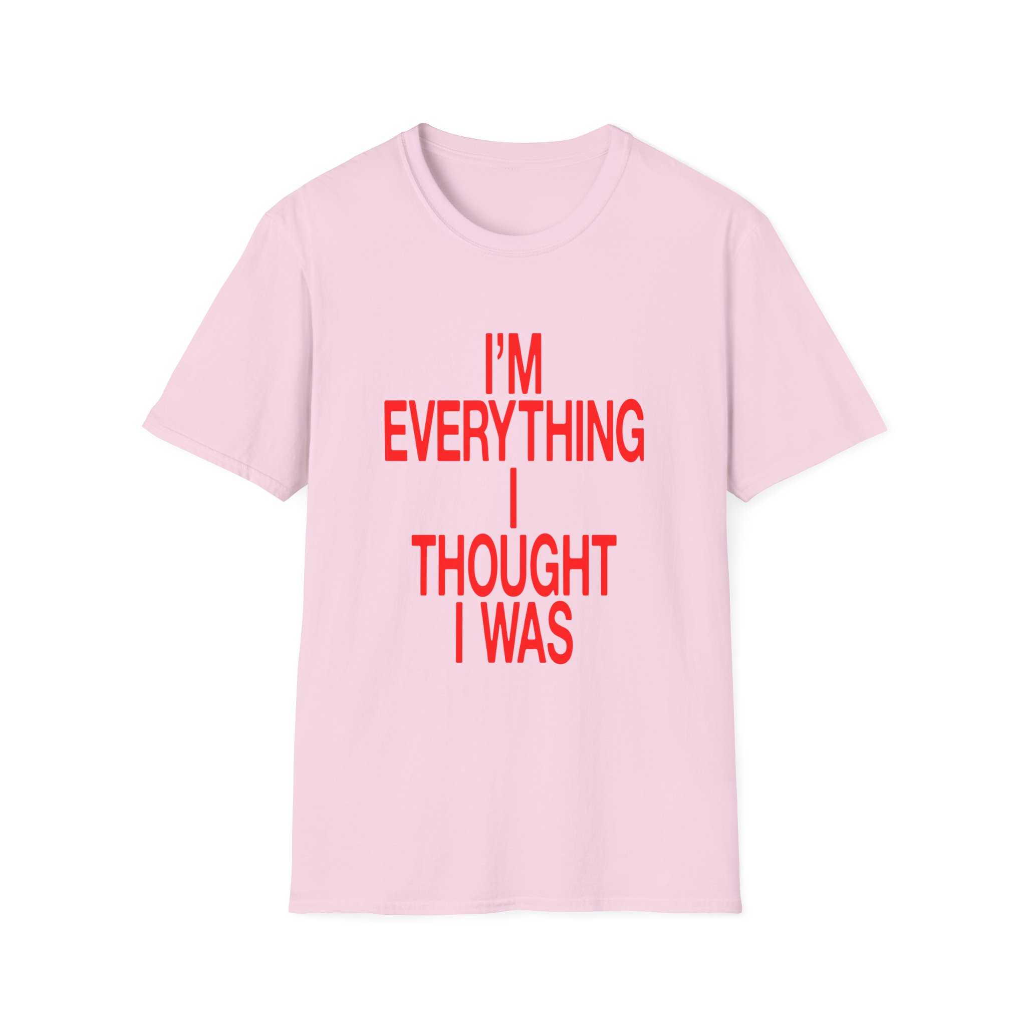 The JT Im Everything unisex soft-style t-shirt puts a new spin on casual comfort. Made from very soft materials, this tee is 100% cotton for solid colors. Heather colors and sports grey include polyester. The shoulders have twill tape for improved durability. There are no side seams. The collar is made with ribbed knitting to prevent curling damage.