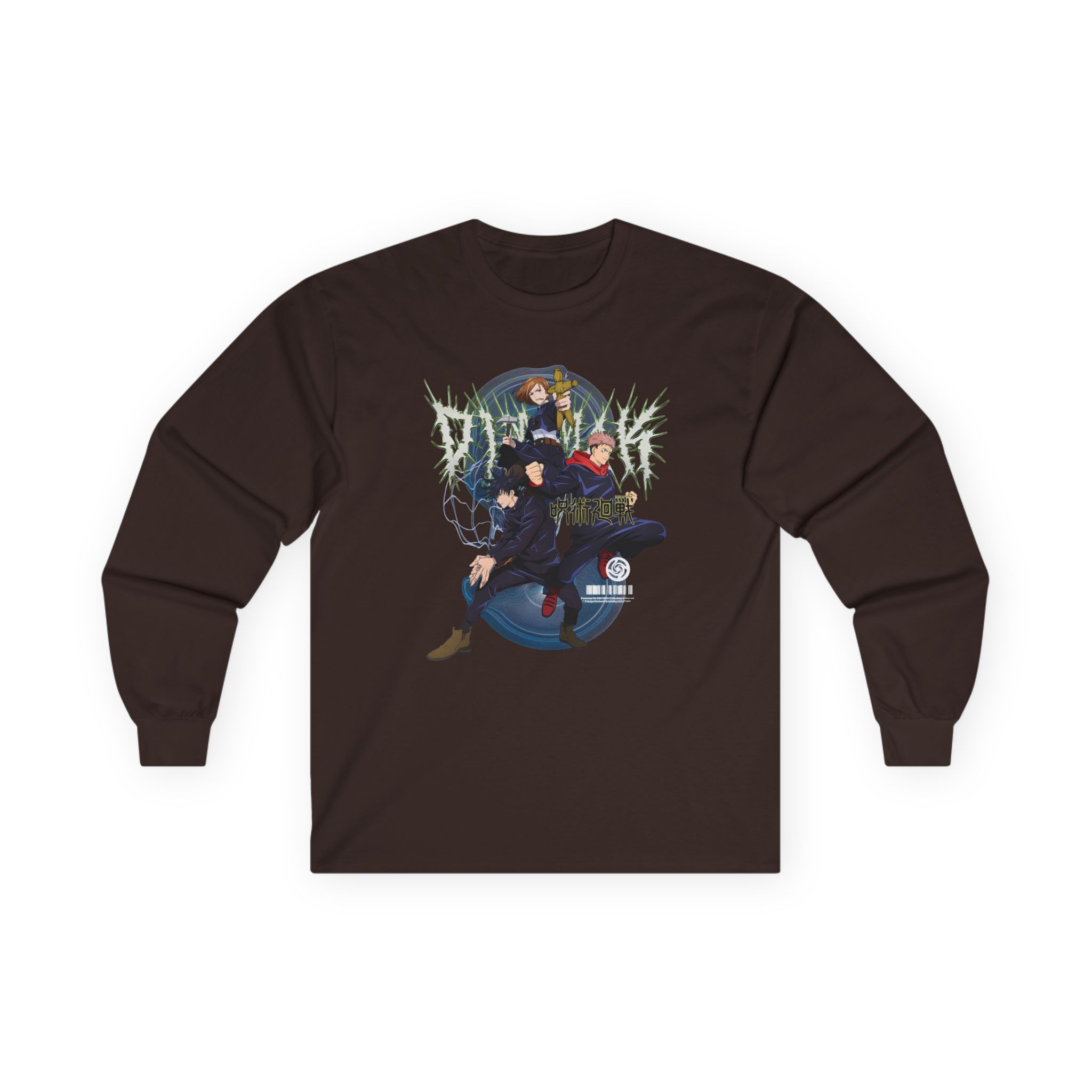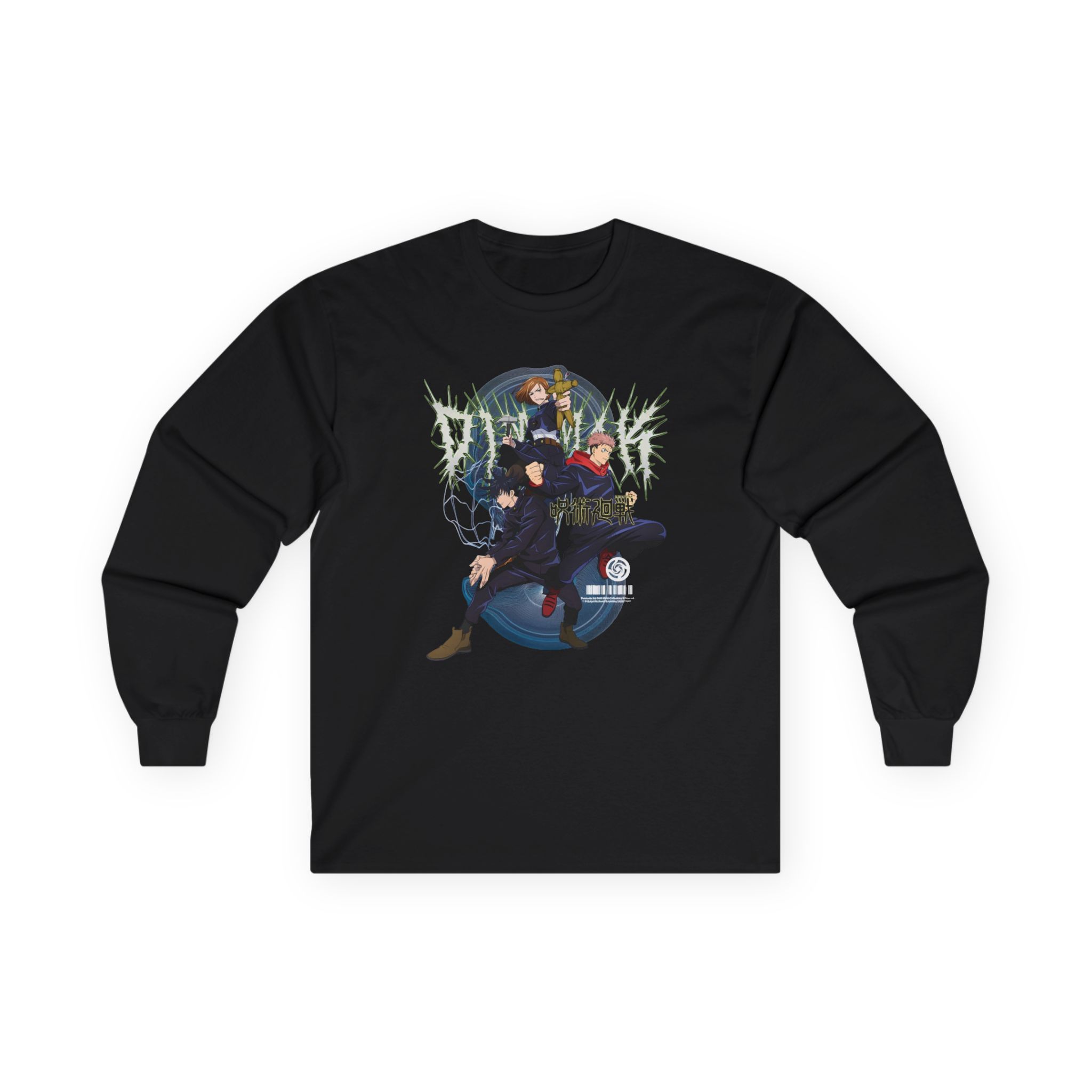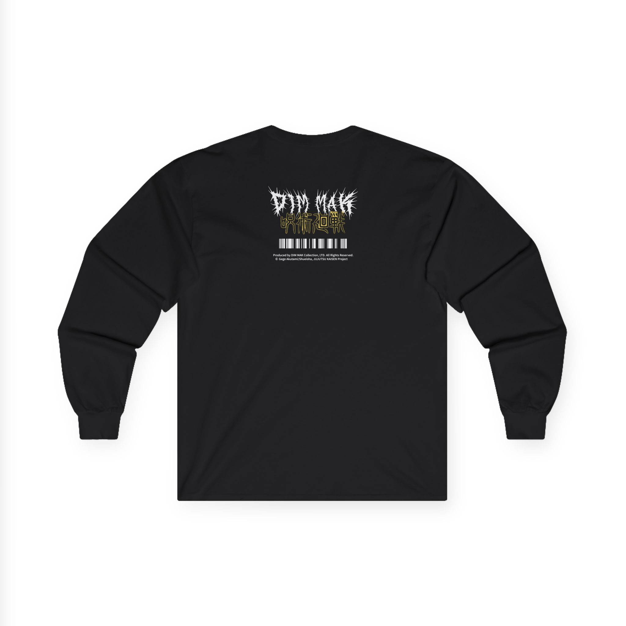 A bit more formal than a standard-issue t-shirt, the Jujutsu Kaisen X Dim Mak First Years ultra cotton long sleeve tee is a clear comfort winner. The sleeves also act as a nice frame. There are no side seams. The shoulders are taped for improved durability. This makes for a good fitting around the shoulders and neck. The cotton used for these shirts is environmentally friendly.