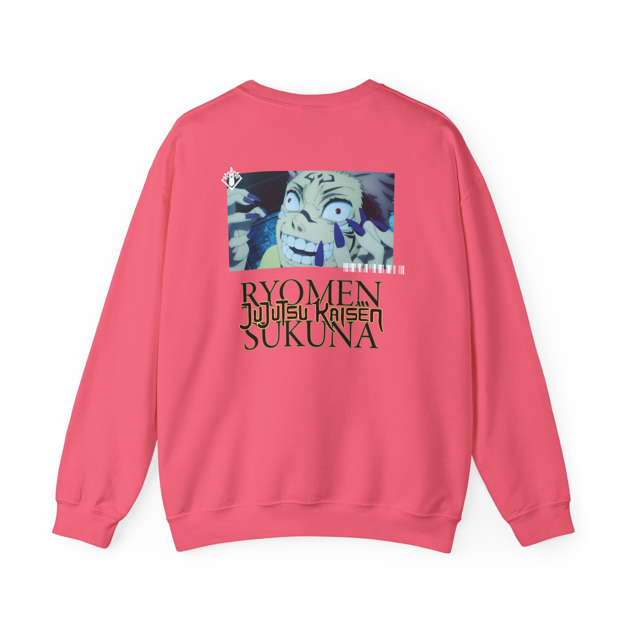 The Gildan 18000 sweatshirt is a Jujutsu Kaisen X Dim Mak Sukuna unisex heavy blend crewneck made from a 50/50 cotton-polyester fabric, combining softness with lasting durability. Its smooth surface supports crisp, vibrant prints and embroidery, while the ribbed-knit collar and reinforced cuffs help it keep its shape over time. A seamless body design reduces irritation and adds to overall comfort. Practical, sturdy, and print-friendly, the Gildan 18000 sweatshirt remains a top choice for custom apparel.