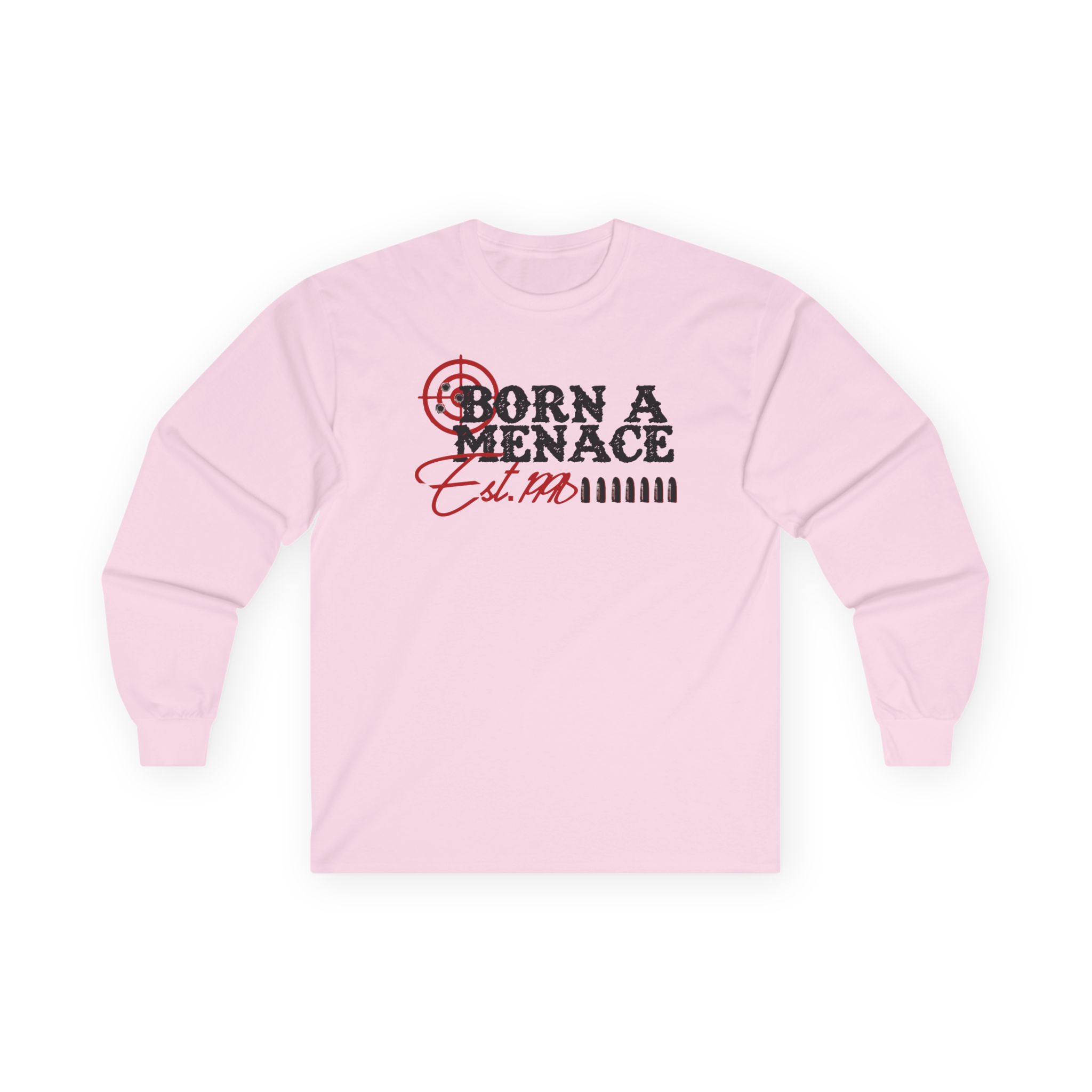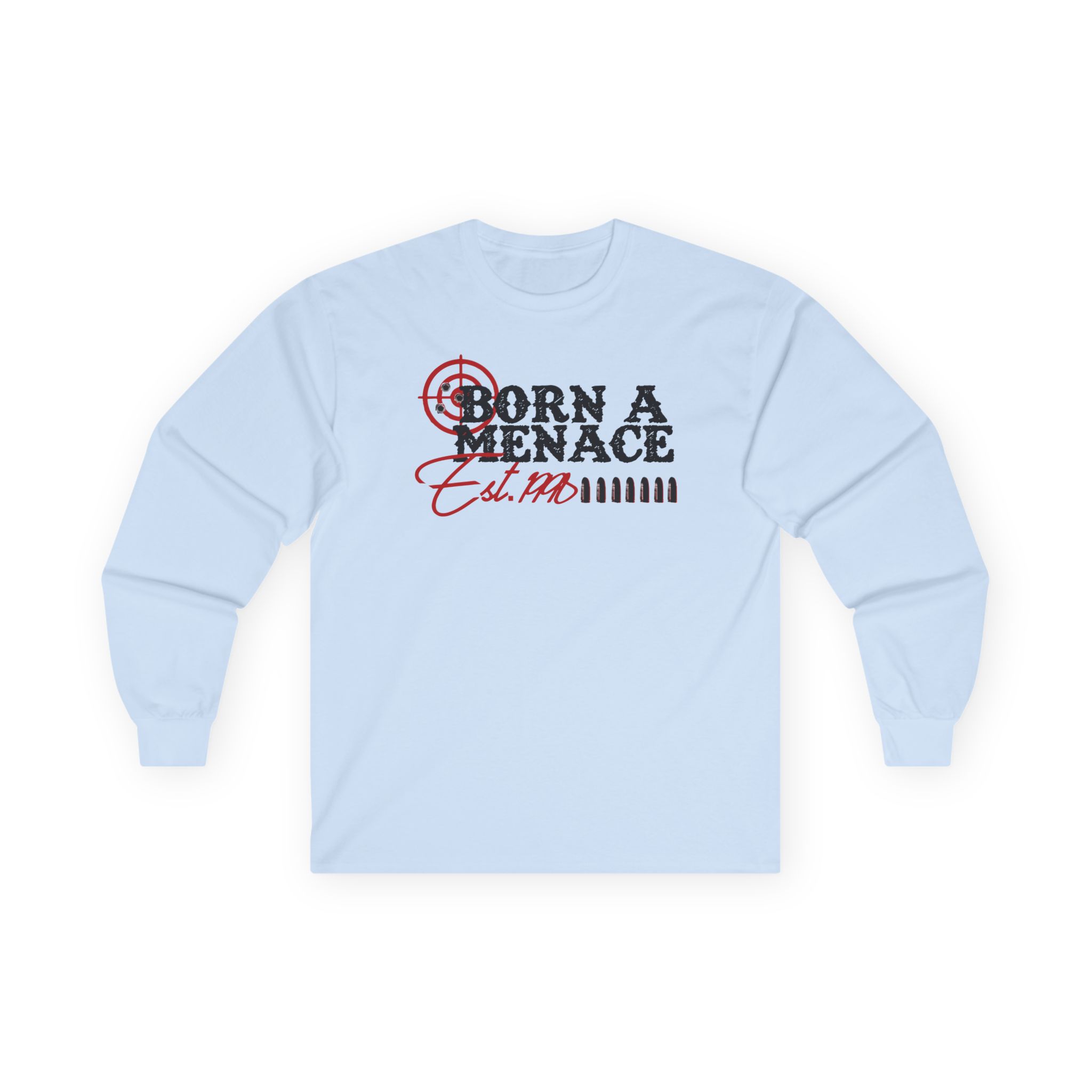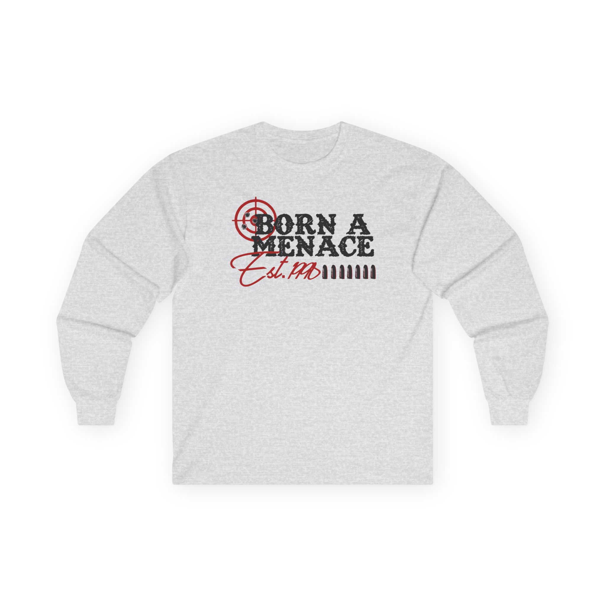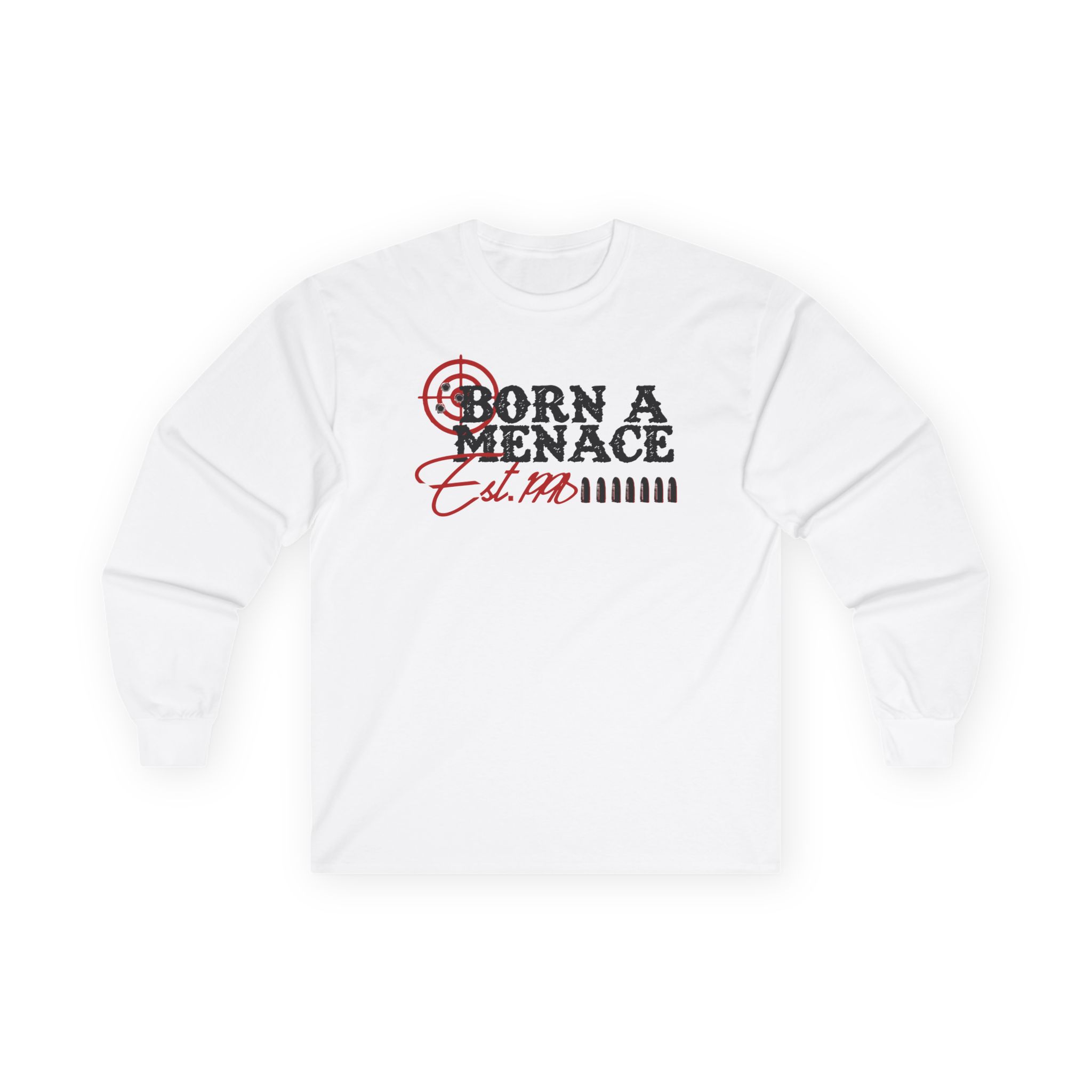A bit more formal than a standard-issue t-shirt, the Kanel Joseph Bullseye Menace ultra cotton long sleeve tee is a clear comfort winner. The sleeves also act as a nice frame. There are no side seams. The shoulders are taped for improved durability. This makes for a good fitting around the shoulders and neck. The cotton used for these shirts is environmentally friendly.